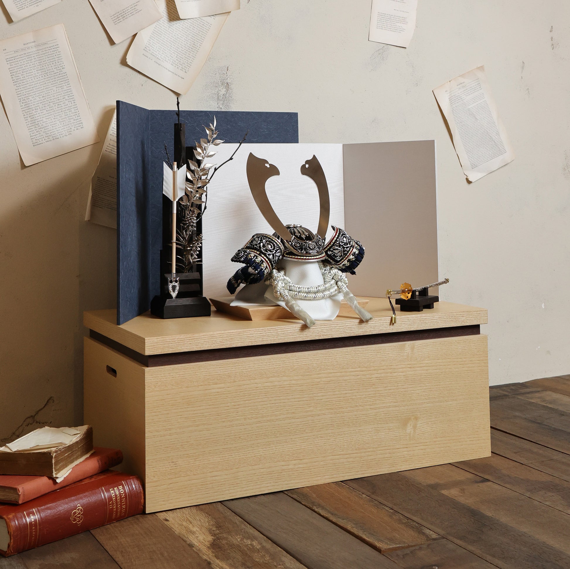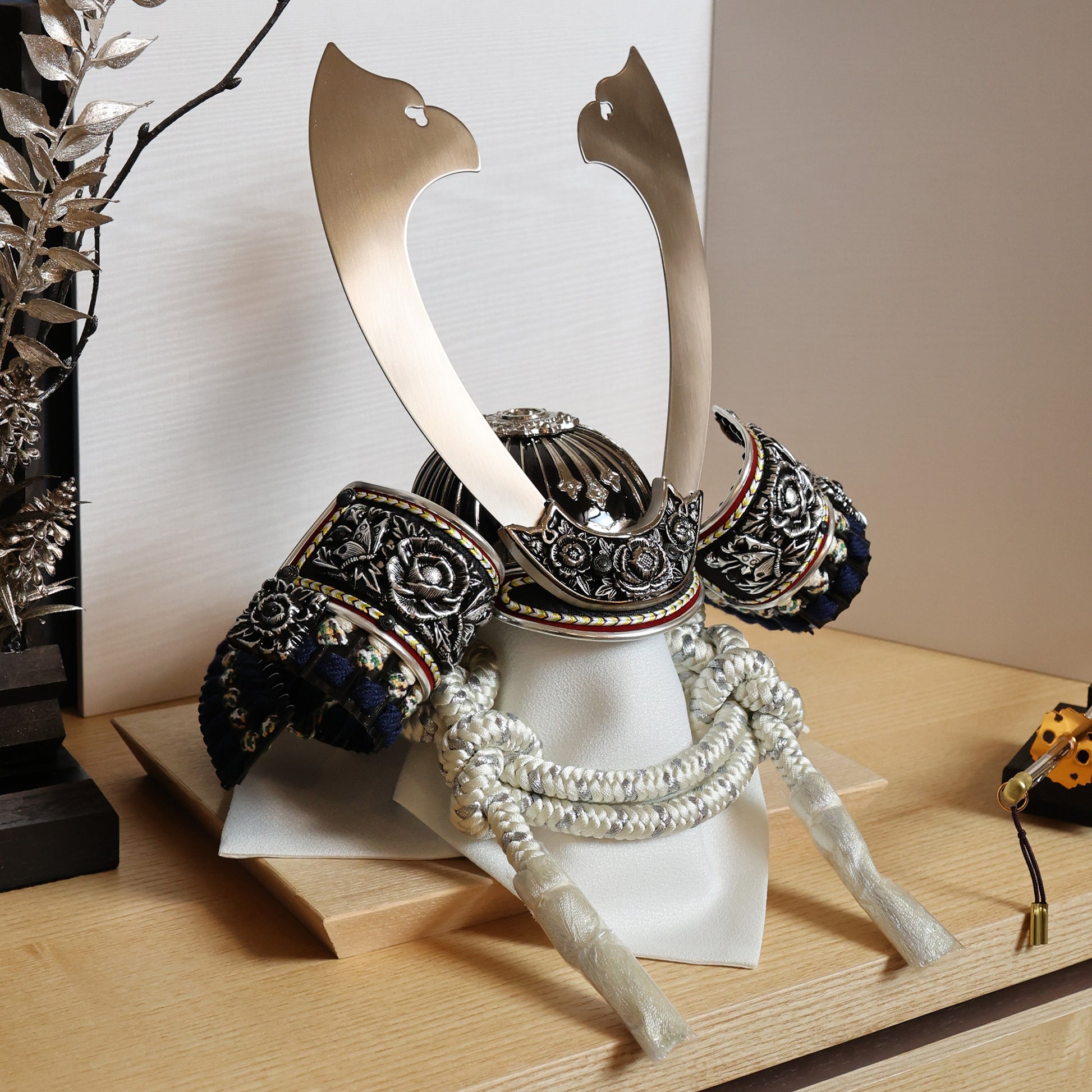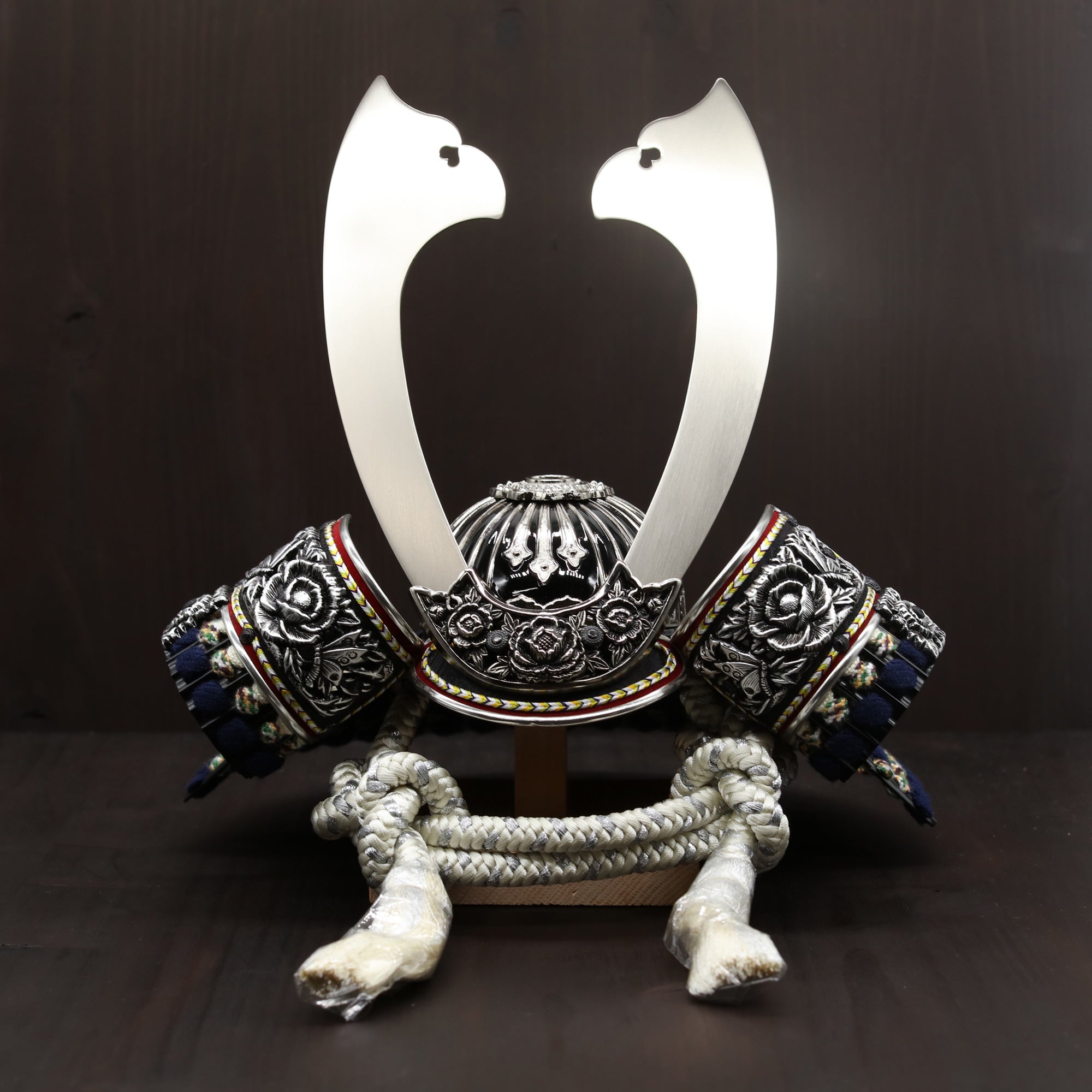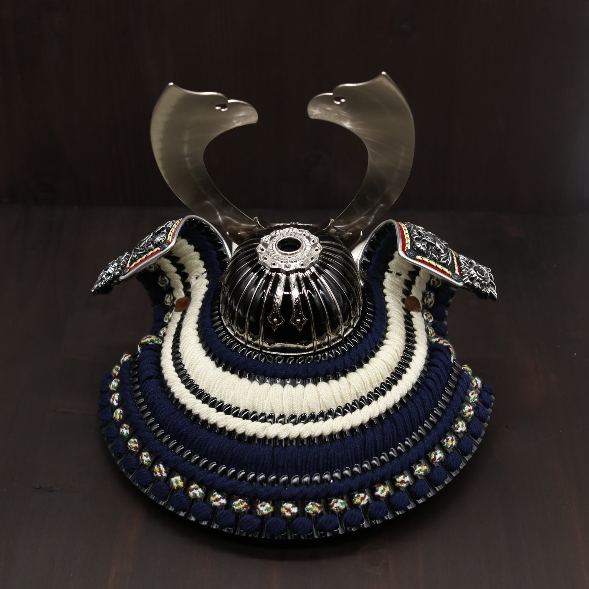 堂々とした大鍬形を、光を抑えた墨銀の表情で仕立てました。