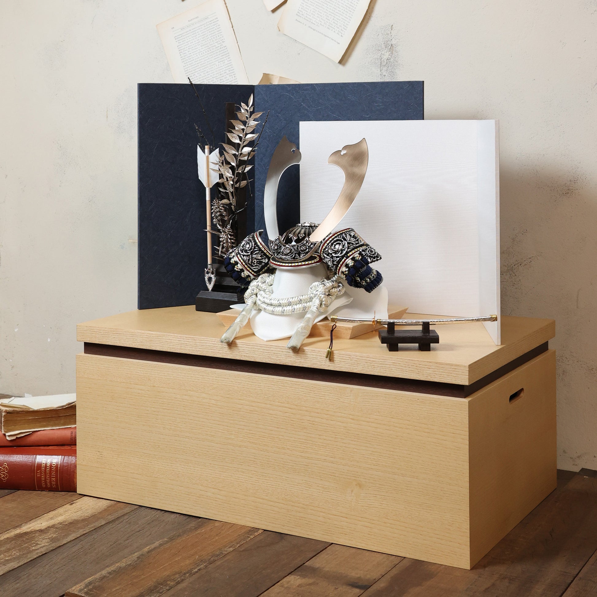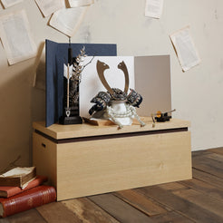 白の組紐と木目のケースにも美しく馴染み、端正で洗練された佇まいをつくる鍬形です。