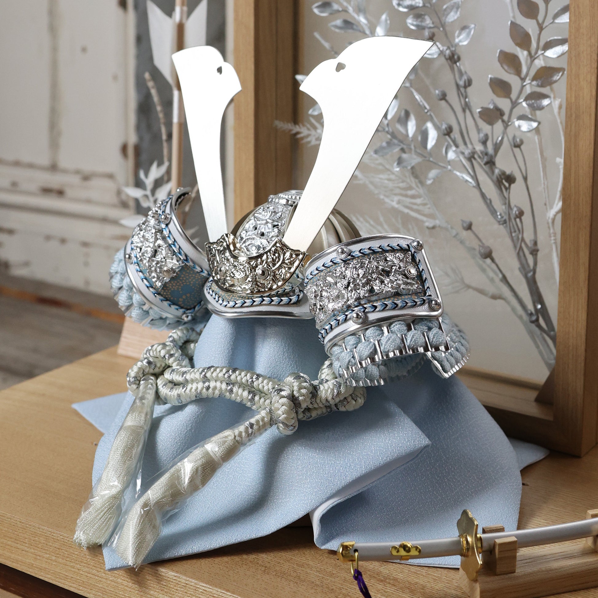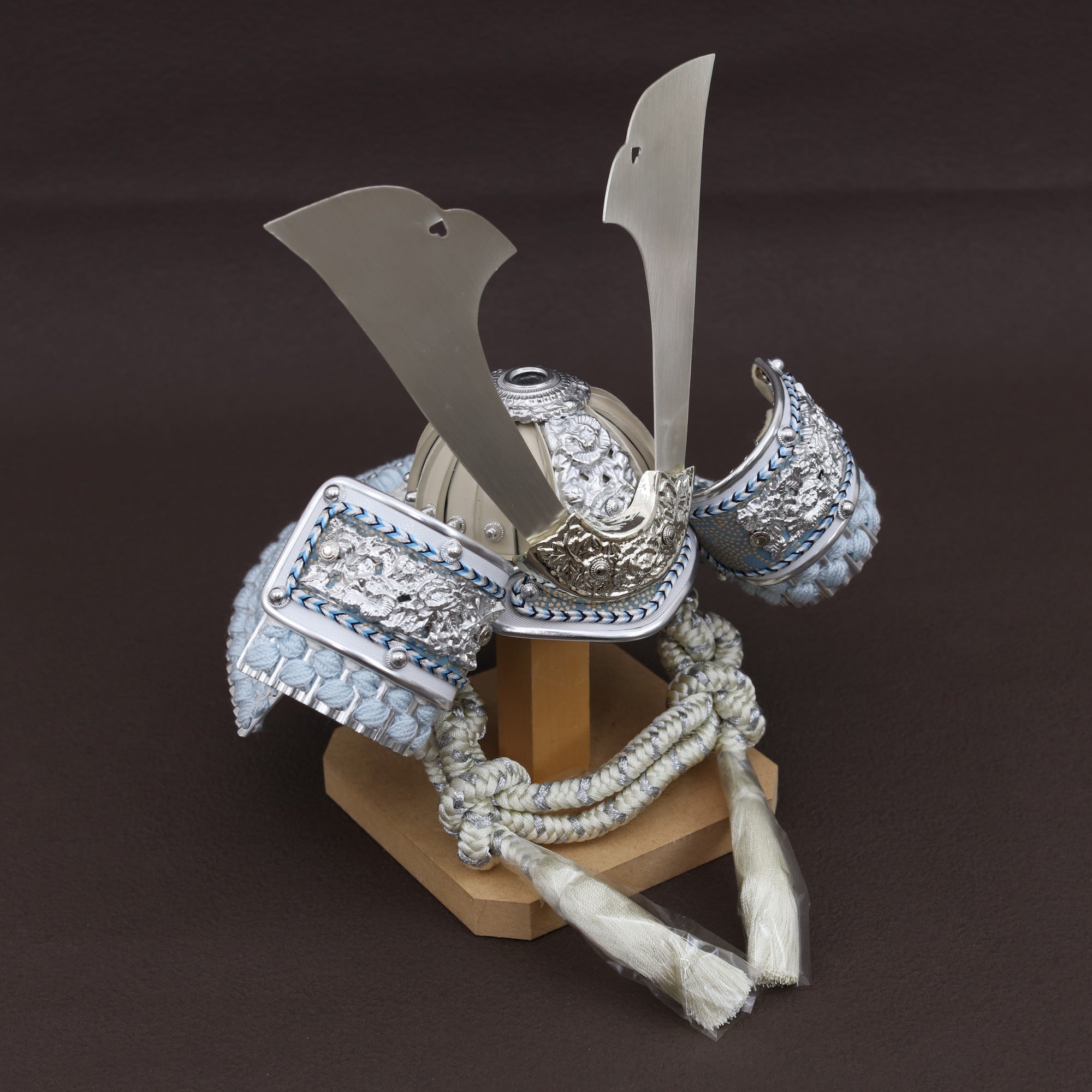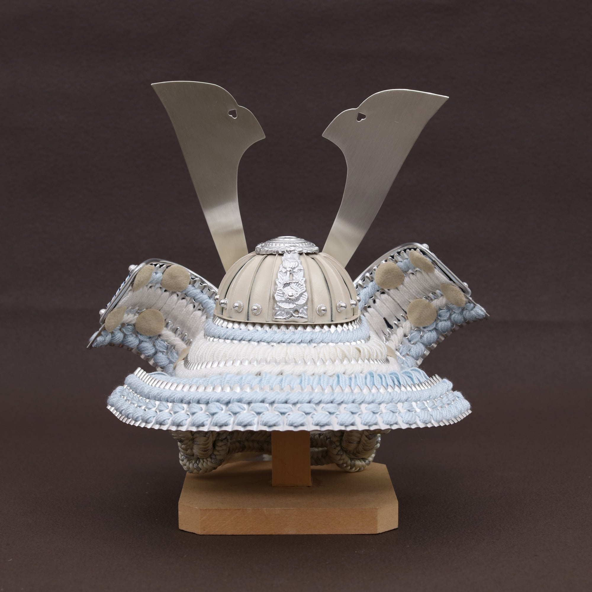 銀の装飾とも美しく溶け合い、上品で穏やかな存在感を放つ鍬形です。