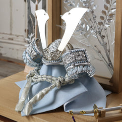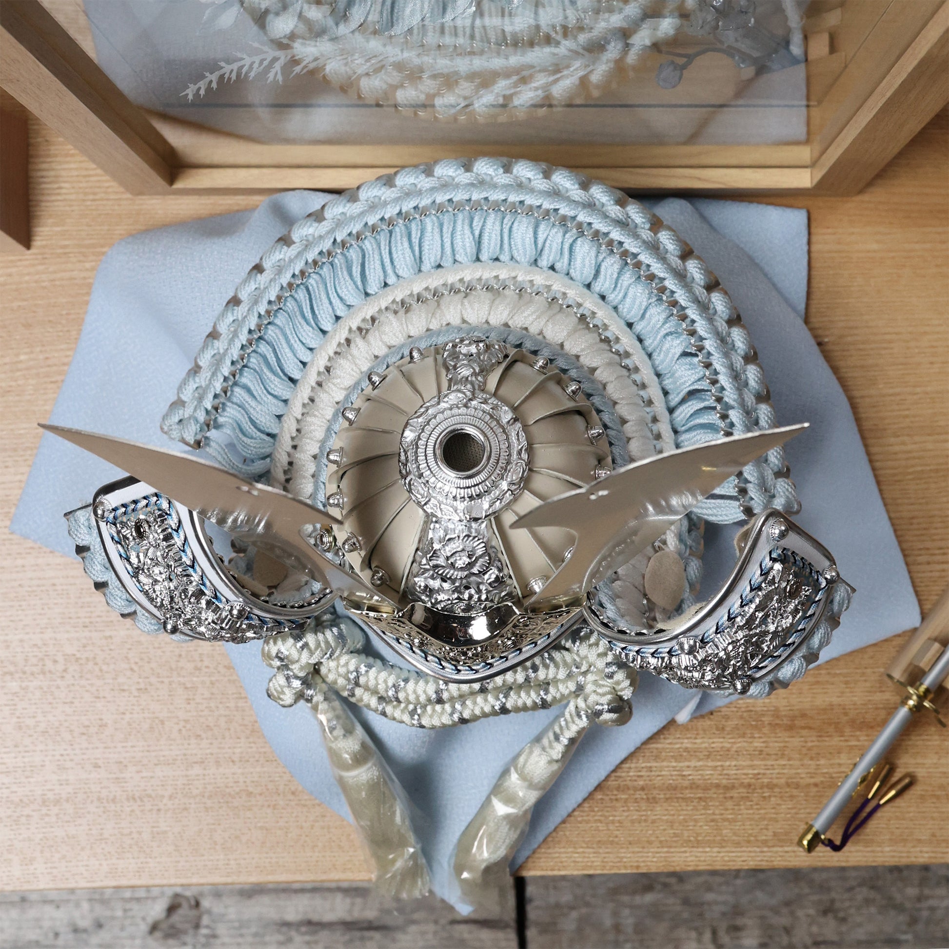 兜に使用している糸はすべて正絹を用いており、上質な素材感と伝統的な美しさを兼ね備えています。正絹特有の柔らかさと光沢が、兜全体に品格と華やかさを与え、細部にまでこだわった仕上がりを実現しています。伝統工芸にふさわしい高品質な素材で、格調高い逸品となっています。