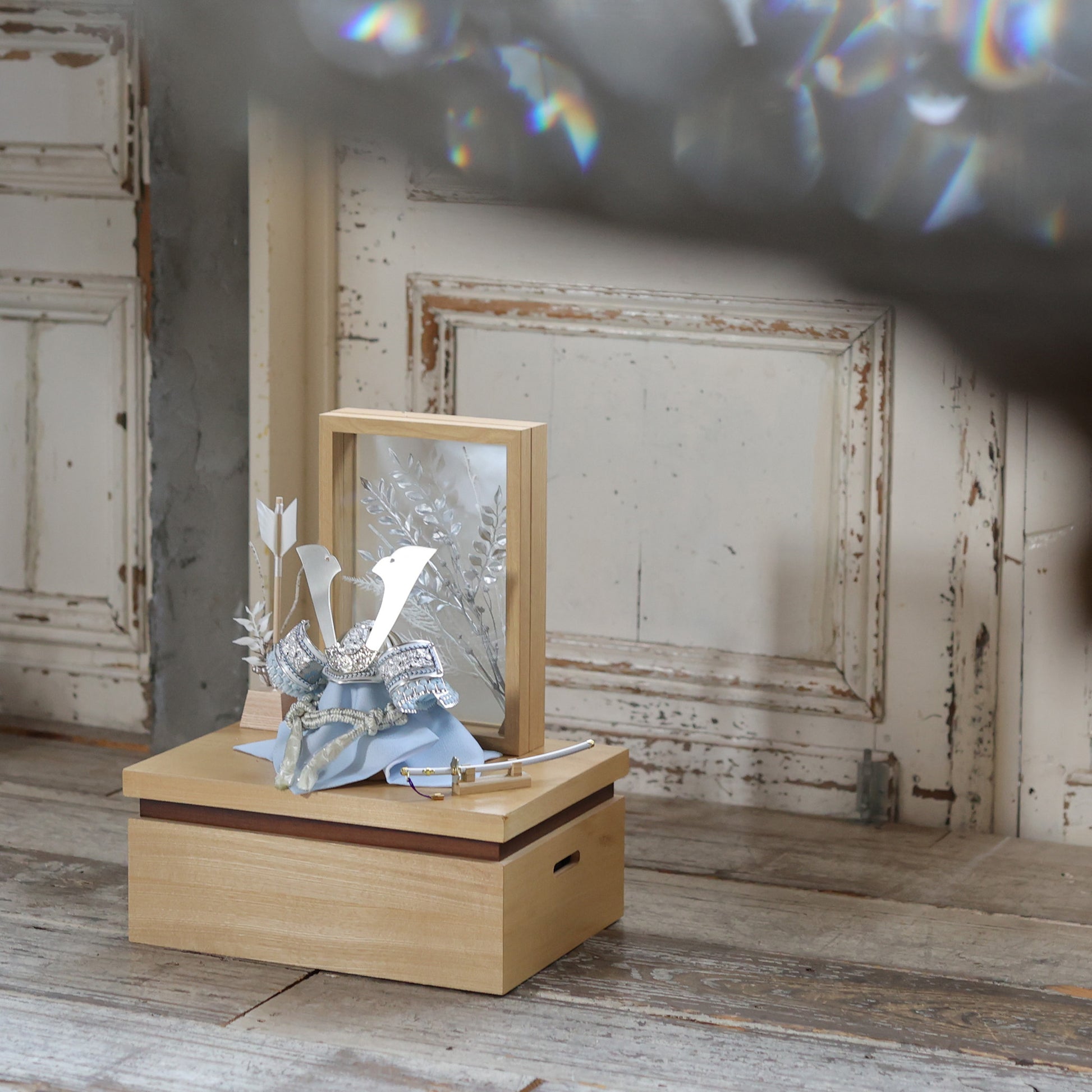 堂々とした大鍬形を、淡くやわらかな金色で仕立てました。