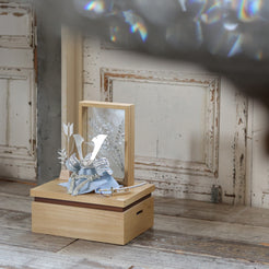 強い輝きではなく、白を基調とした兜にふんわりと光を差し込み、清らかな印象を引き立てます。