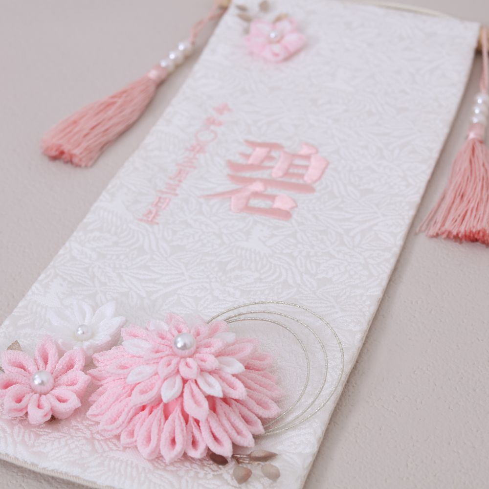 春華の名前旗は、新しい季節の訪れと共に芽吹く“いのちの輝き”をテーマに仕立てました。春の花々が一斉に咲くように、これからの人生が豊かに彩られますようにという願いを込めています。やわらかな桜色や若草の色を基調に、繊細な刺繍で花びらの重なりを表現。見るたびに心がほころぶ、あたたかみのあるデザインです。お子さまが春の日差しのように周囲を明るく照らし、やさしく華やかな人生を歩めるよう願いを込めた一枚です。