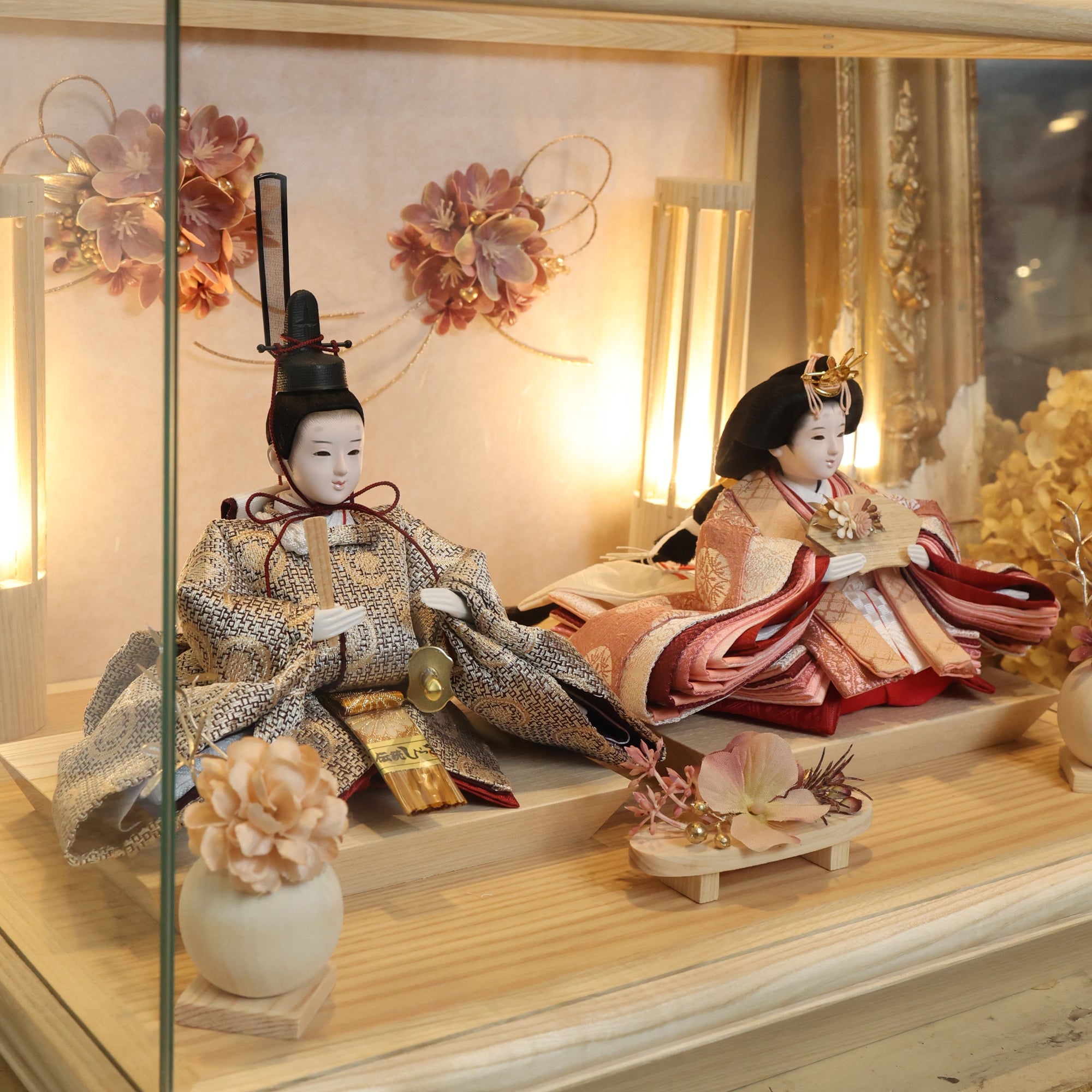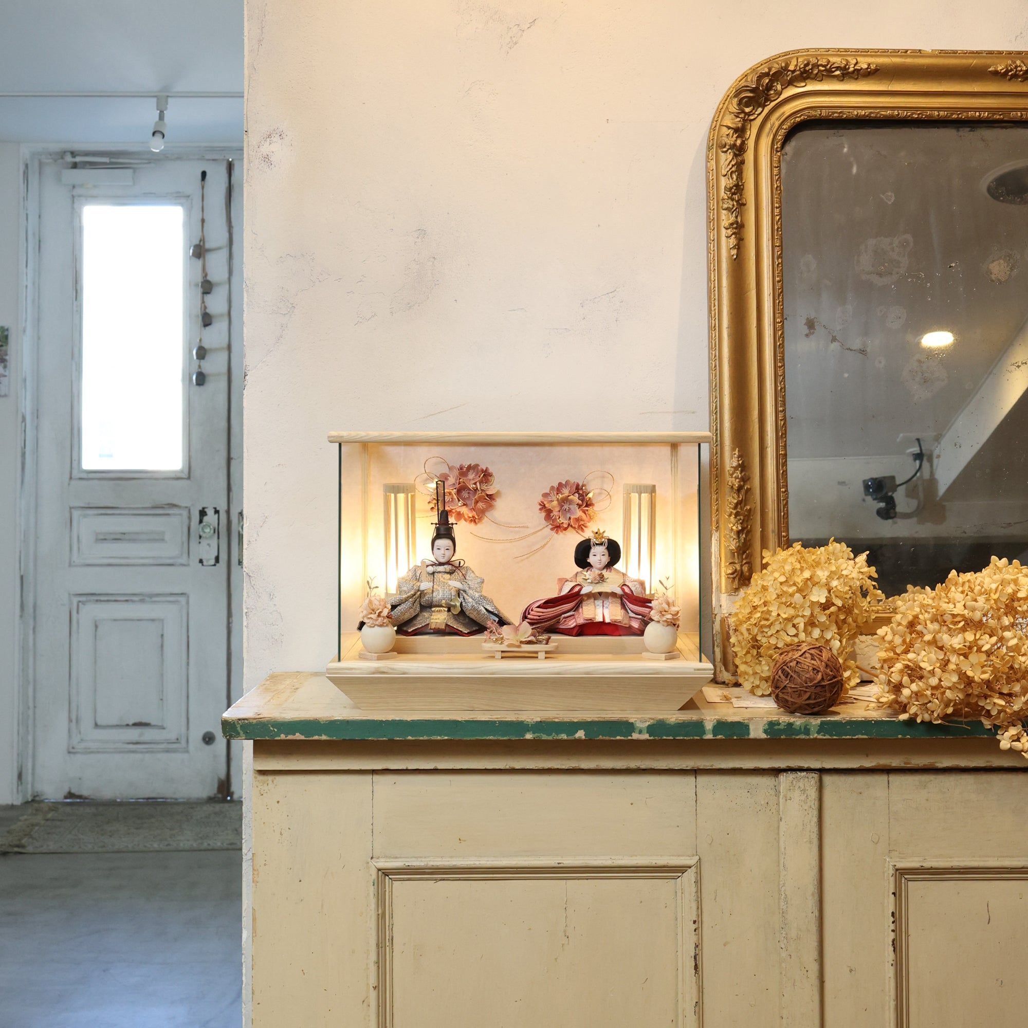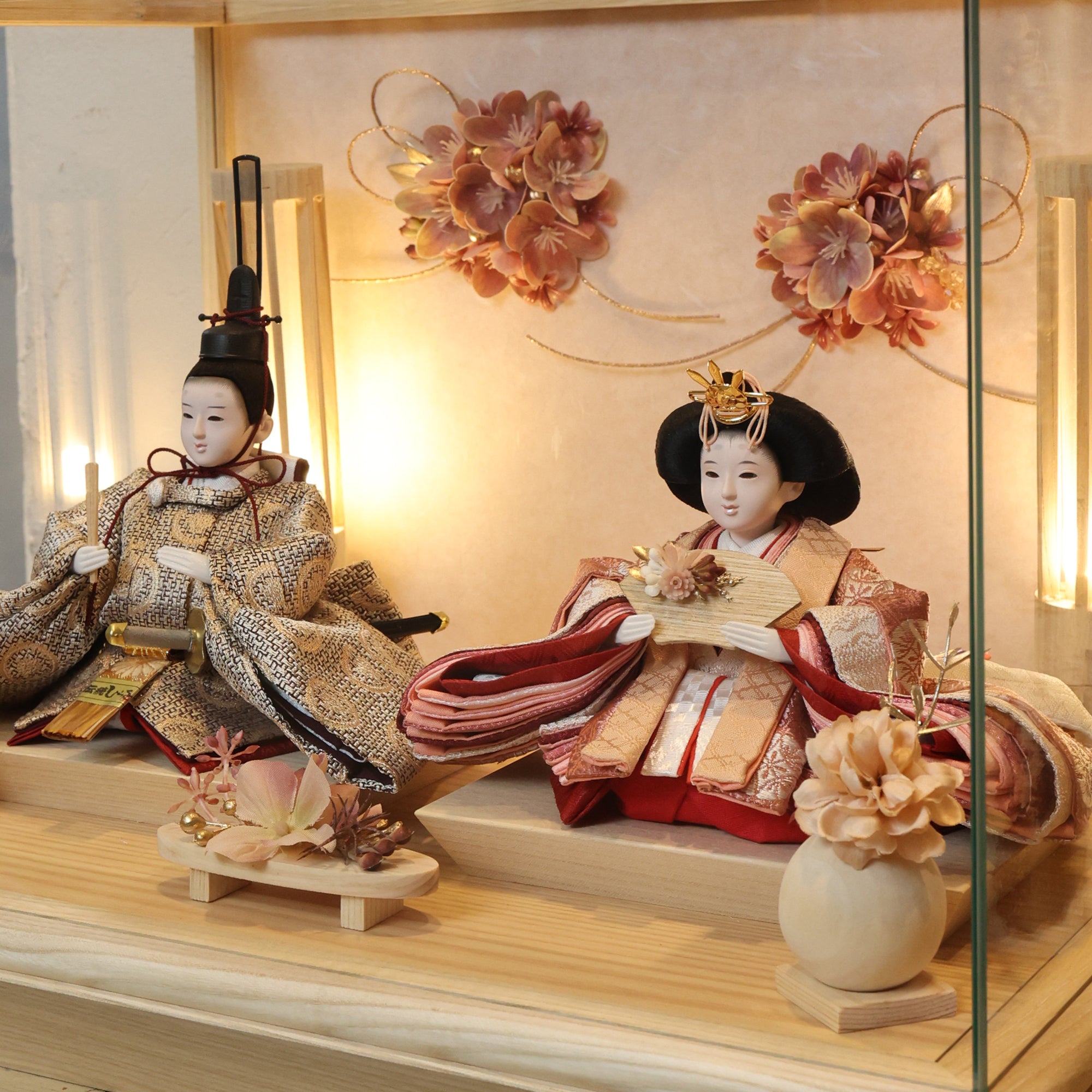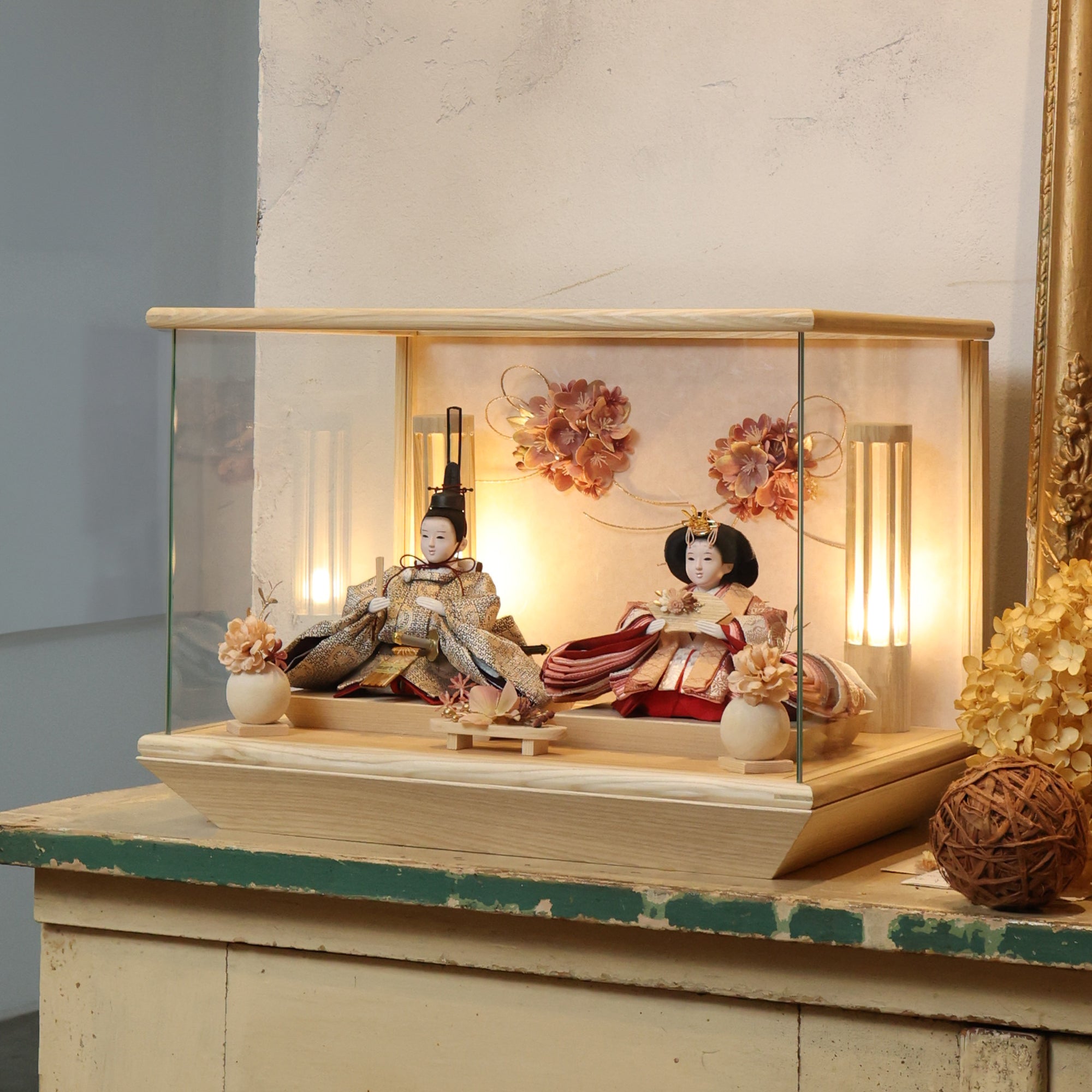 通常2mm厚が一般的な中、当店ではより高品質なAGC製3mmガラスを採用しています。厚みが増すことで強度と安全性が高まり、透明度の高いクリアな美しさを保ちます。大切な雛人形を守りながら、高級感のある見栄えを実現しています。