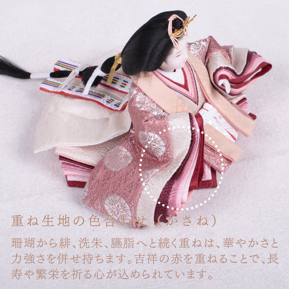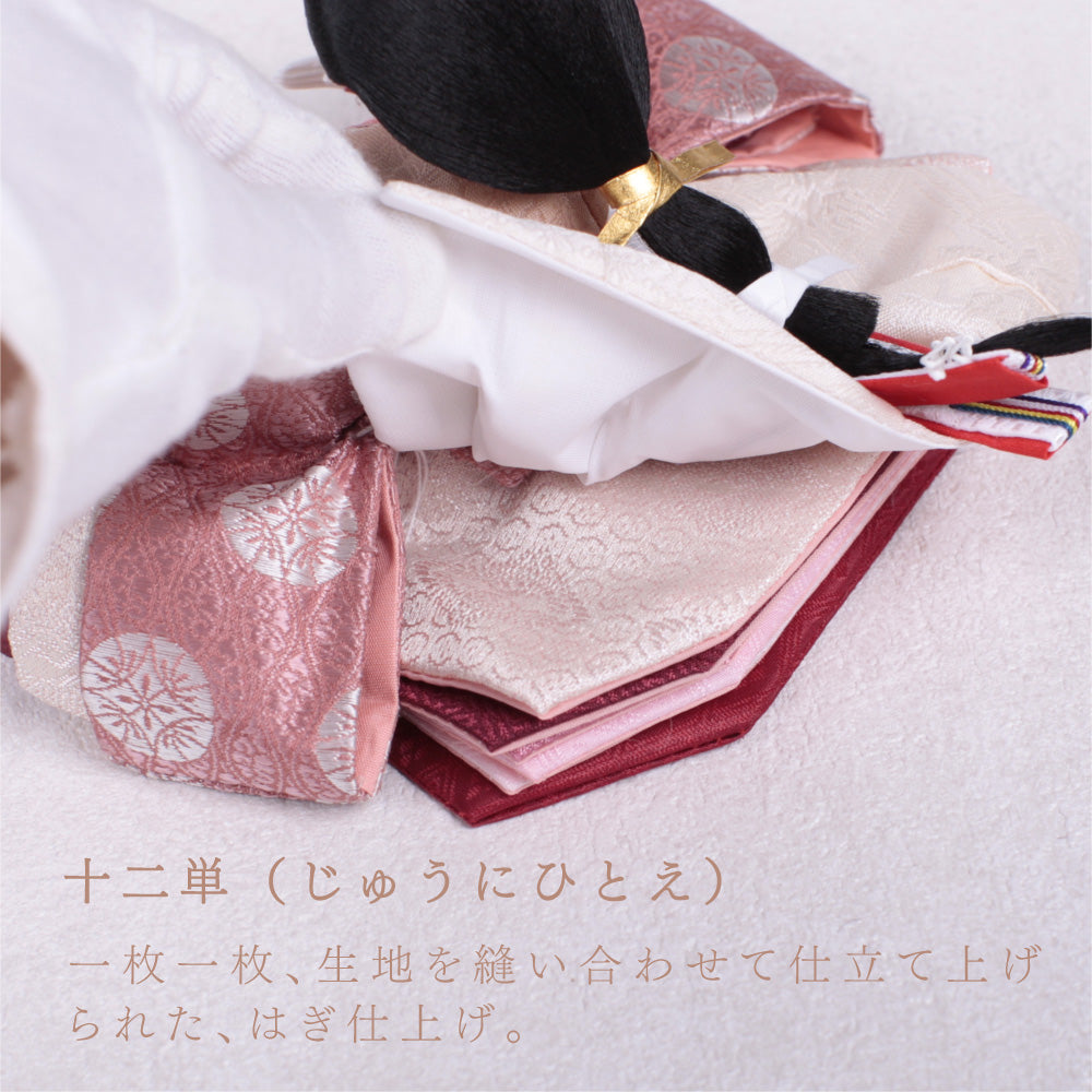 正絹は、100%絹から作られた生地で、「本絹」とも呼ばれます。蚕の繭を原料にし、複雑な工程を経て製造されます。絹糸を織って生地に仕上げることで、独特の光沢と滑らかな質感が生まれ、高級感のあるお人形が完成します。正絹は伝統的な工芸品に広く用いられ、その美しさが際立っています。