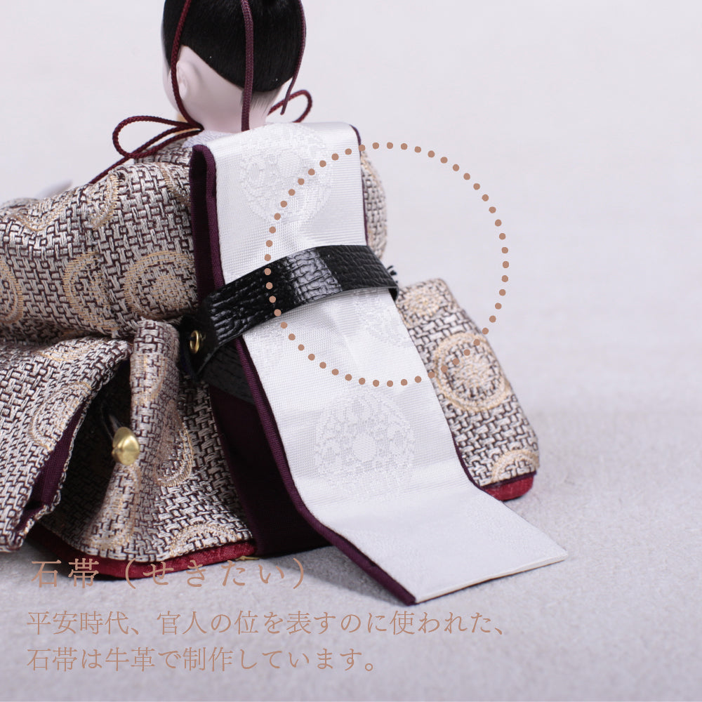 国産の栓(せん)は、美しい木目と温もりある質感が魅力の天然木です。耐久性に優れ、経年とともに味わいを深めます。台座や屏風などに使用することで、自然素材ならではの落ち着いた風合いと上質感を演出し、雛人形全体をより品格ある印象に仕上げます。