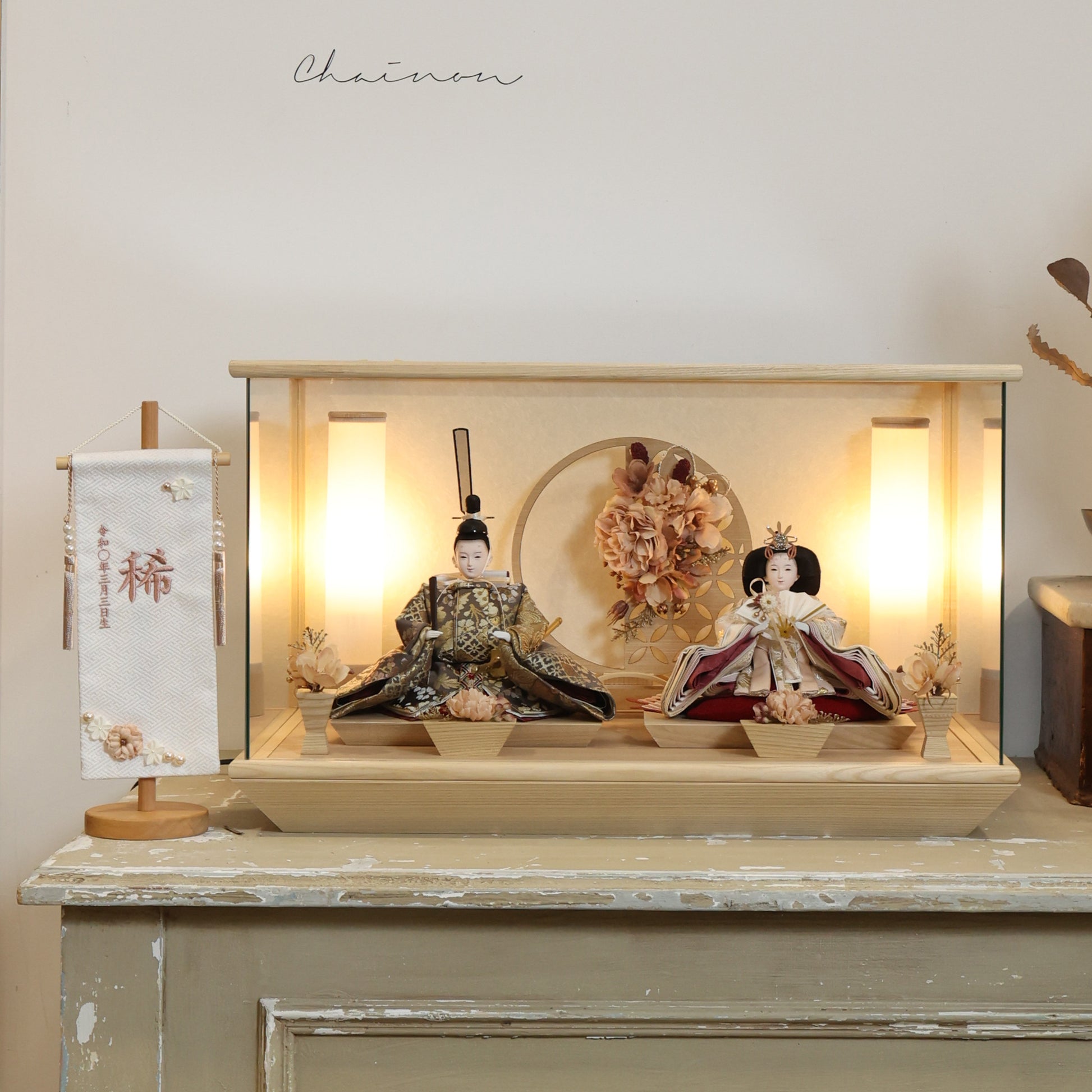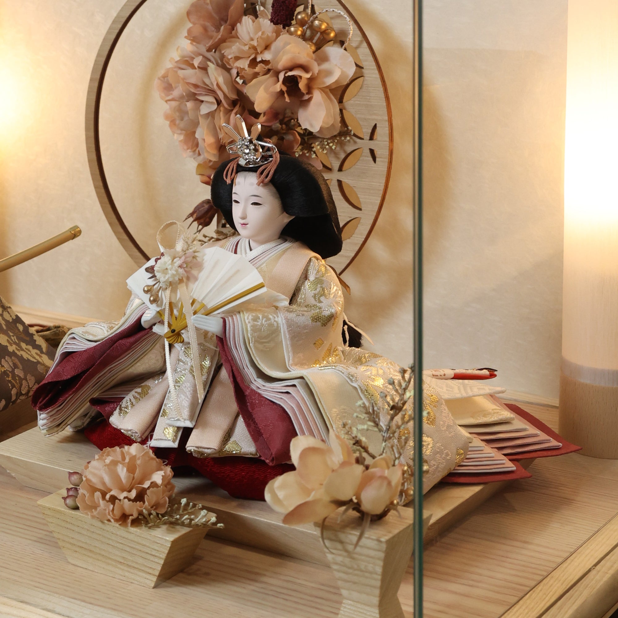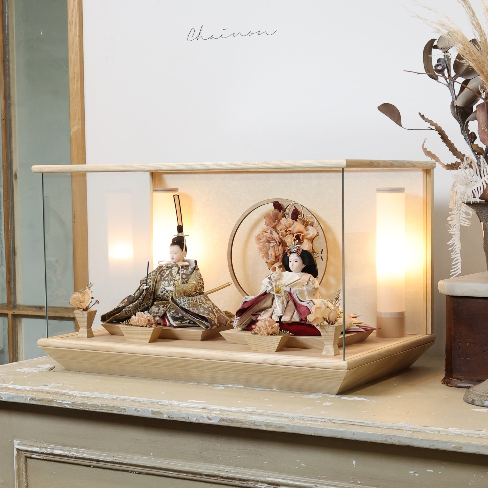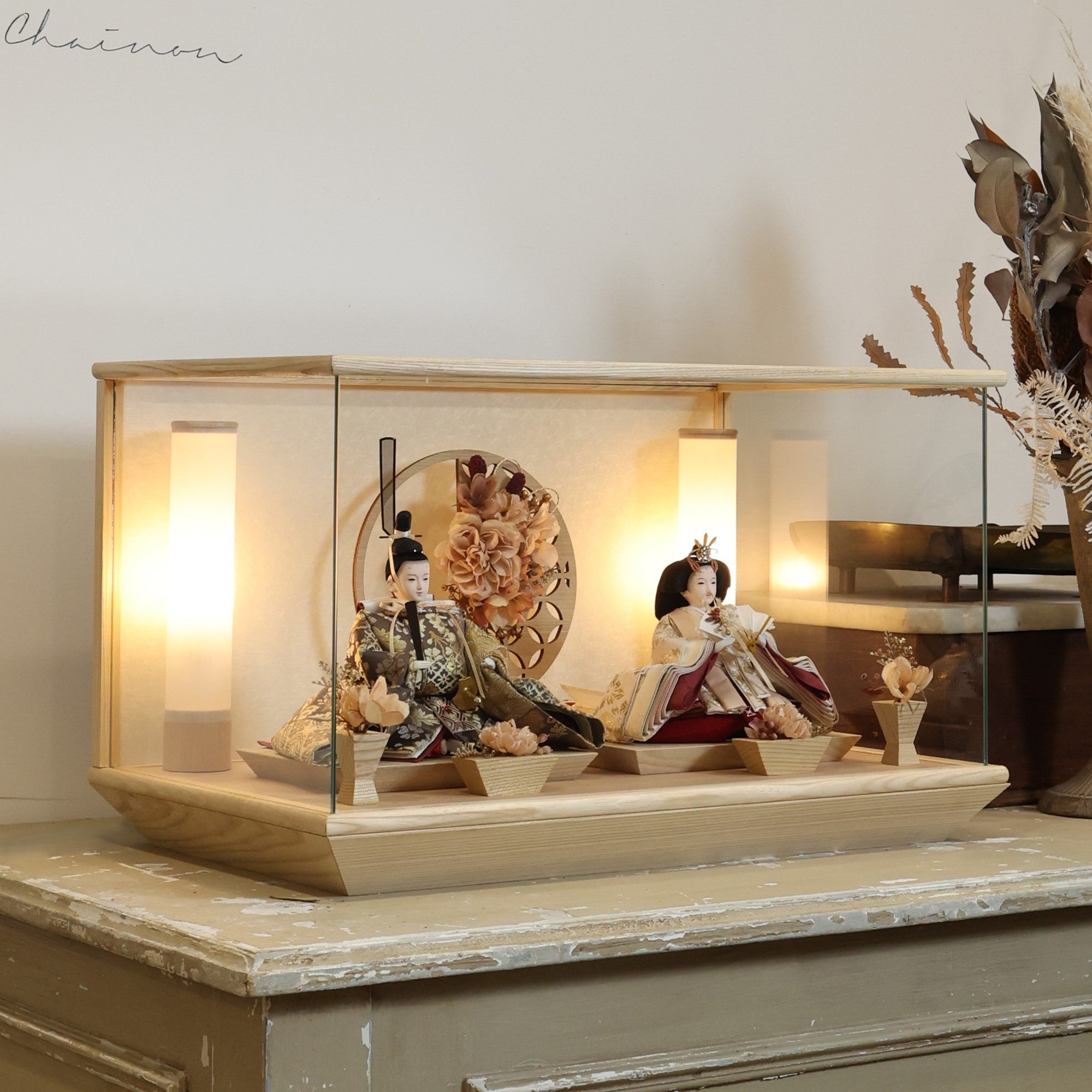 通常2mm厚が一般的な中、当店ではより高品質なAGC製3mmガラスを採用しています。厚みが増すことで強度と安全性が高まり、透明度の高いクリアな美しさを保ちます。大切な雛人形を守りながら、高級感のある見栄えを実現しています。
