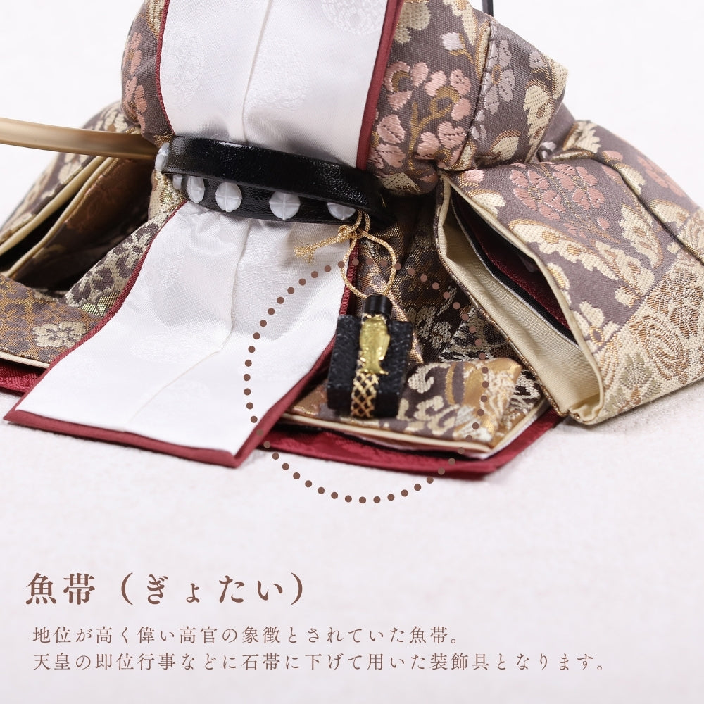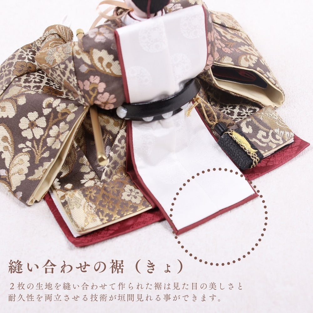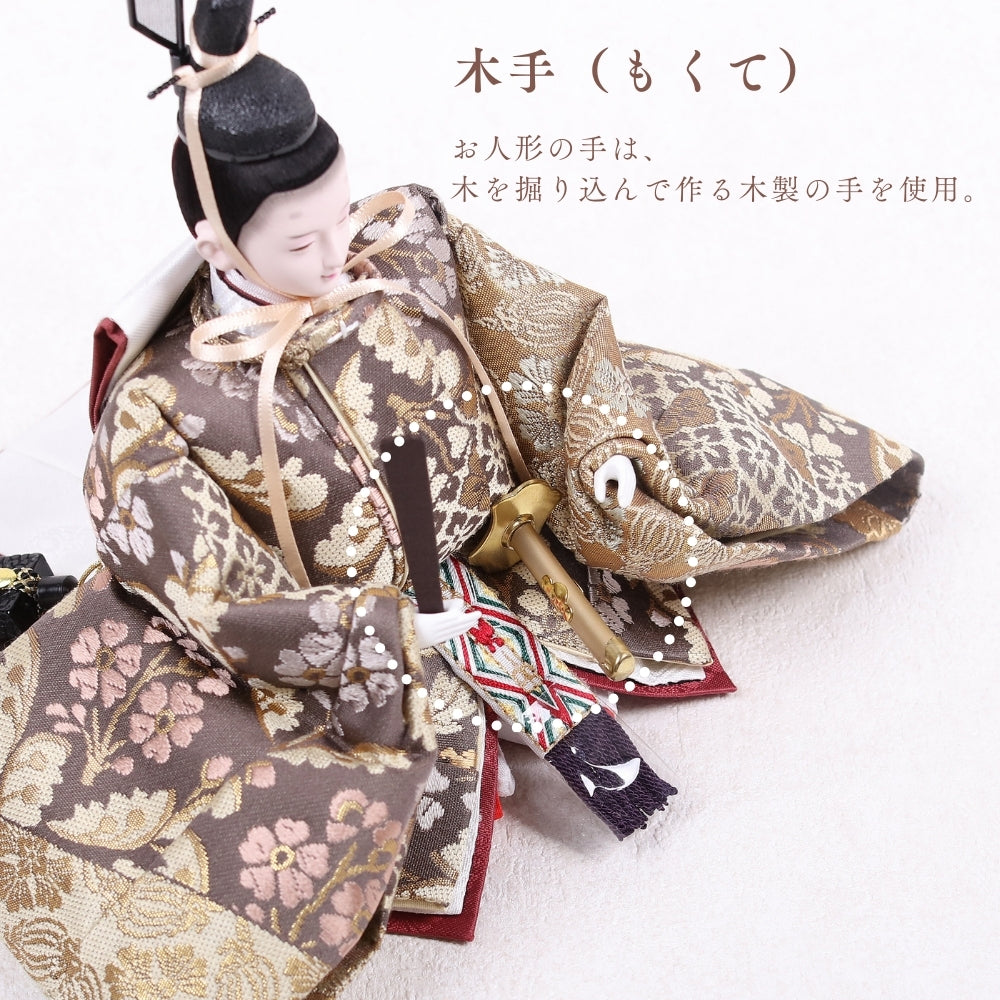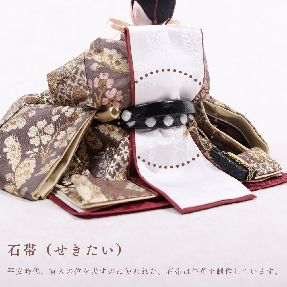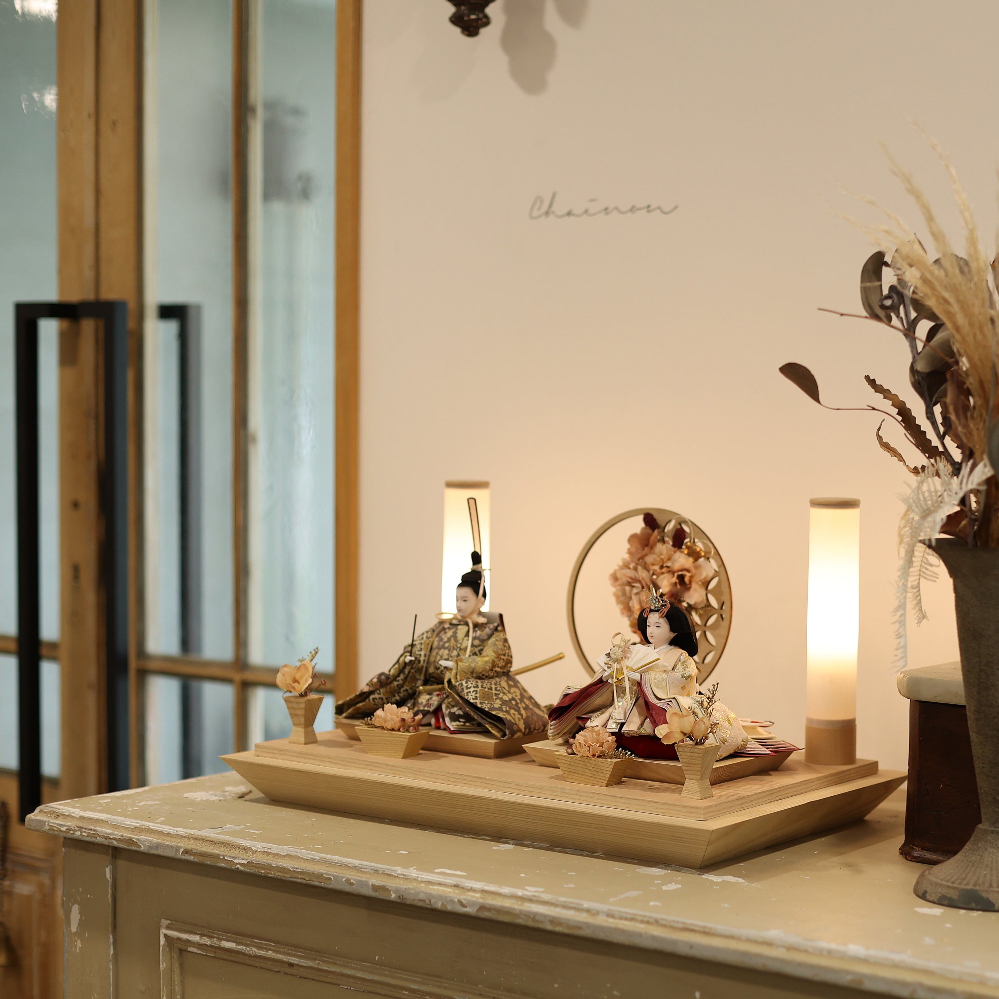 国産の栓(せん)は、美しい木目と温もりある質感が魅力の天然木です。耐久性に優れ、経年とともに味わいを深めます。台座や屏風などに使用することで、自然素材ならではの落ち着いた風合いと上質感を演出し、雛人形全体をより品格ある印象に仕上げます。