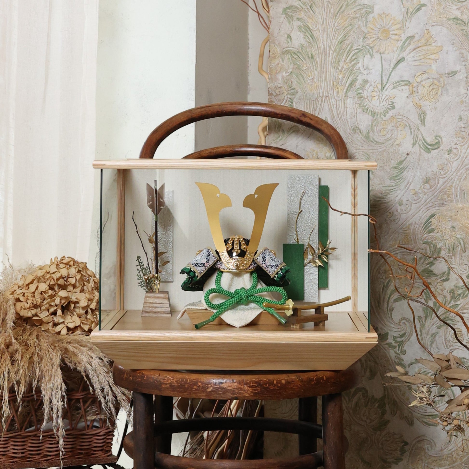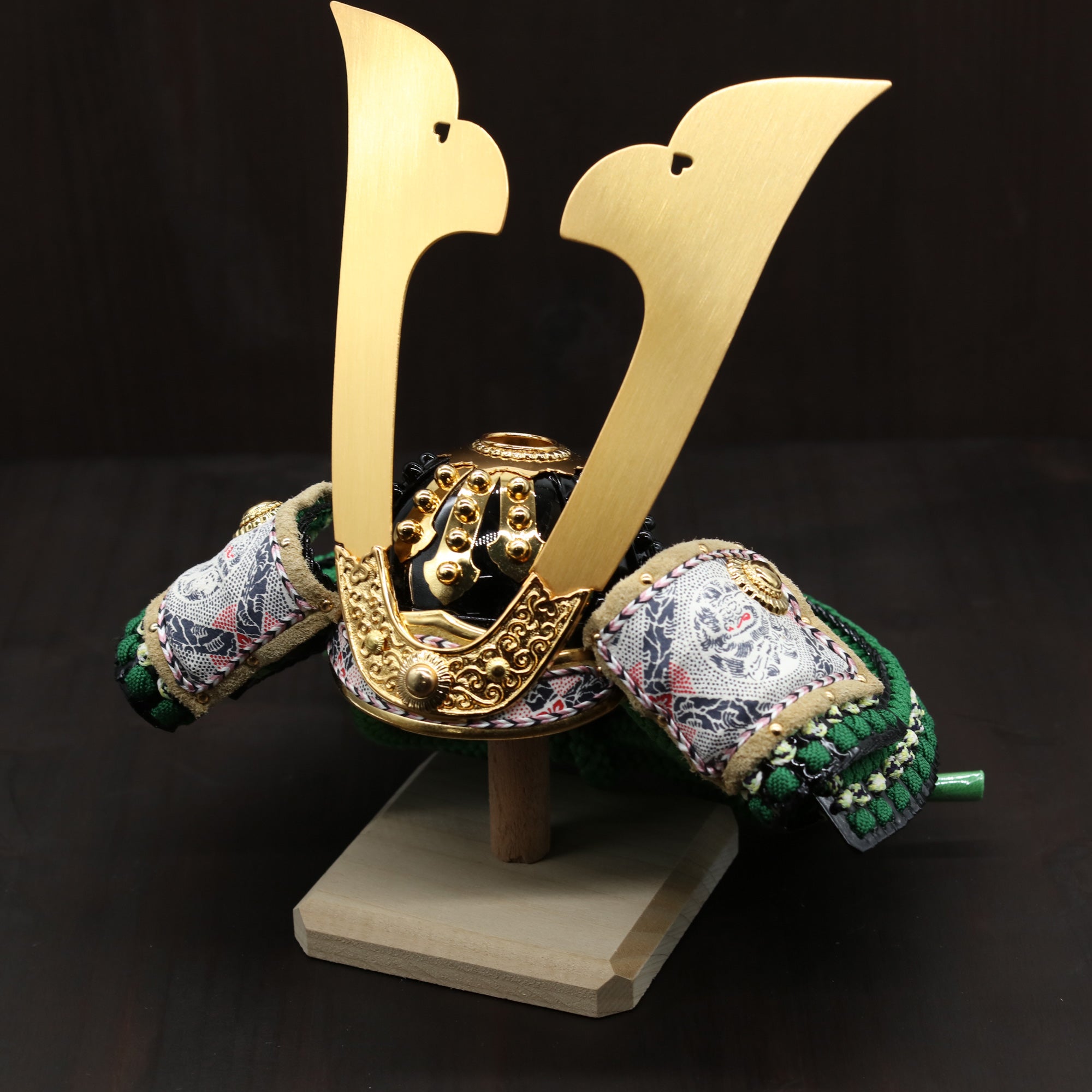存在感のある大鍬形を、やわらかな金色で仕立てました。