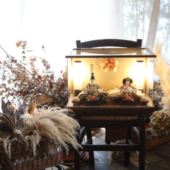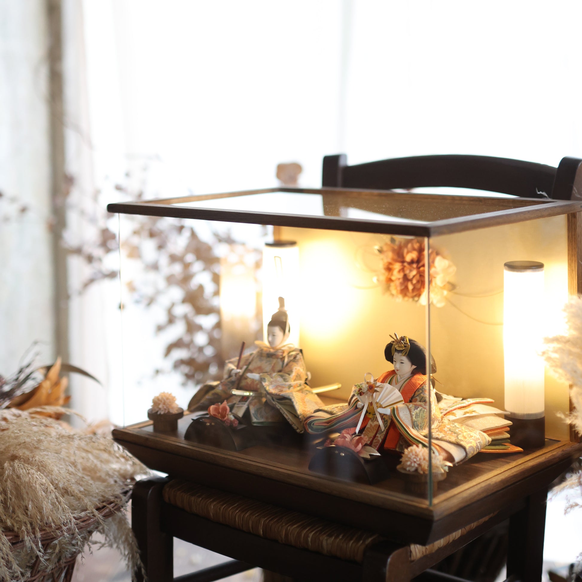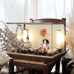 通常2mm厚が一般的な中、当店ではより高品質なAGC製3mmガラスを採用しています。厚みが増すことで強度と安全性が高まり、透明度の高いクリアな美しさを保ちます。大切な雛人形を守りながら、高級感のある見栄えを実現しています。