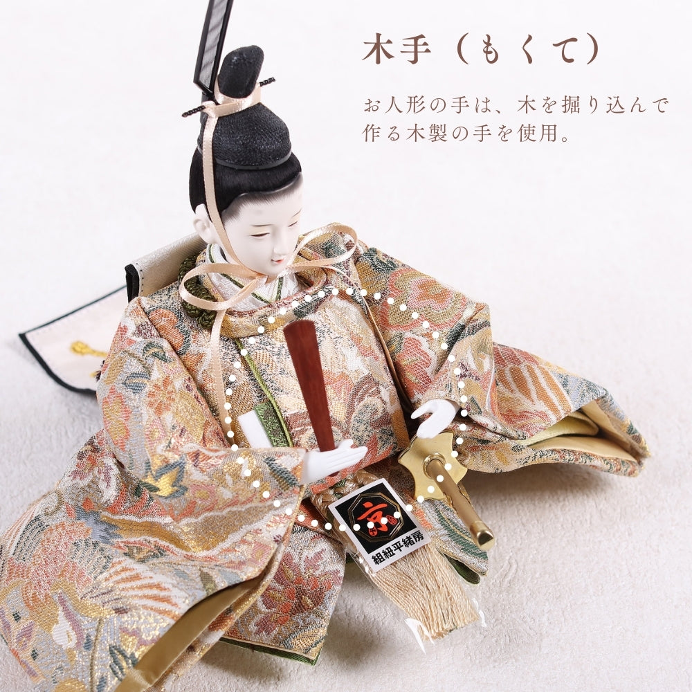 国産の栓(せん)は、美しい木目と温もりある質感が魅力の天然木です。耐久性に優れ、経年とともに味わいを深めます。台座や屏風などに使用することで、自然素材ならではの落ち着いた風合いと上質感を演出し、雛人形全体をより品格ある印象に仕上げます。