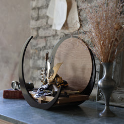 正面に配した金具は、透かしの意匠が美しく、軽やかな華を添えるアクセント。