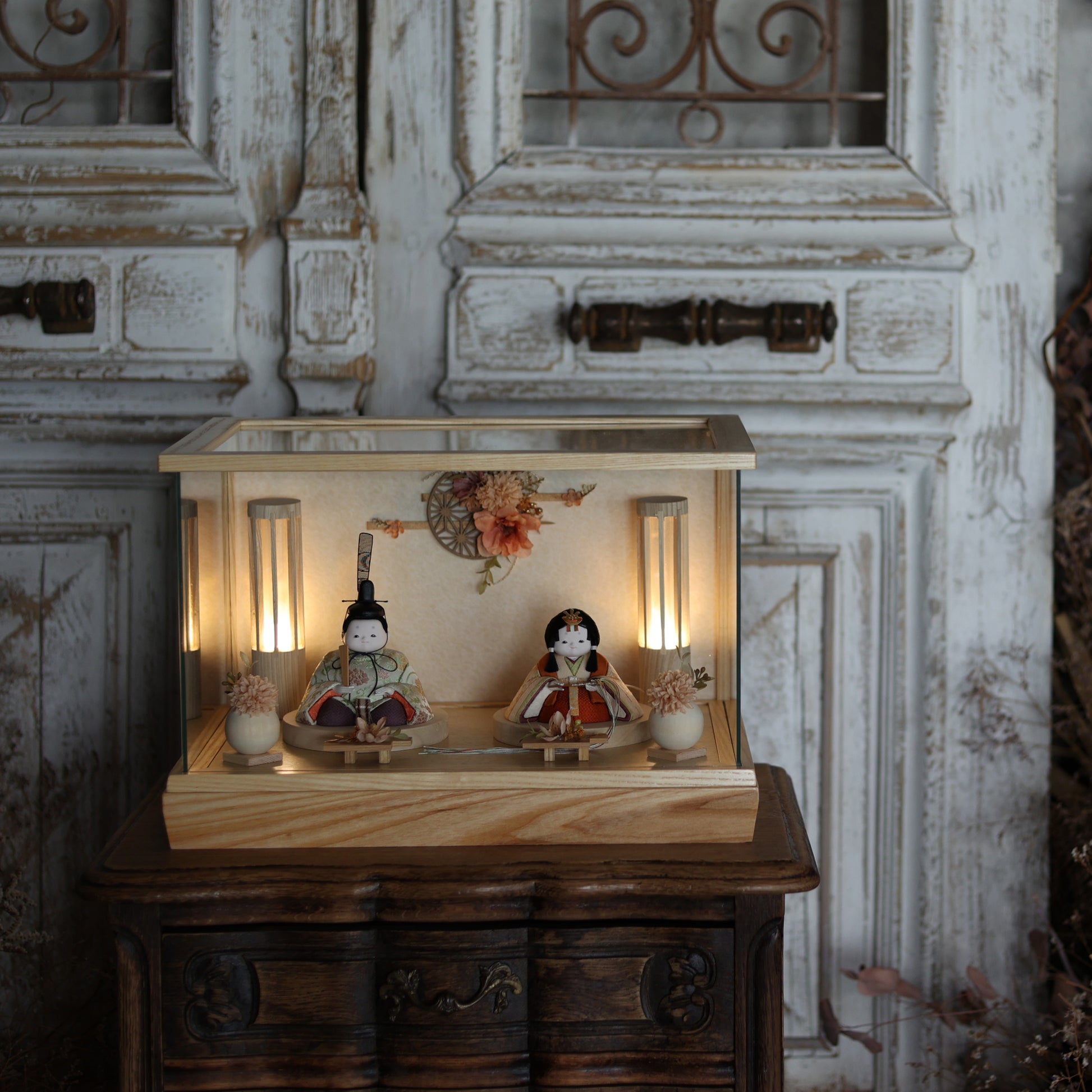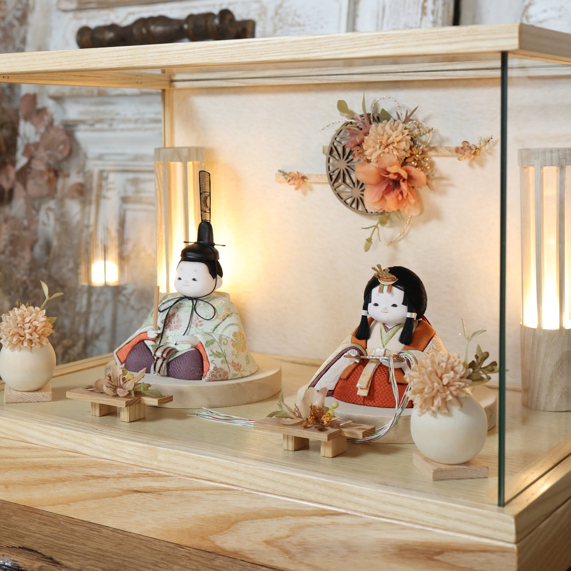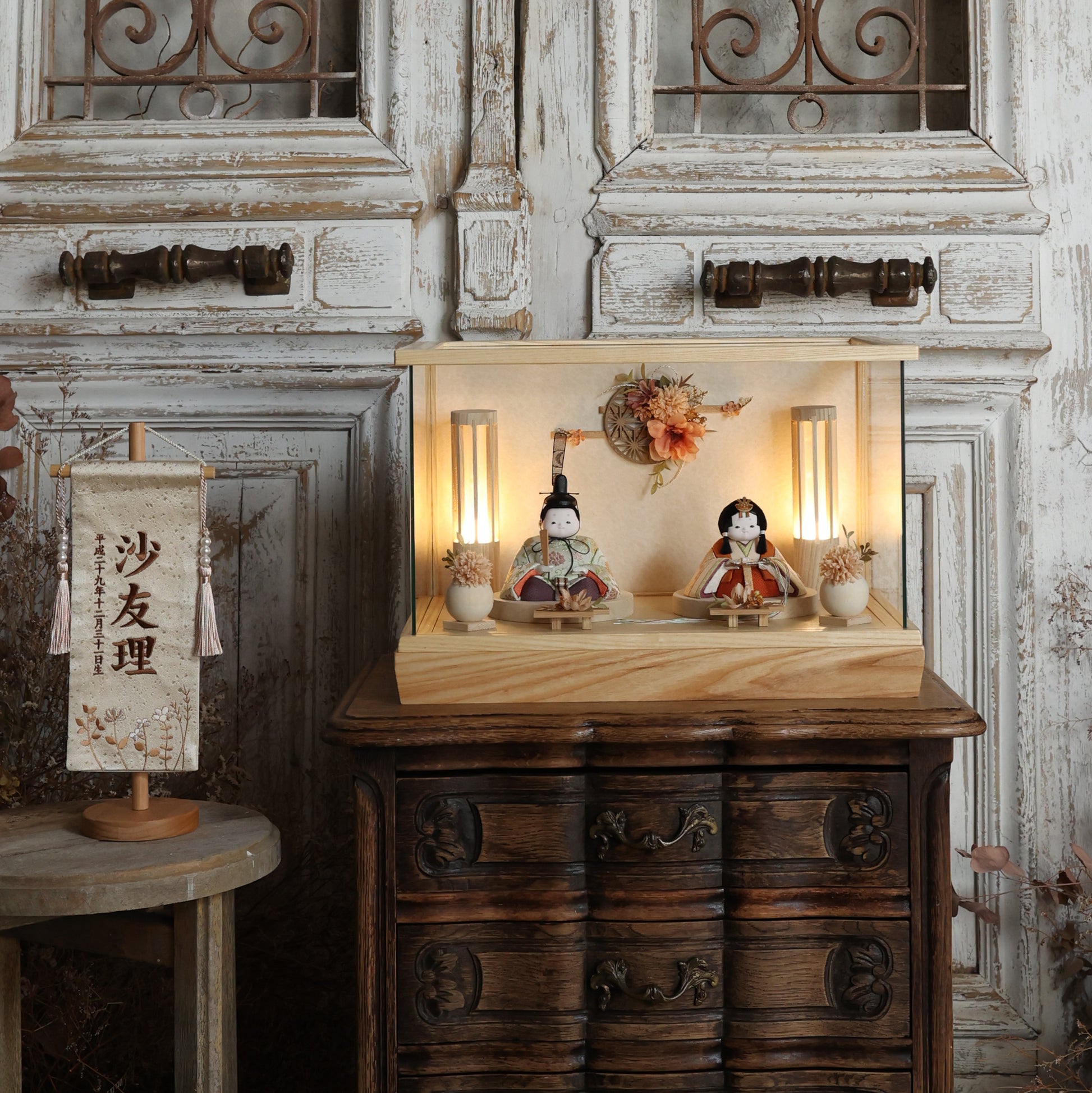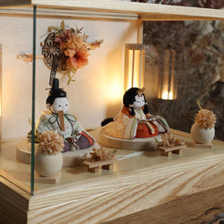 通常2mm厚が一般的な中、当店ではより高品質なAGC製3mmガラスを採用しています。厚みが増すことで強度と安全性が高まり、透明度の高いクリアな美しさを保ちます。大切な雛人形を守りながら、高級感のある見栄えを実現しています。