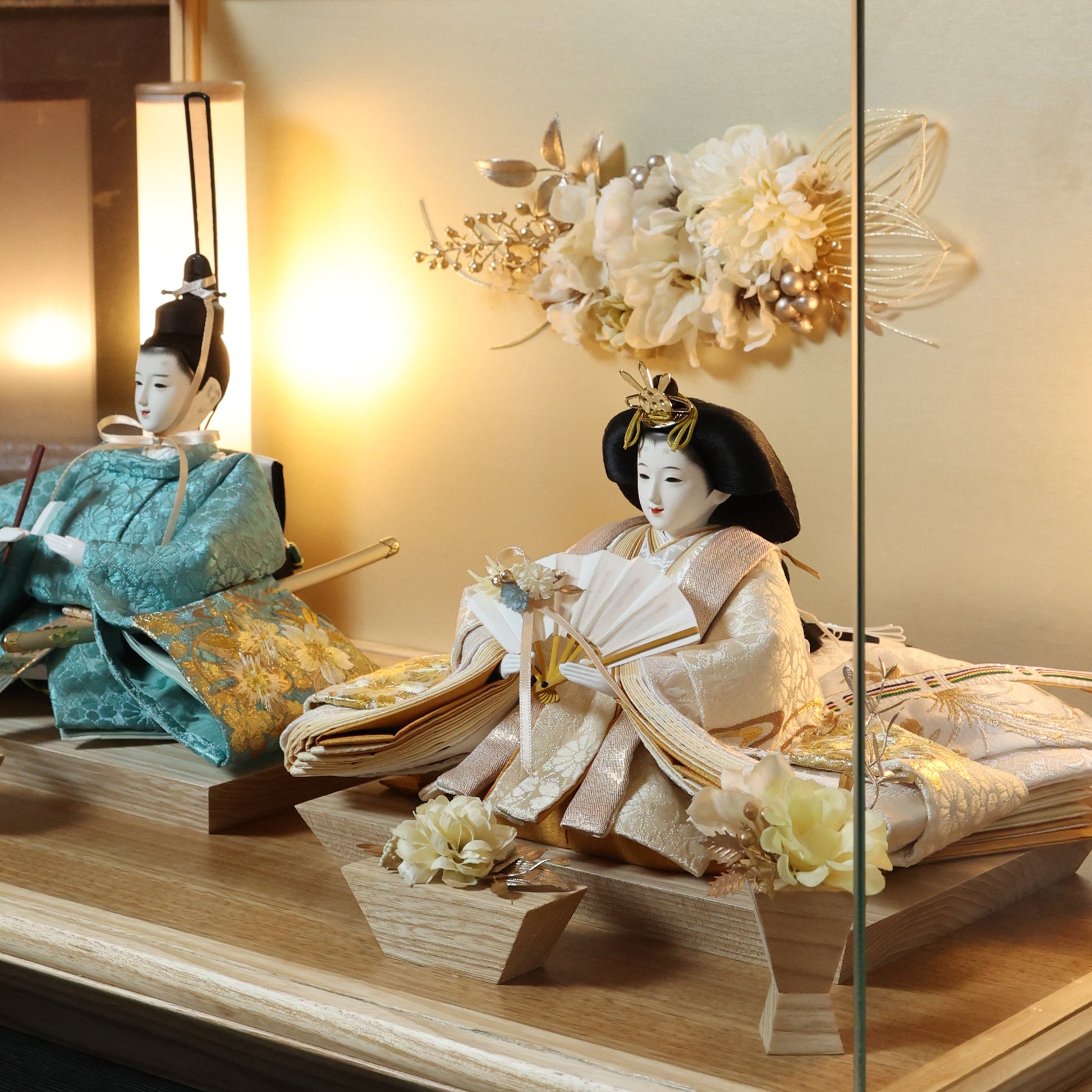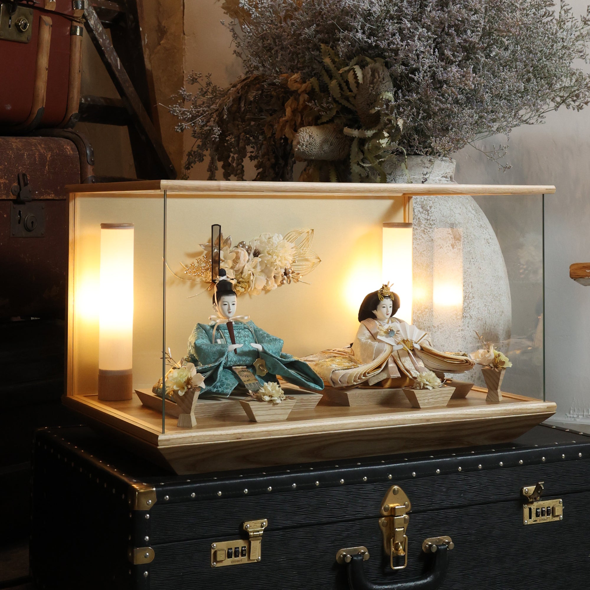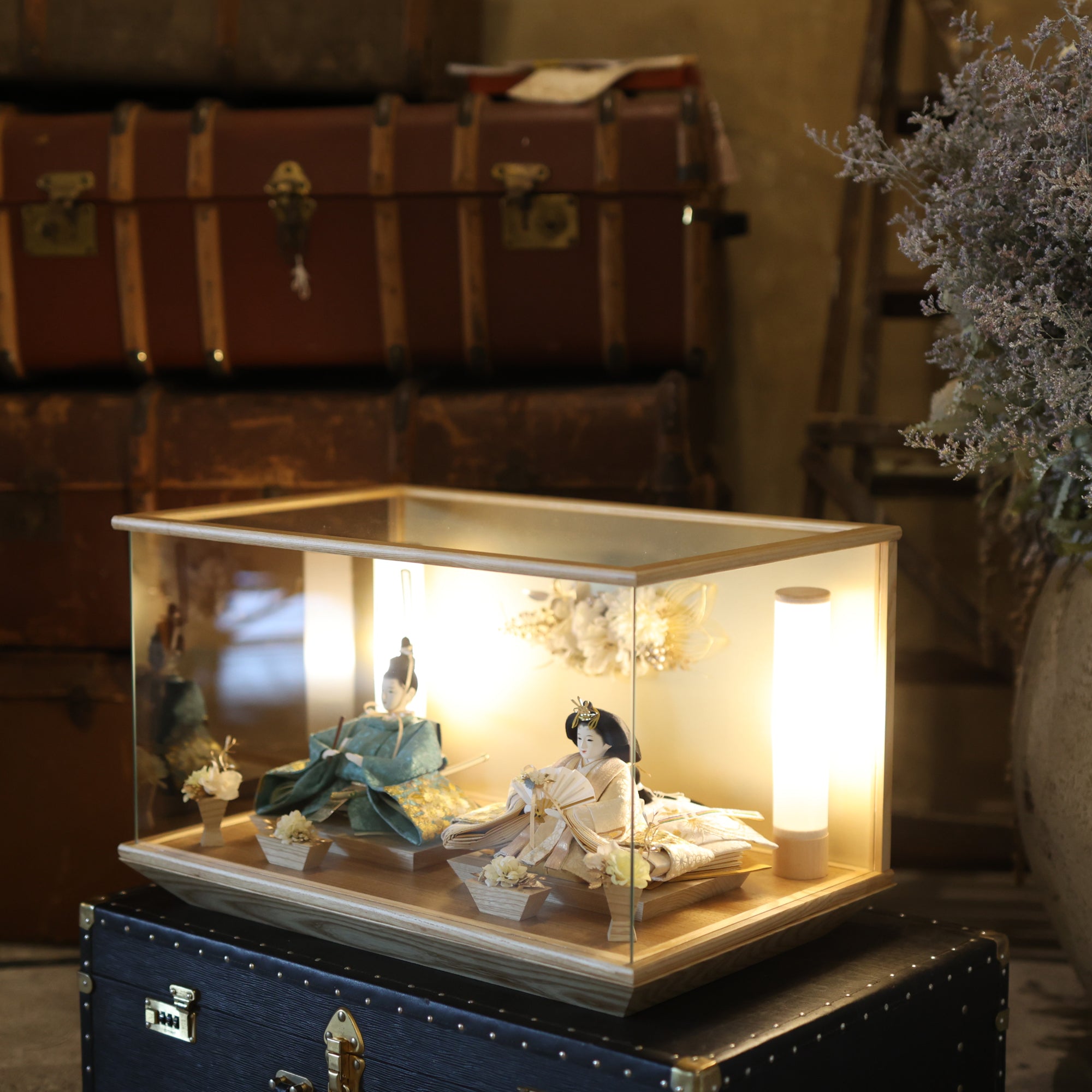 通常2mm厚が一般的な中、当店ではより高品質なAGC製3mmガラスを採用しています。厚みが増すことで強度と安全性が高まり、透明度の高いクリアな美しさを保ちます。大切な雛人形を守りながら、高級感のある見栄えを実現しています。