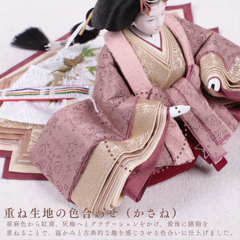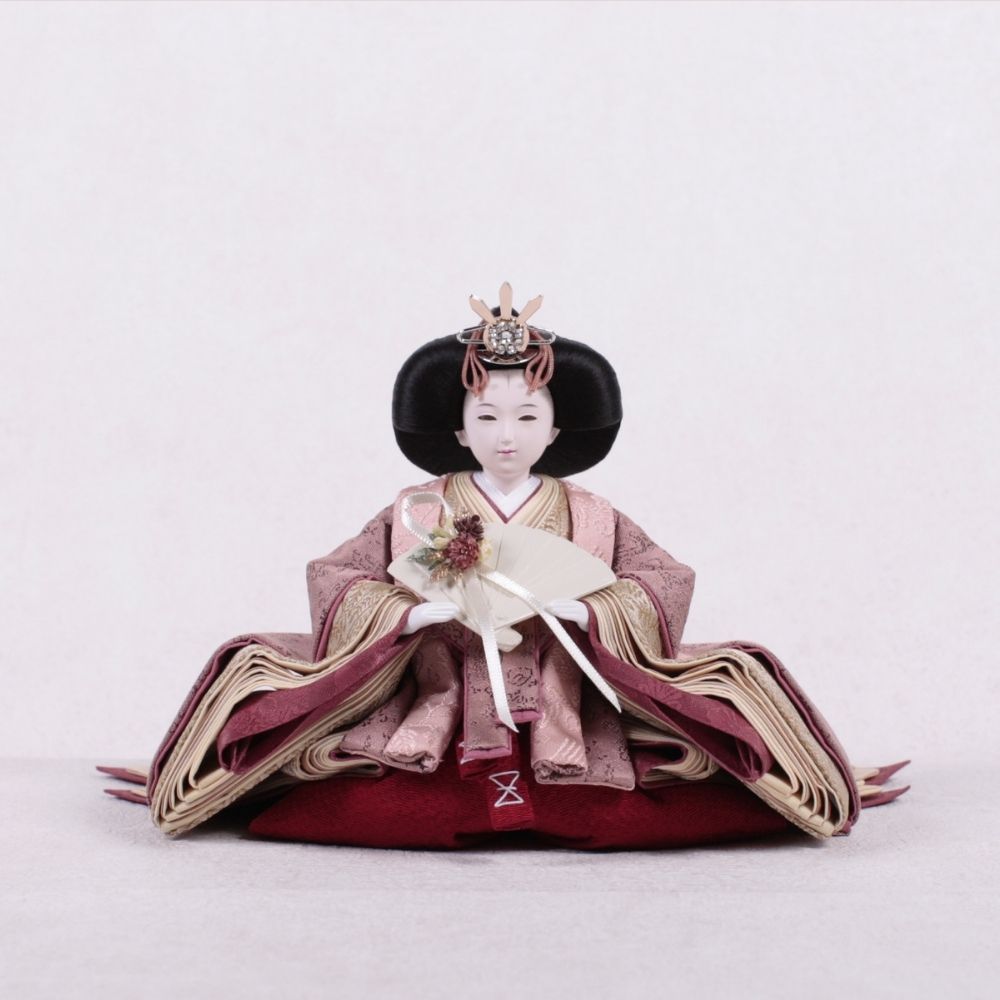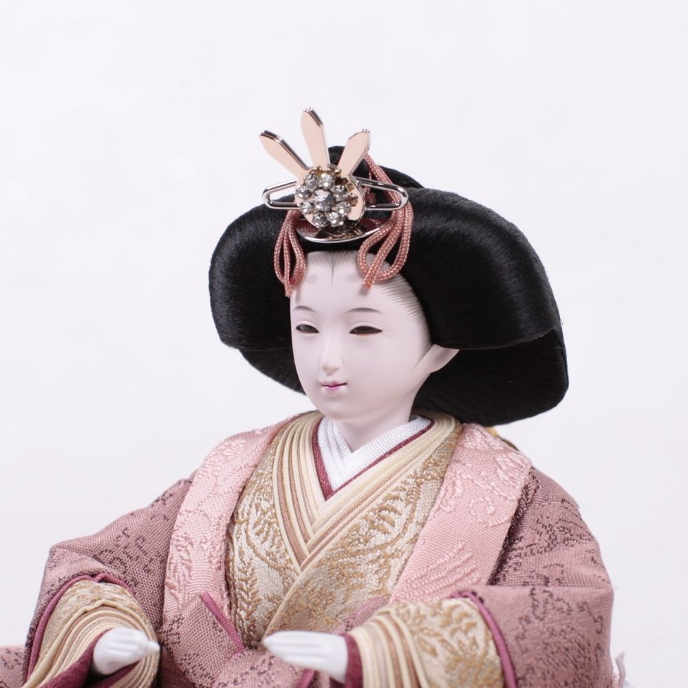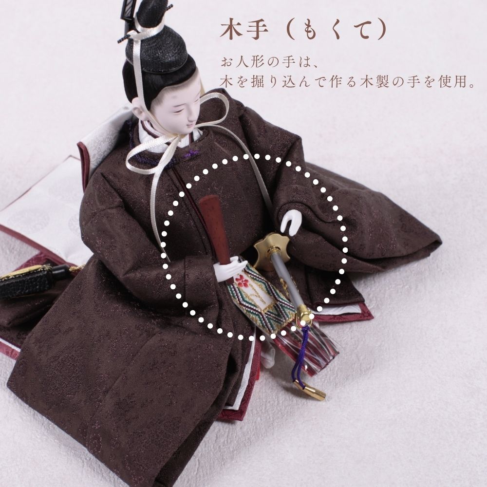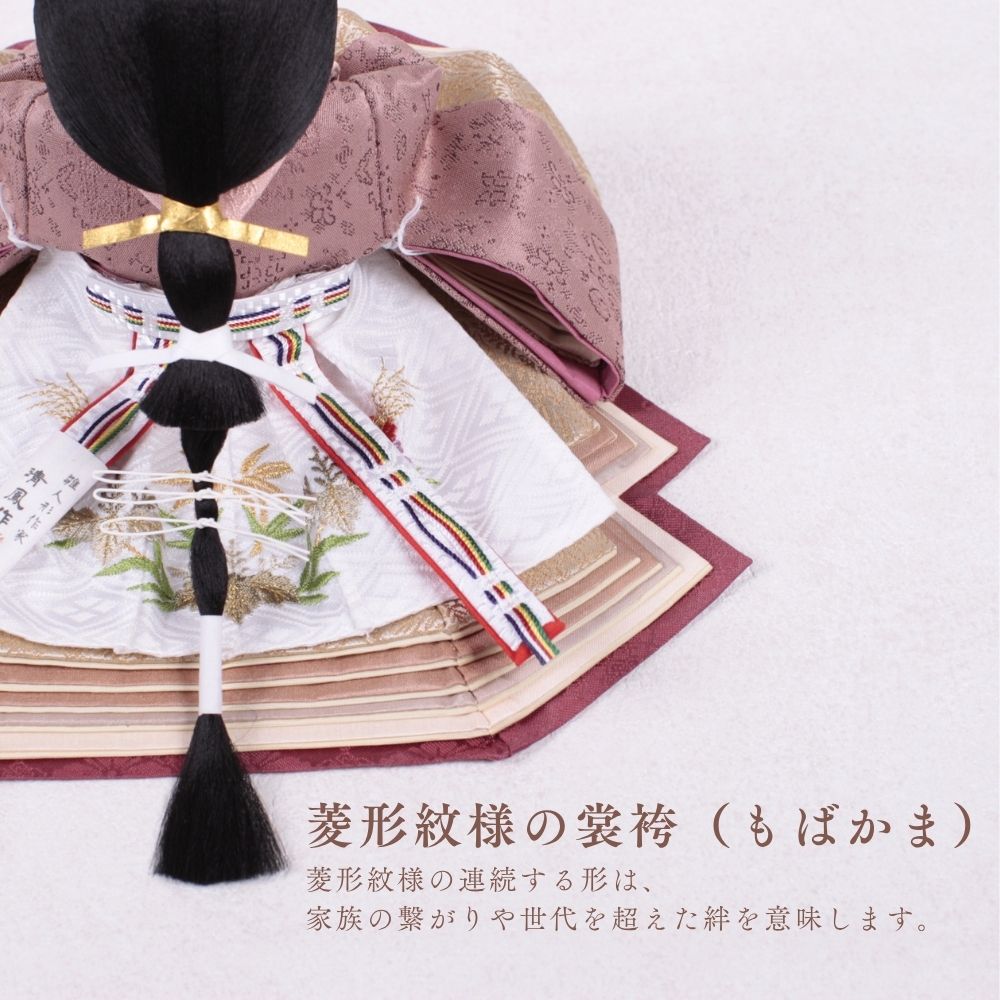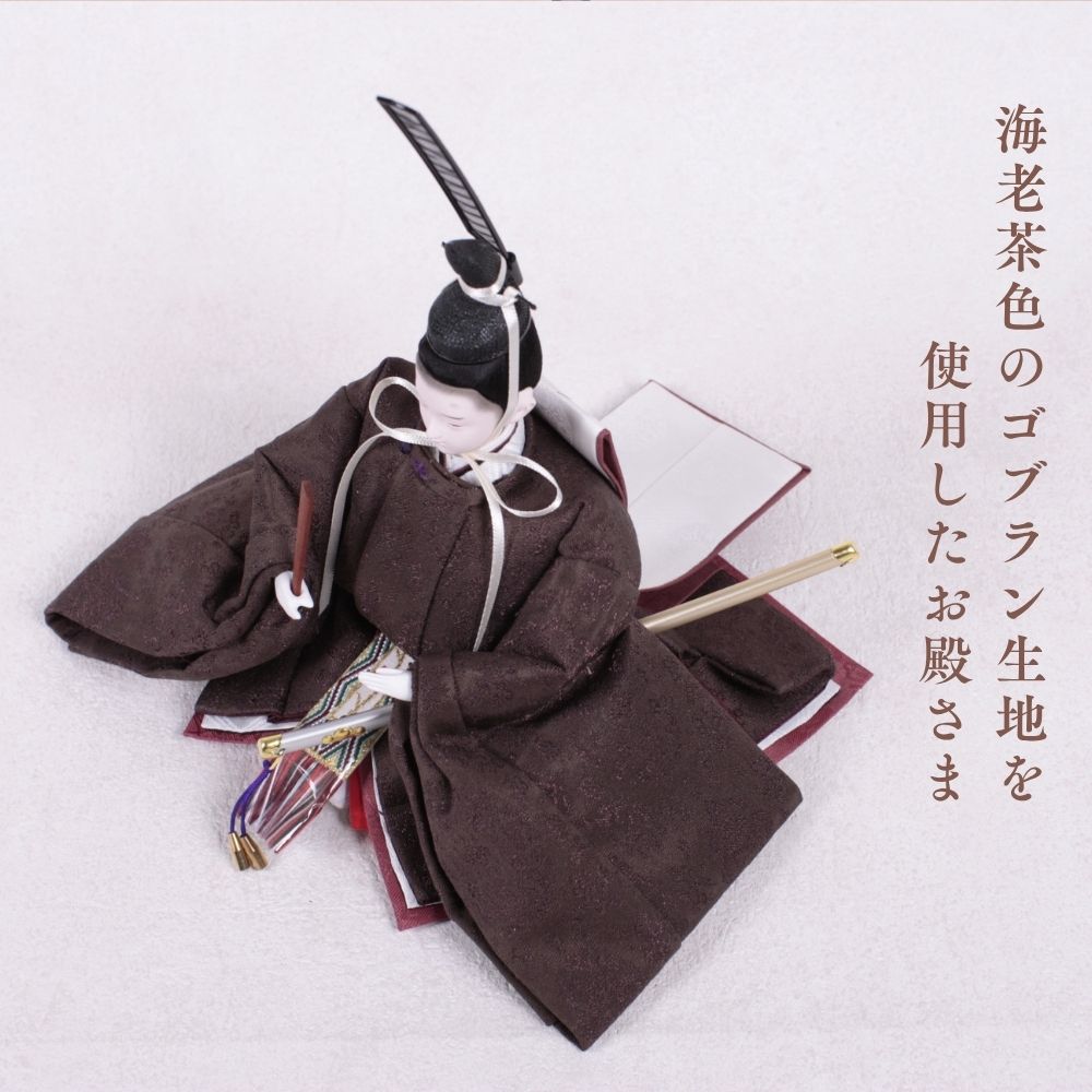 この雛人形は、深い海老茶色の衣装をまとい、伝統的な日本文化を表現しています。海老茶色は生命力や温かみを象徴し、赤ちゃんの無垢さを思い起こさせる色です。穏やかな表情や精巧な刺繍は職人の技術を示し、見る人に感動を与えます。この雛人形は、子どもたちの健康と幸せを願う重要な存在であり、家族の絆を深める宝物として代々受け継がれることでしょう。温もりを感じる特別な存在です。