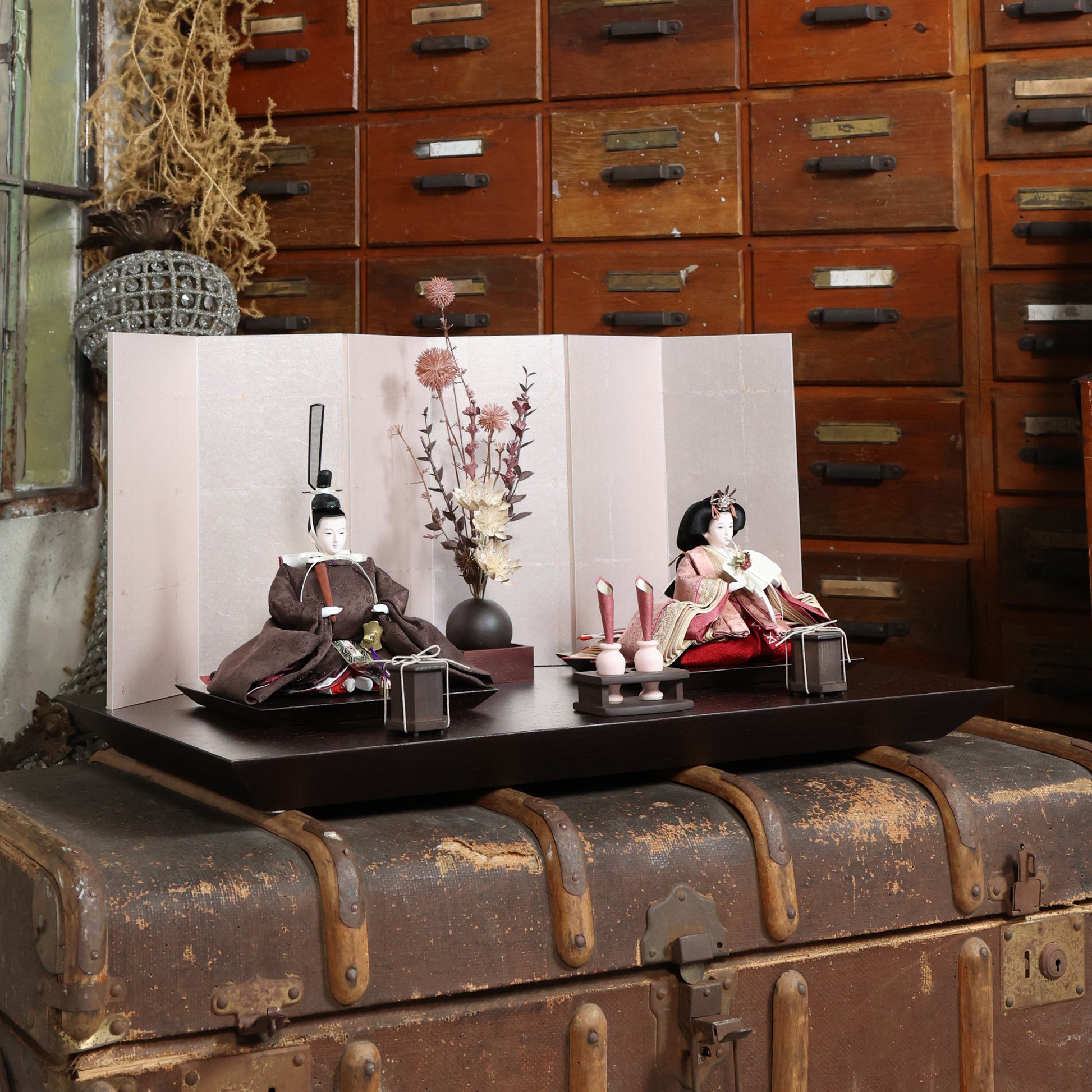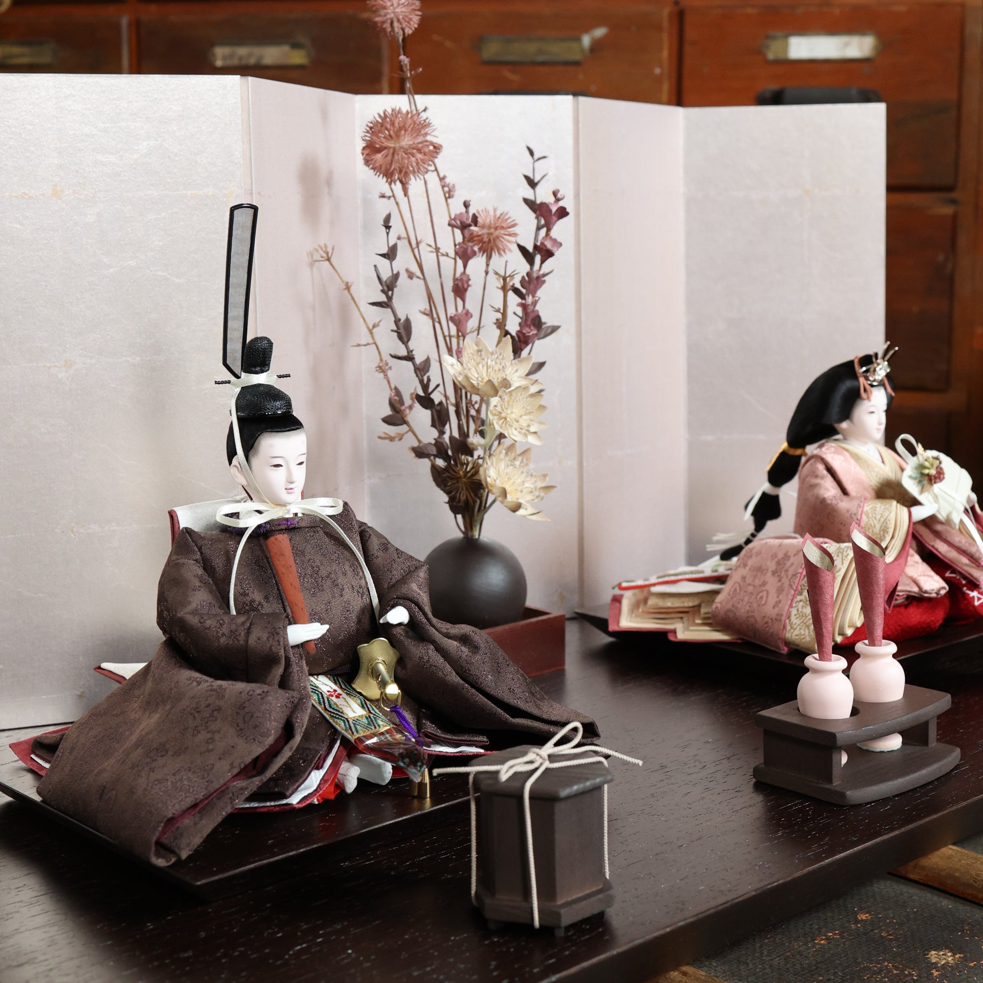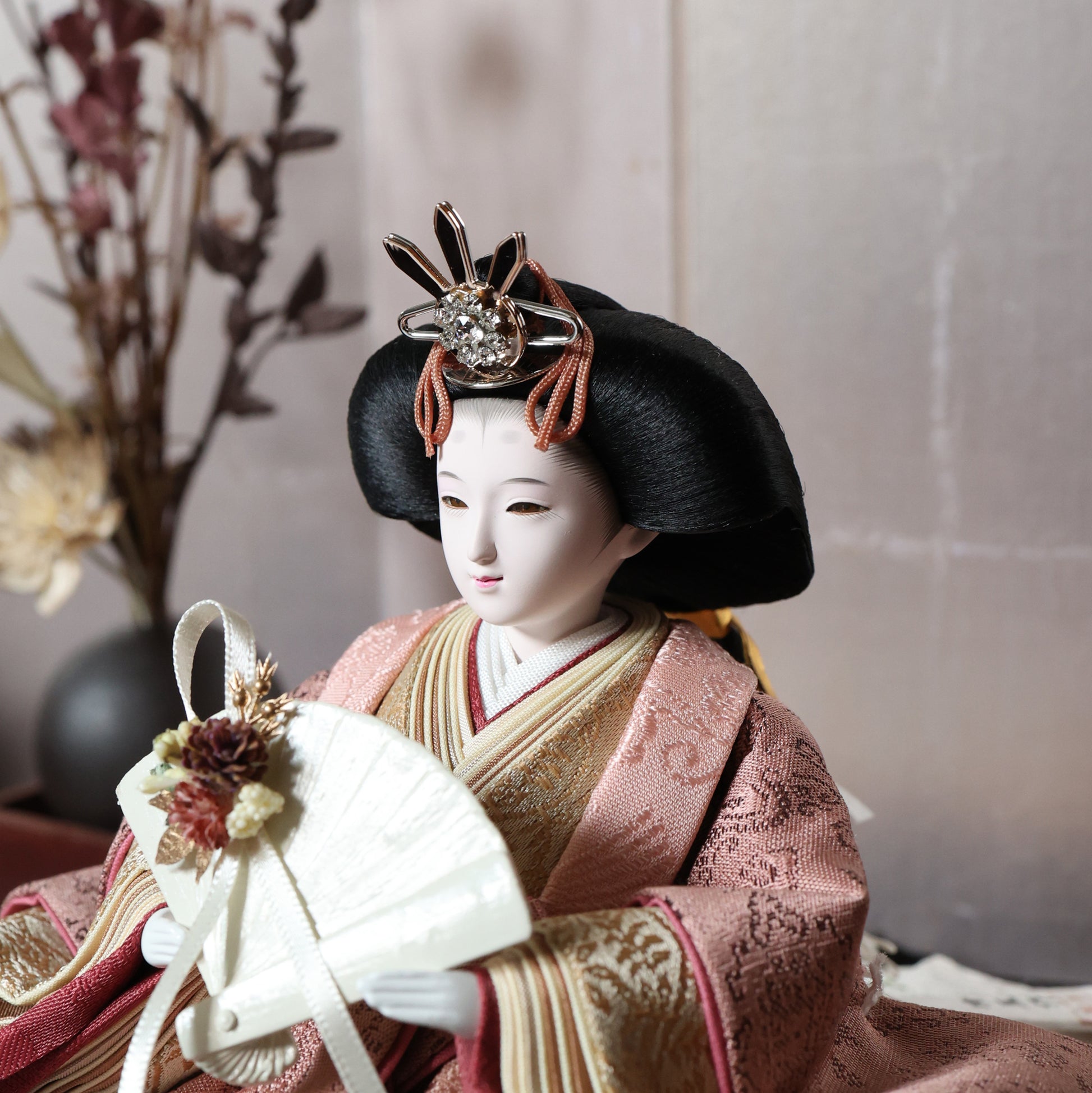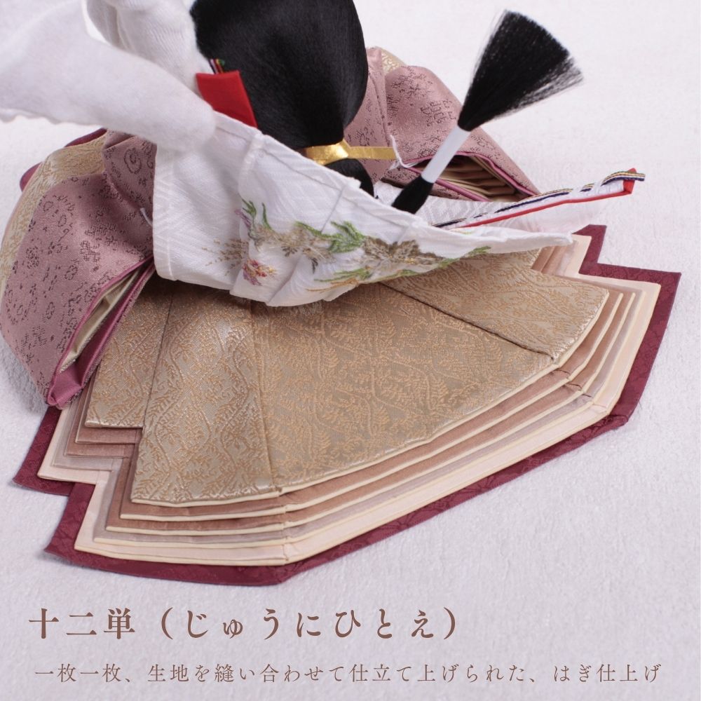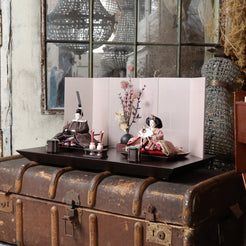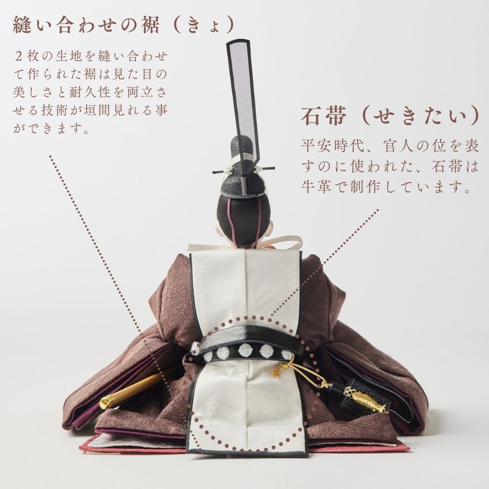 この雛人形は、深い海老茶色の衣装をまとい、伝統的な日本文化を表現しています。海老茶色は生命力や温かみを象徴し、赤ちゃんの無垢さを思い起こさせる色です。穏やかな表情や精巧な刺繍は職人の技術を示し、見る人に感動を与えます。この雛人形は、子どもたちの健康と幸せを願う重要な存在であり、家族の絆を深める宝物として代々受け継がれることでしょう。温もりを感じる特別な存在です。