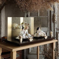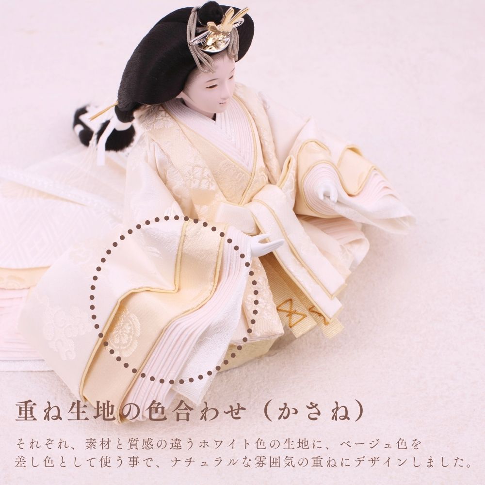 国産の栓(せん)は、美しい木目と温もりある質感が魅力の天然木です。耐久性に優れ、経年とともに味わいを深めます。台座や屏風などに使用することで、自然素材ならではの落ち着いた風合いと上質感を演出し、雛人形全体をより品格ある印象に仕上げます。