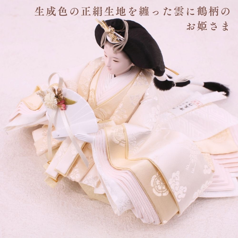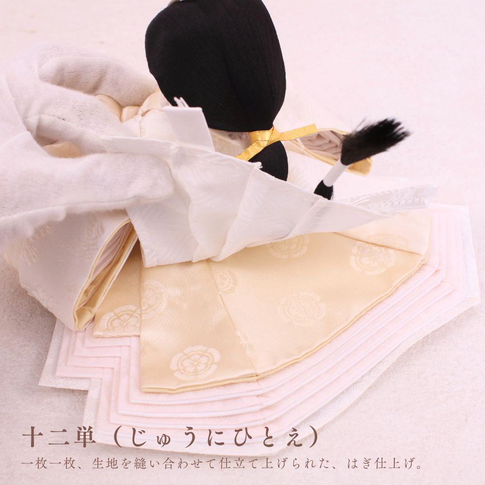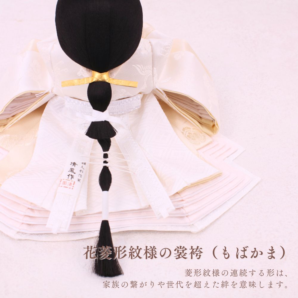 正絹は、100%絹から作られた生地で、「本絹」とも呼ばれます。蚕の繭を原料にし、複雑な工程を経て製造されます。絹糸を織って生地に仕上げることで、独特の光沢と滑らかな質感が生まれ、高級感のあるお人形が完成します。正絹は伝統的な工芸品に広く用いられ、その美しさが際立っています。
