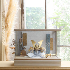 兜の左右に広がる吹き返しは、顔まわりを守る役目を持ちながら、全体の印象を決める“額縁”のような存在。豪華な織と立体感のある意匠が、光を受けるたび上品にきらめきます。凛とした鍬形を引き立て、飾った瞬間に特別感が伝わる吹き返しです。
