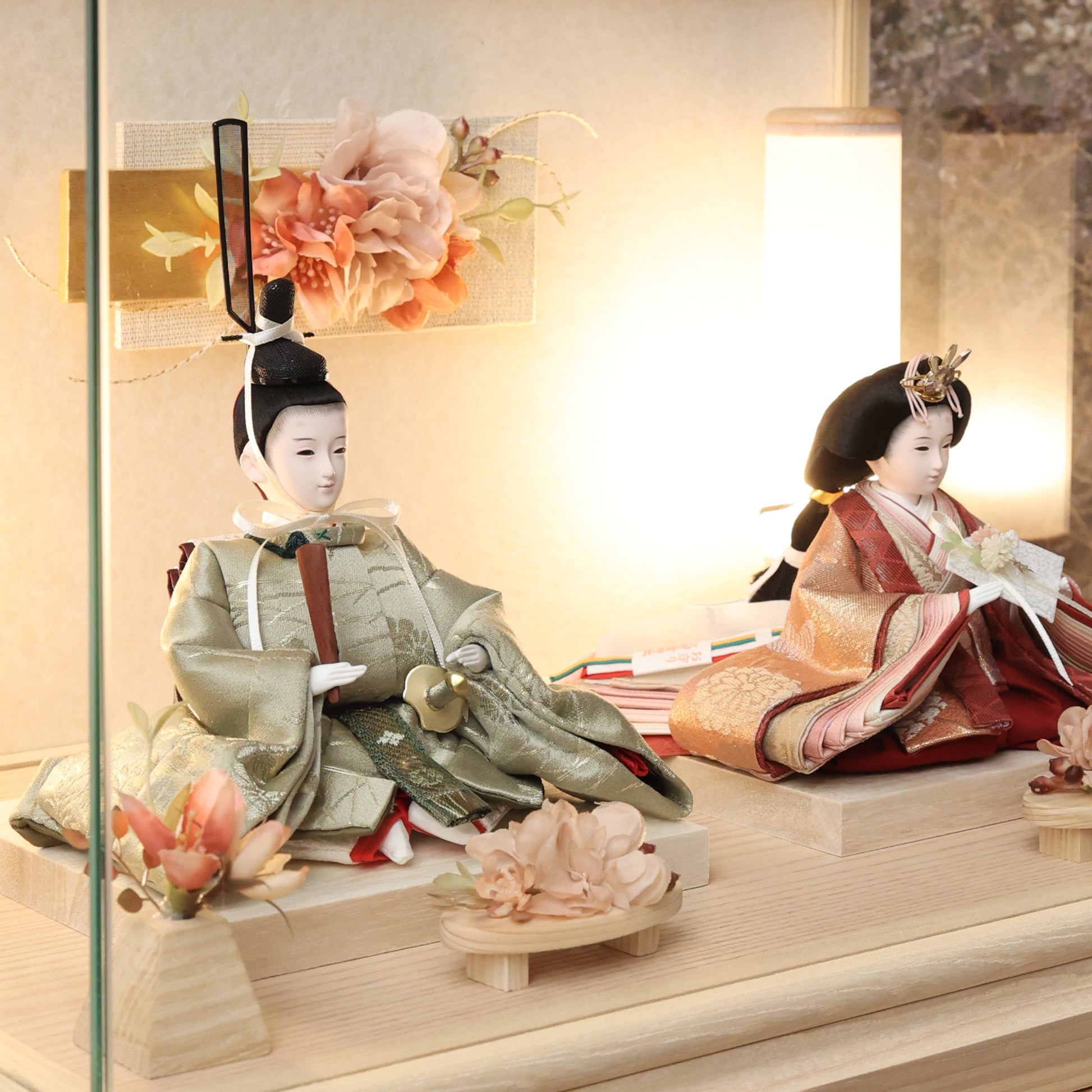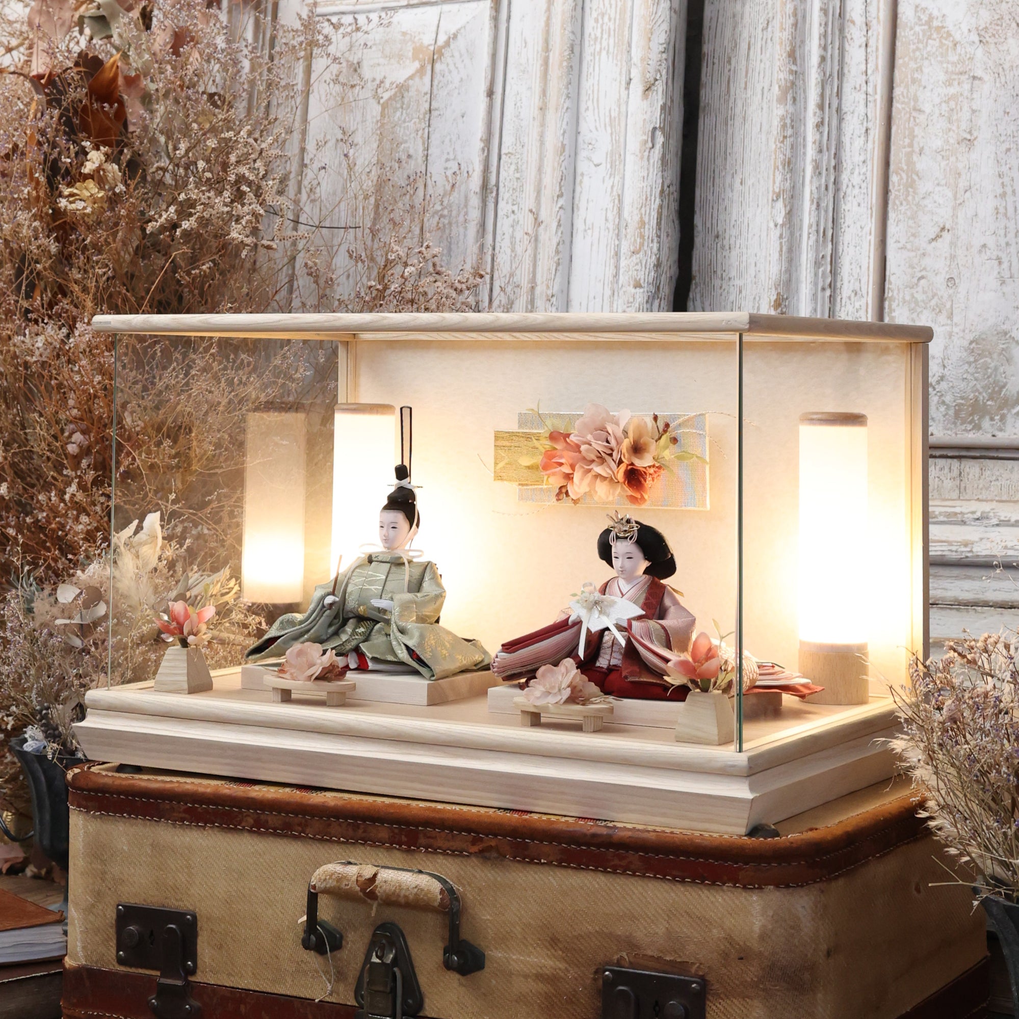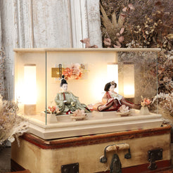 通常2mm厚が一般的な中、当店ではより高品質なAGC製3mmガラスを採用しています。厚みが増すことで強度と安全性が高まり、透明度の高いクリアな美しさを保ちます。大切な雛人形を守りながら、高級感のある見栄えを実現しています。