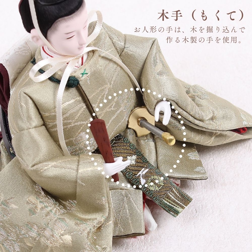 国産の栓(せん)は、美しい木目と温もりある質感が魅力の天然木です。耐久性に優れ、経年とともに味わいを深めます。台座や屏風などに使用することで、自然素材ならではの落ち着いた風合いと上質感を演出し、雛人形全体をより品格ある印象に仕上げます。