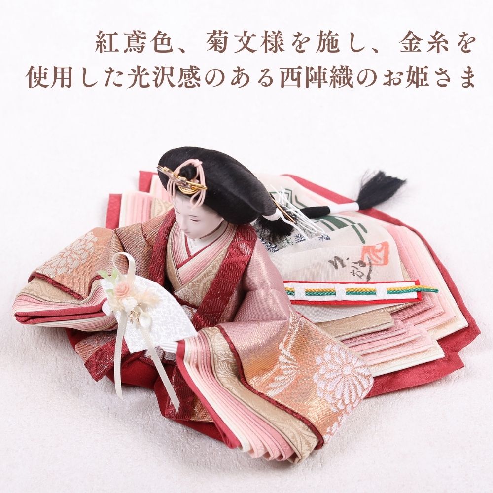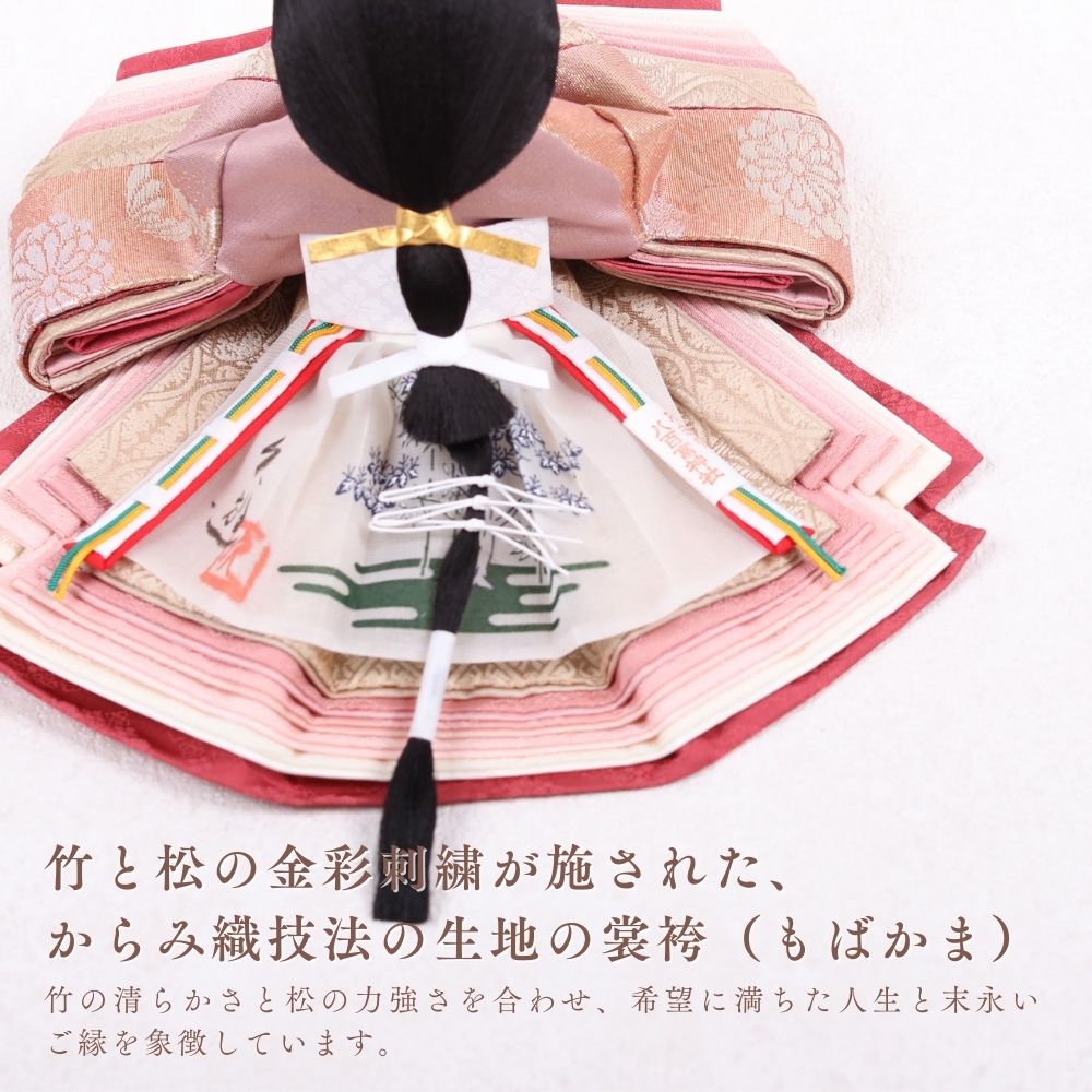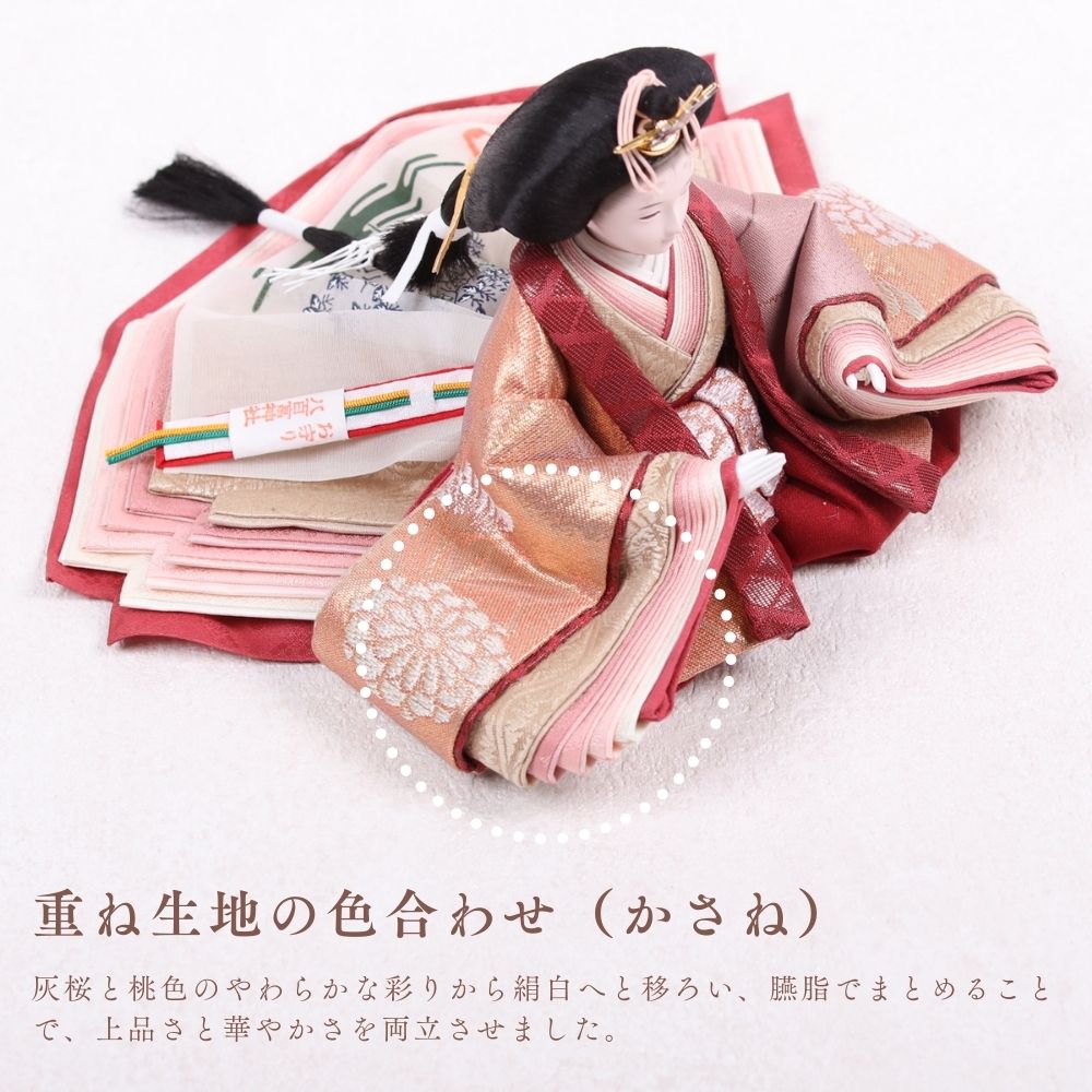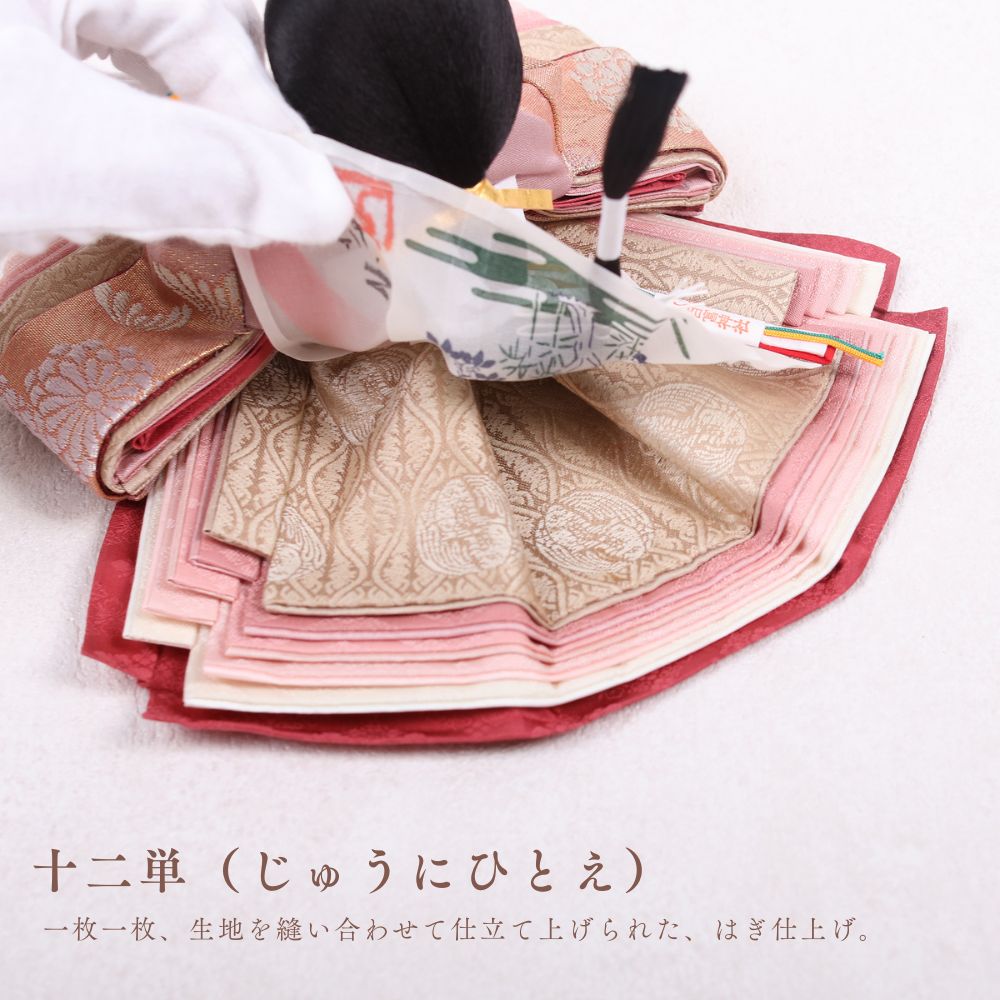 正絹は、100%絹から作られた生地で、「本絹」とも呼ばれます。蚕の繭を原料にし、複雑な工程を経て製造されます。絹糸を織って生地に仕上げることで、独特の光沢と滑らかな質感が生まれ、高級感のあるお人形が完成します。正絹は伝統的な工芸品に広く用いられ、その美しさが際立っています。