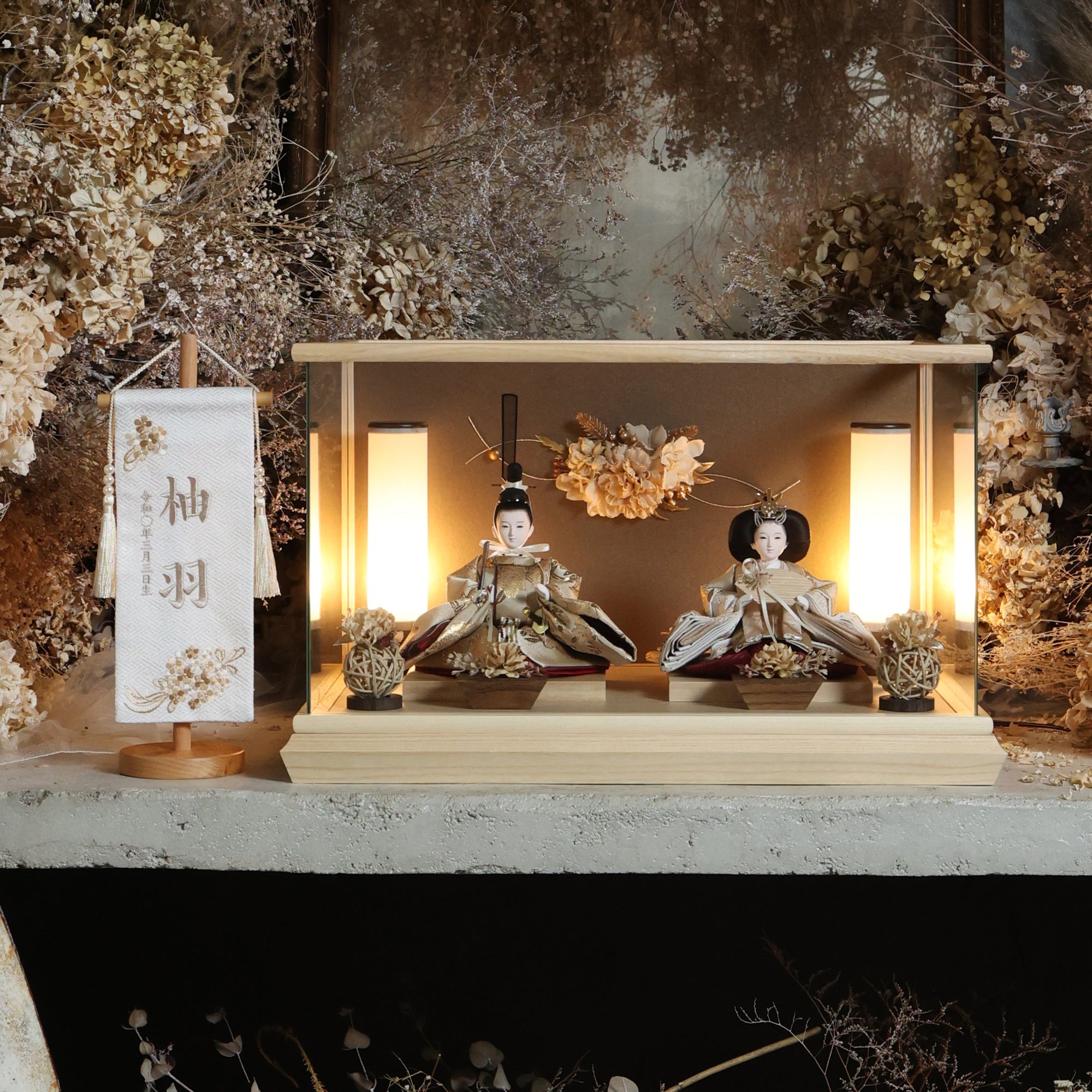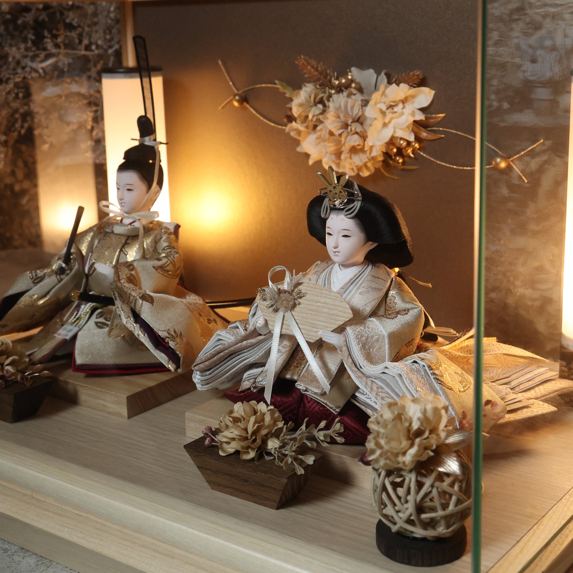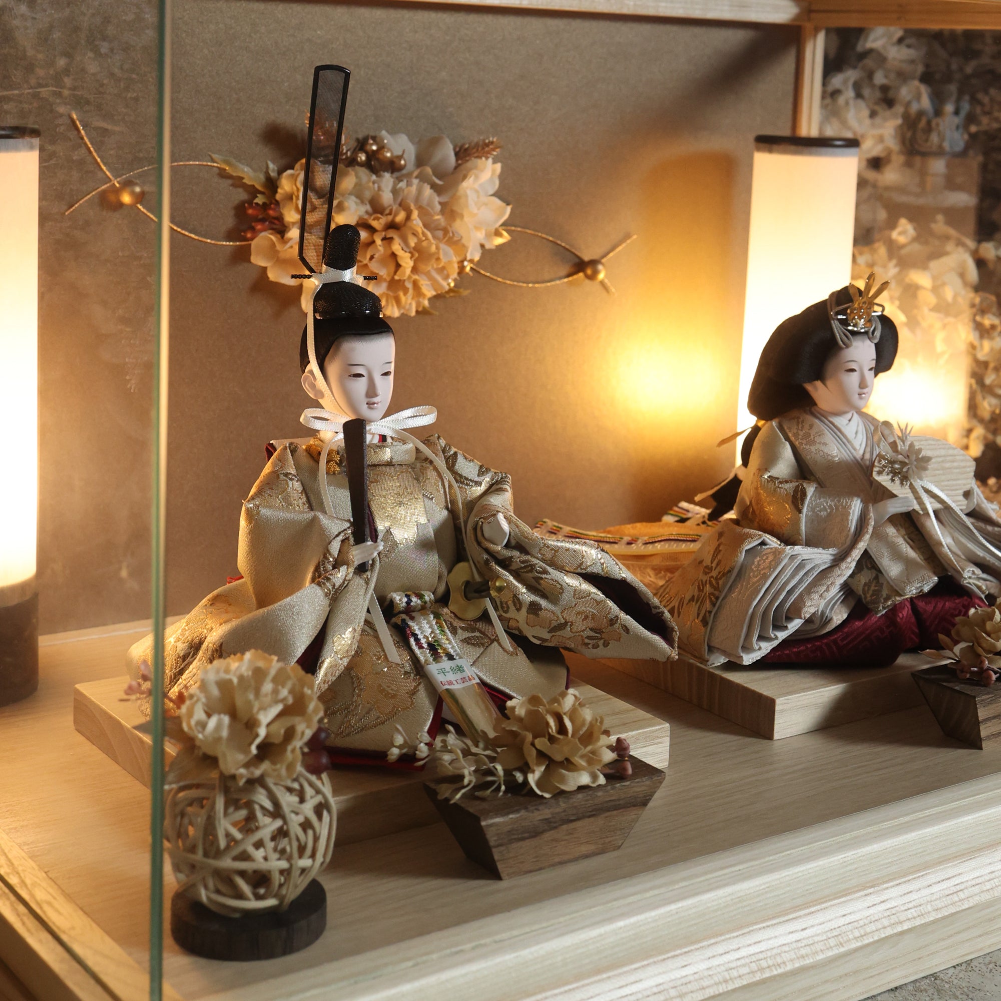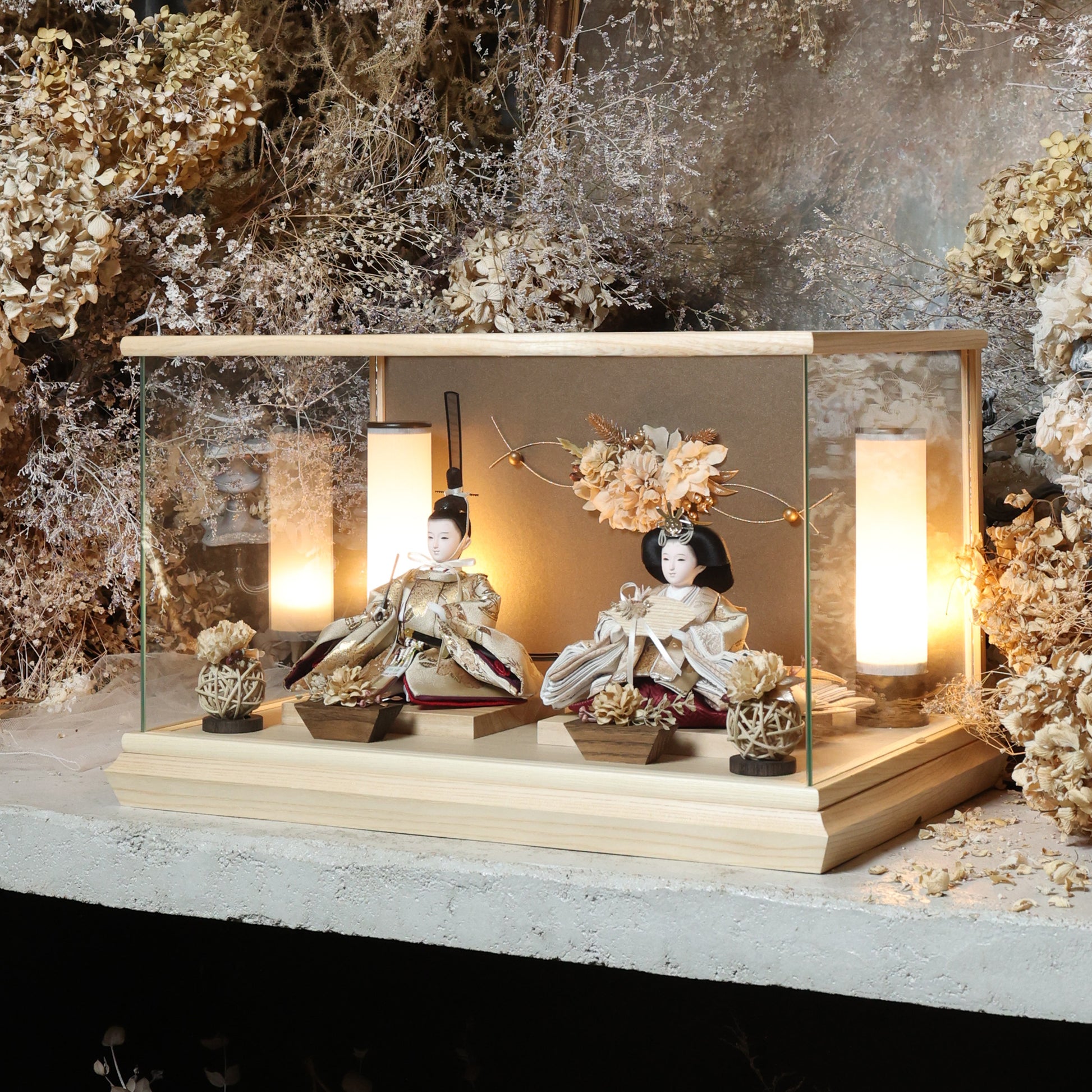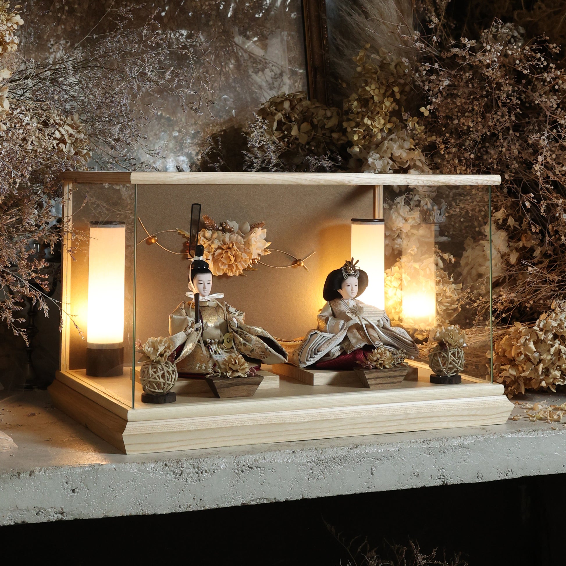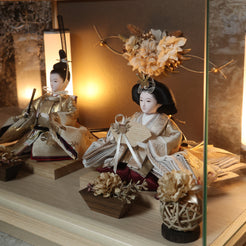 通常2mm厚が一般的な中、当店ではより高品質なAGC製3mmガラスを採用しています。厚みが増すことで強度と安全性が高まり、透明度の高いクリアな美しさを保ちます。大切な雛人形を守りながら、高級感のある見栄えを実現しています。