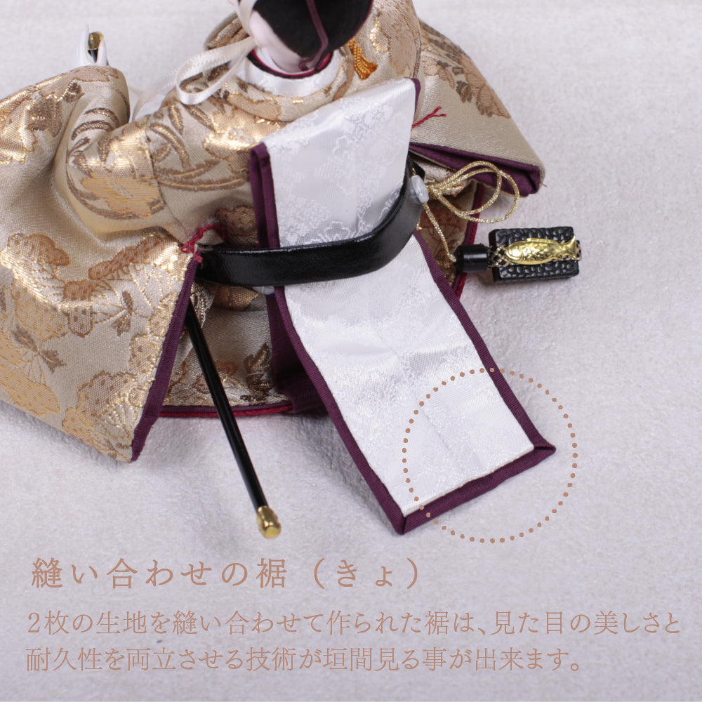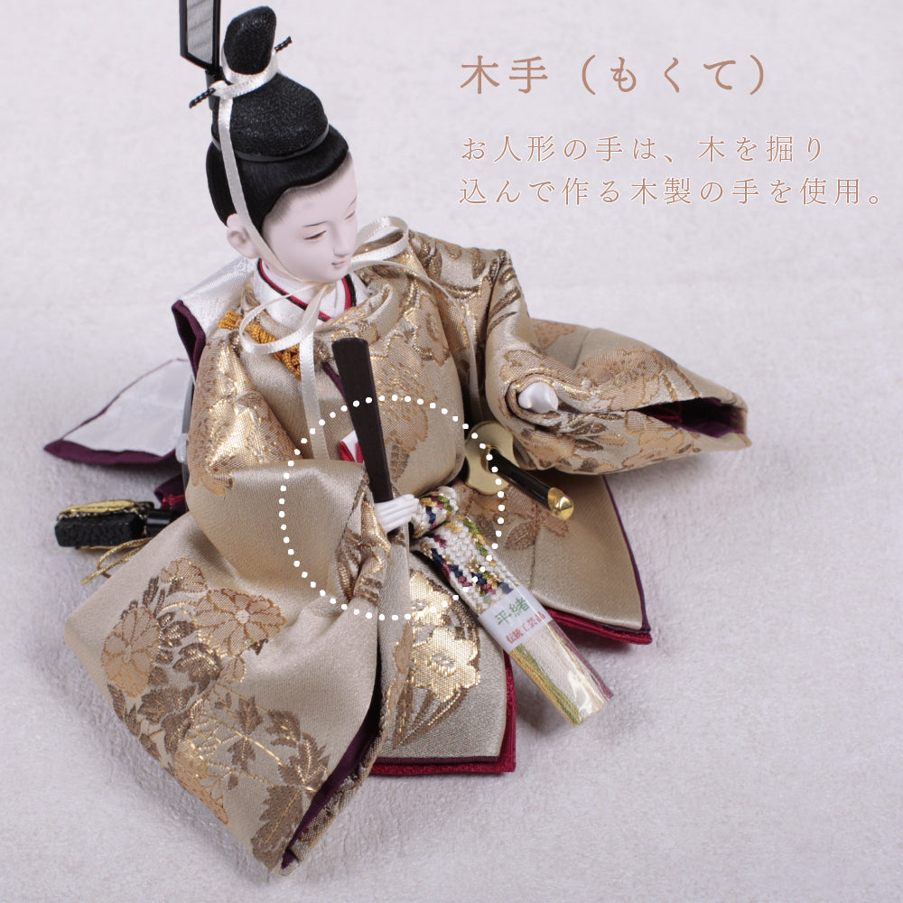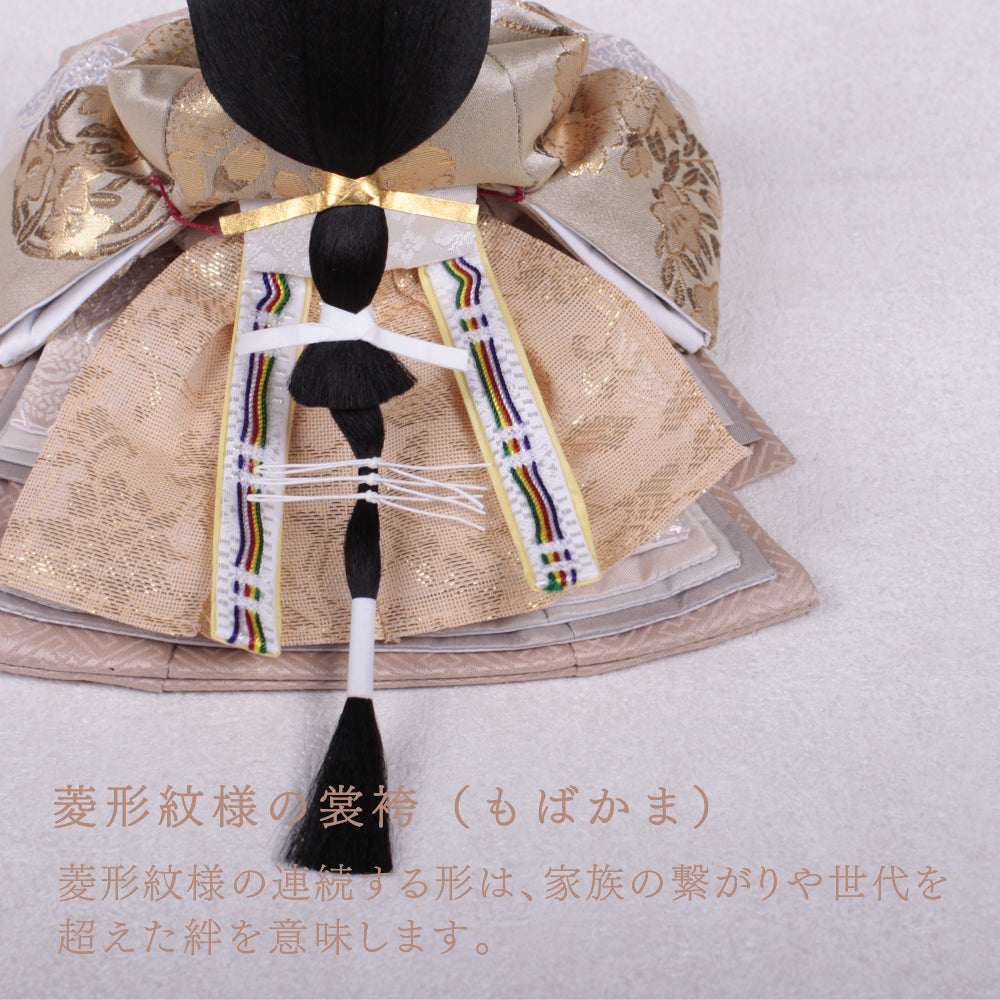 国産の栓(せん)は、美しい木目と温もりある質感が魅力の天然木です。耐久性に優れ、経年とともに味わいを深めます。台座や屏風などに使用することで、自然素材ならではの落ち着いた風合いと上質感を演出し、雛人形全体をより品格ある印象に仕上げます。