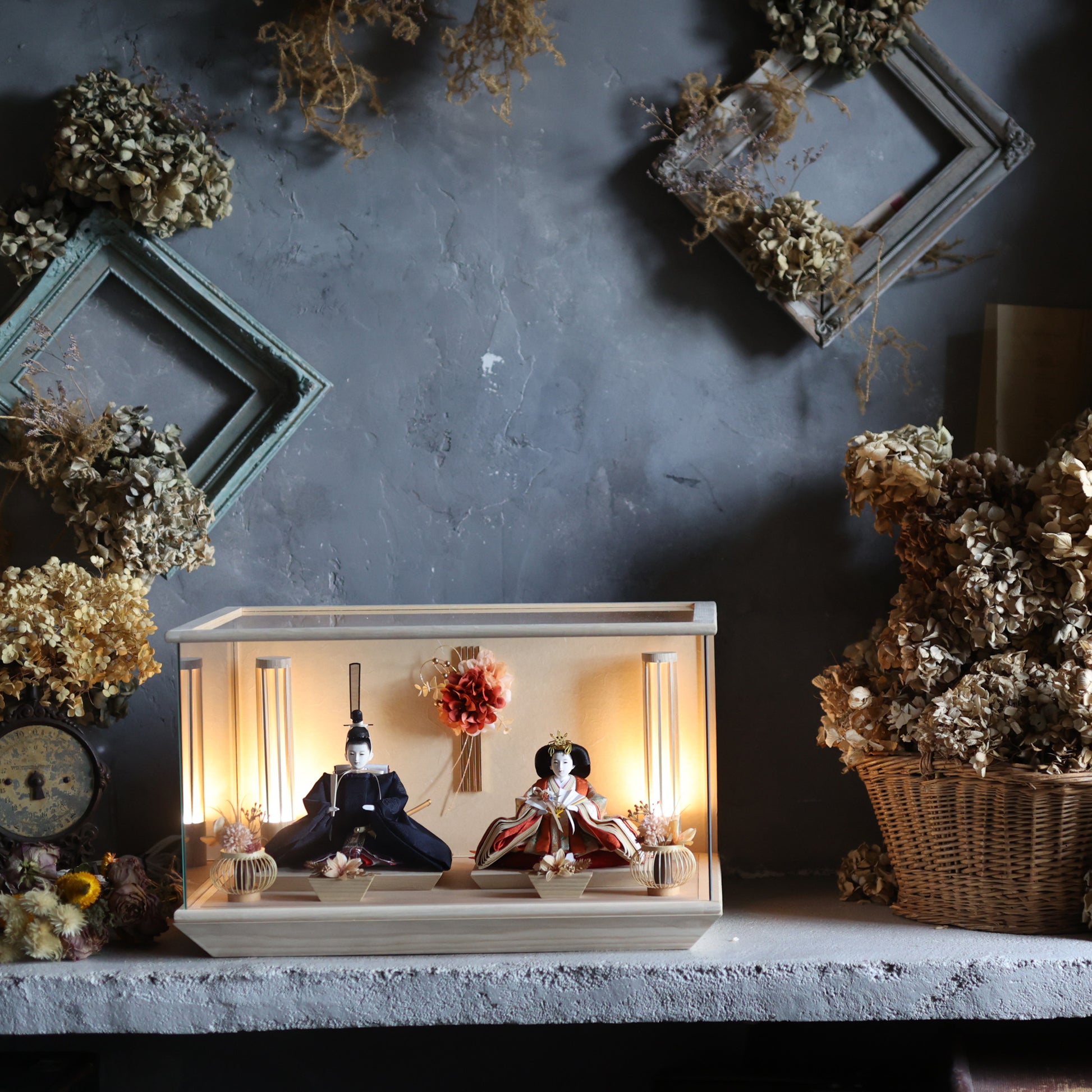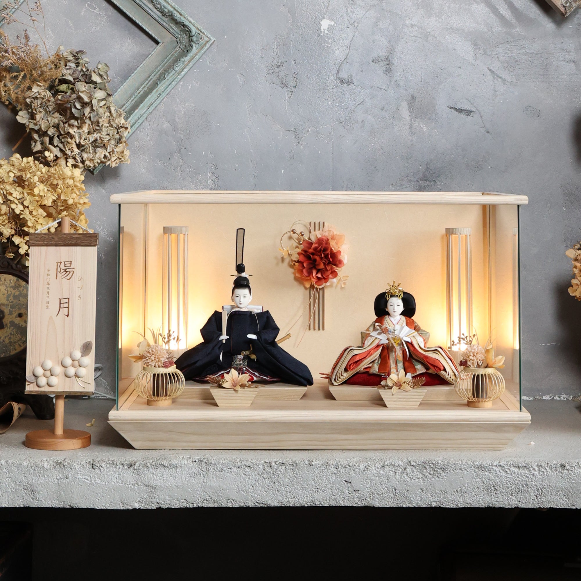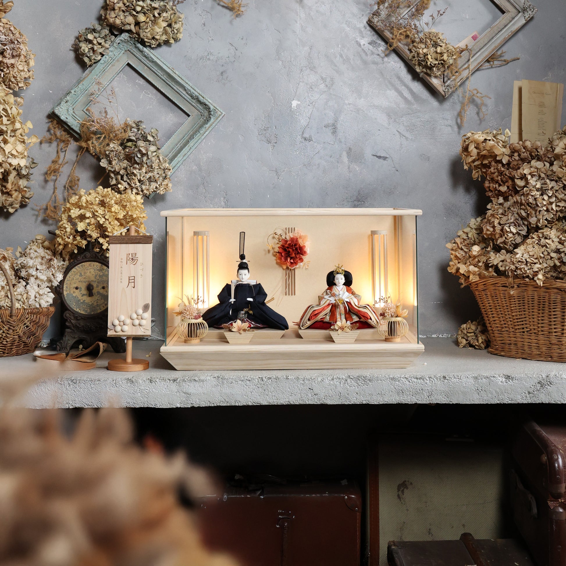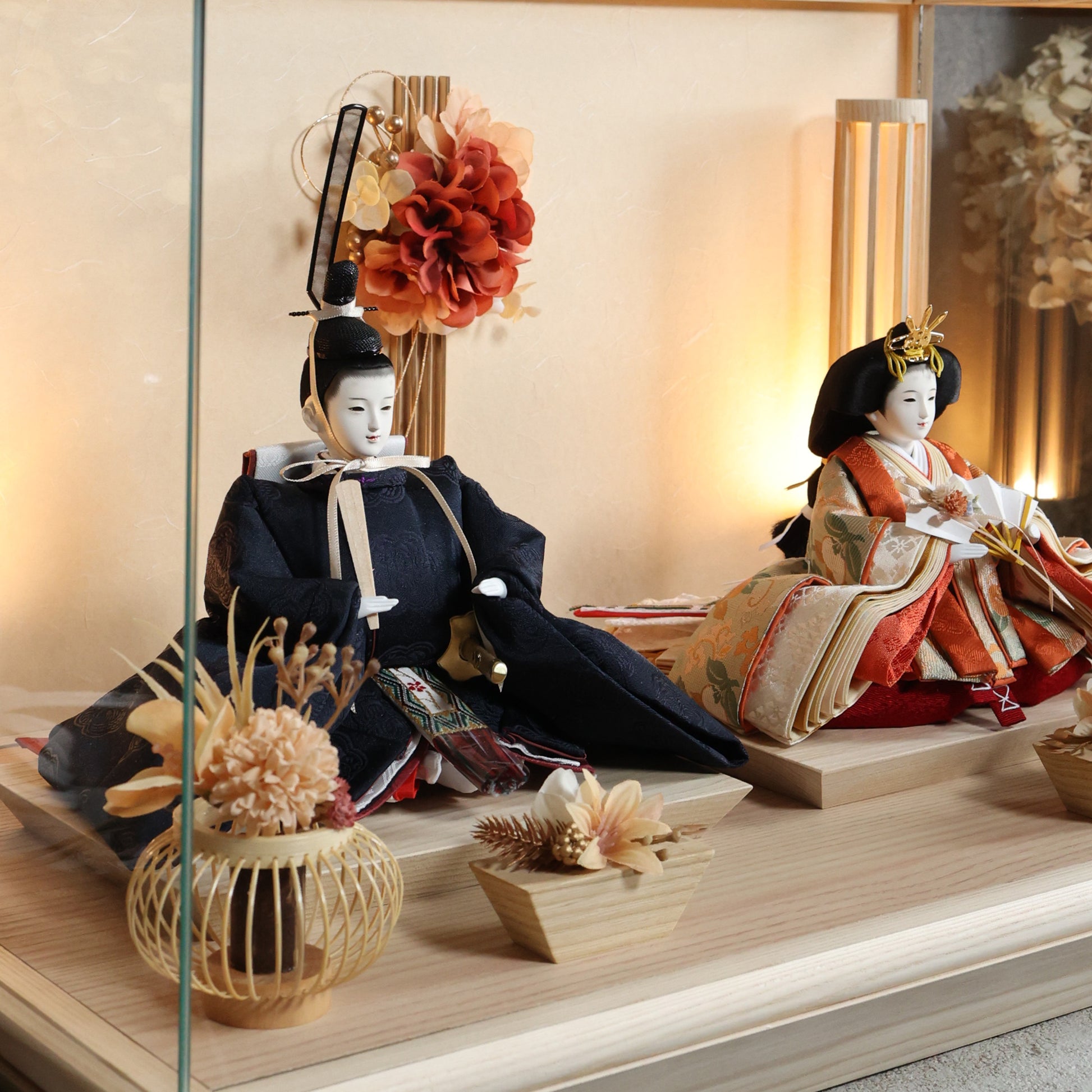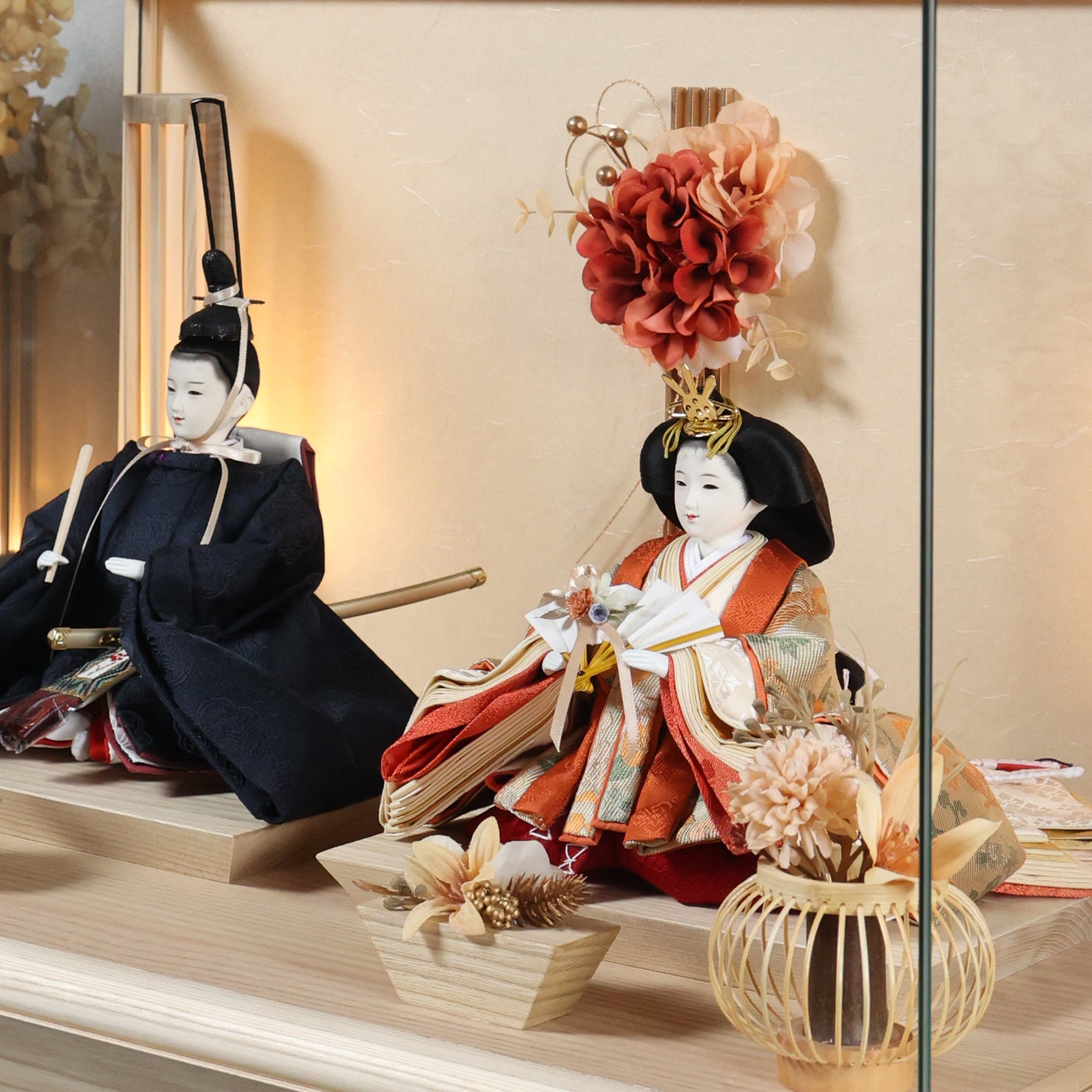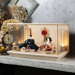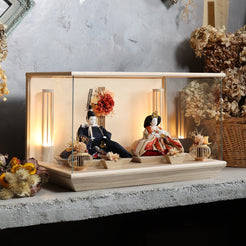 通常2mm厚が一般的な中、当店ではより高品質なAGC製3mmガラスを採用しています。厚みが増すことで強度と安全性が高まり、透明度の高いクリアな美しさを保ちます。大切な雛人形を守りながら、高級感のある見栄えを実現しています。