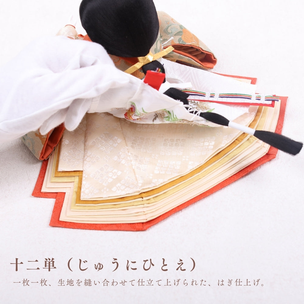 正絹は、100%絹から作られた生地で、「本絹」とも呼ばれます。蚕の繭を原料にし、複雑な工程を経て製造されます。絹糸を織って生地に仕上げることで、独特の光沢と滑らかな質感が生まれ、高級感のあるお人形が完成します。正絹は伝統的な工芸品に広く用いられ、その美しさが際立っています。