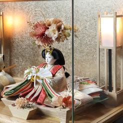 通常2mm厚が一般的な中、当店ではより高品質なAGC製3mmガラスを採用しています。厚みが増すことで強度と安全性が高まり、透明度の高いクリアな美しさを保ちます。大切な雛人形を守りながら、高級感のある見栄えを実現しています。