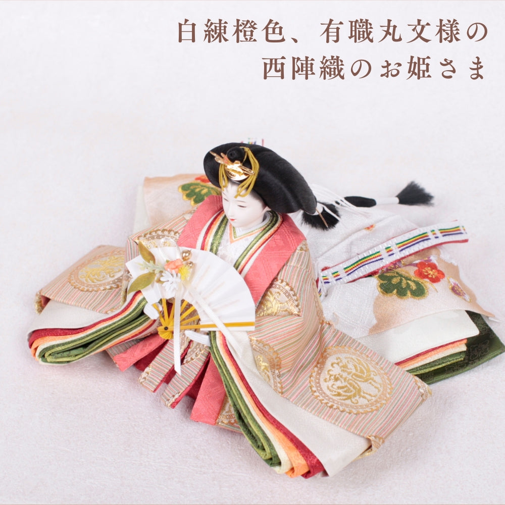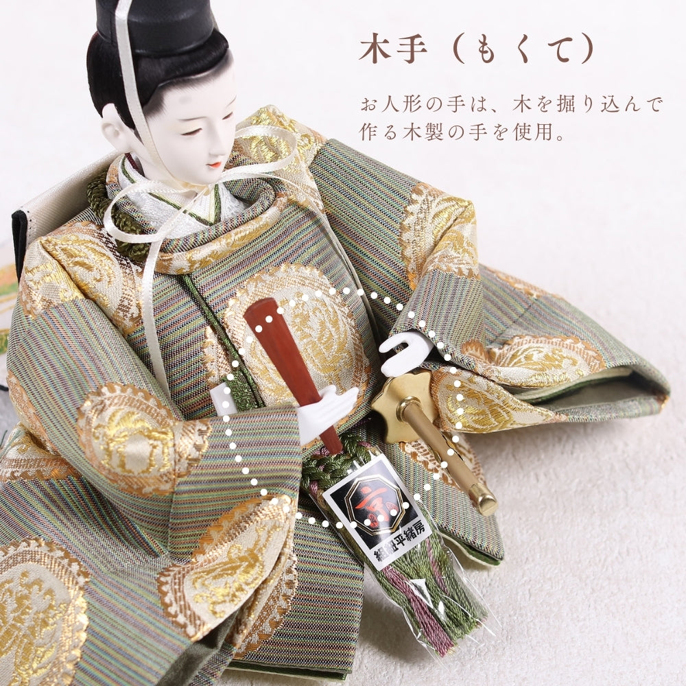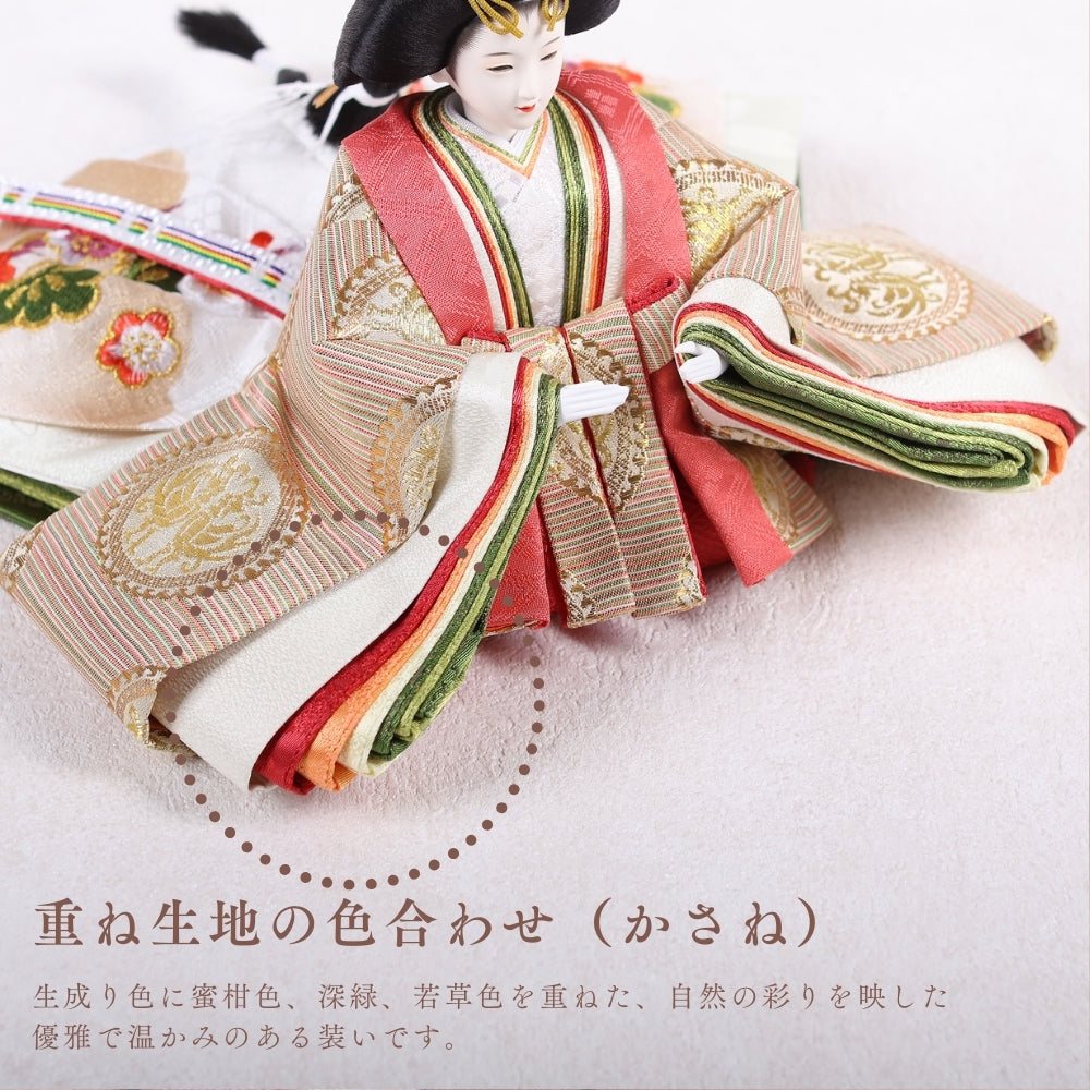 国産の栓(せん)は、美しい木目と温もりある質感が魅力の天然木です。耐久性に優れ、経年とともに味わいを深めます。台座や屏風などに使用することで、自然素材ならではの落ち着いた風合いと上質感を演出し、雛人形全体をより品格ある印象に仕上げます。