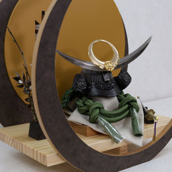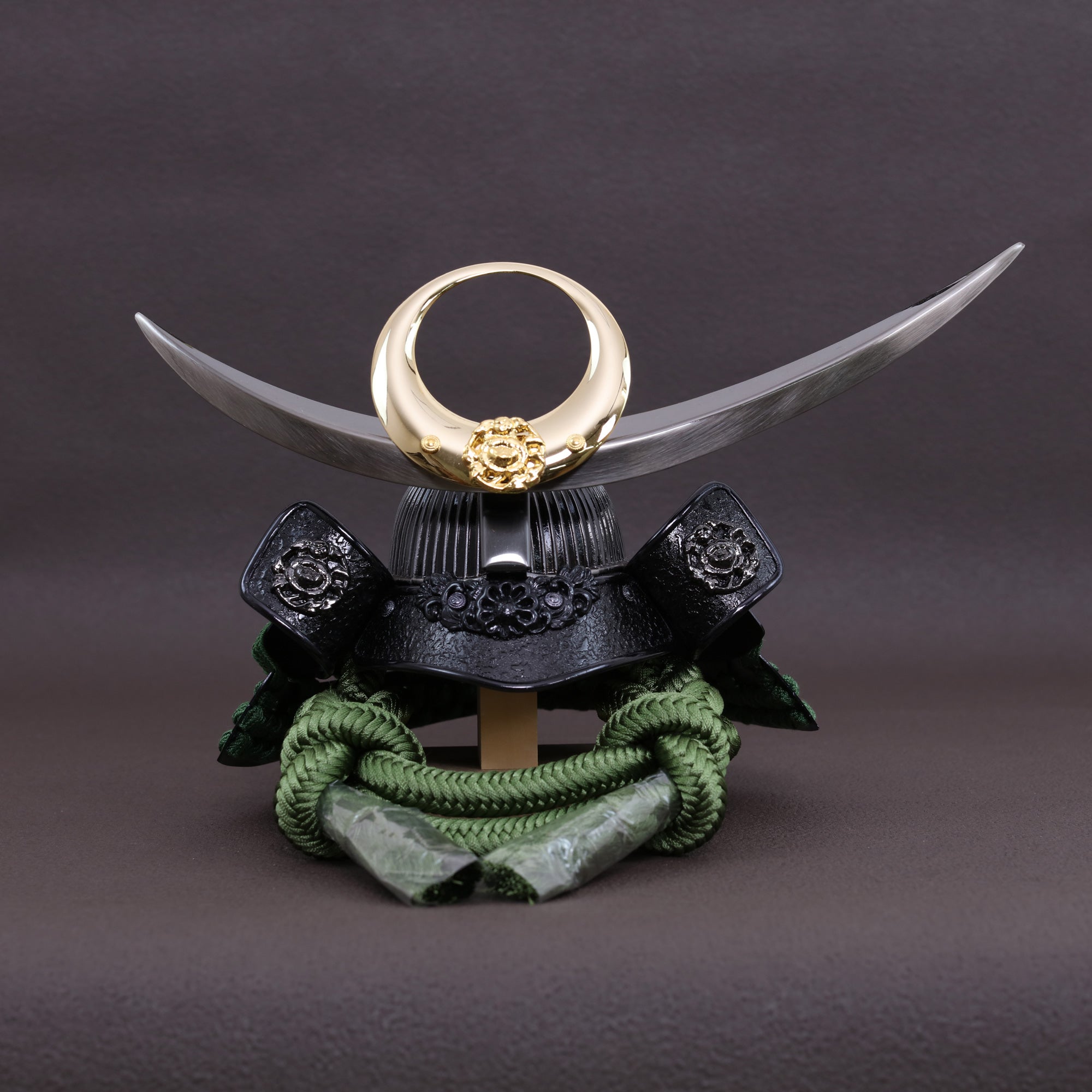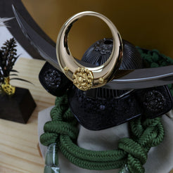 兜のこだわり 上杉謙信の三日月鍬形、凛と輝く。 上杉謙信の兜を象徴する「三日月の鍬形」を、伸びやかな曲線で美しく表現しました。光を受けてやわらかく輝くゴールドが、兜全体に上品な華やぎと気高さを添えます。力強さの中に静けさを宿す、飾っ...