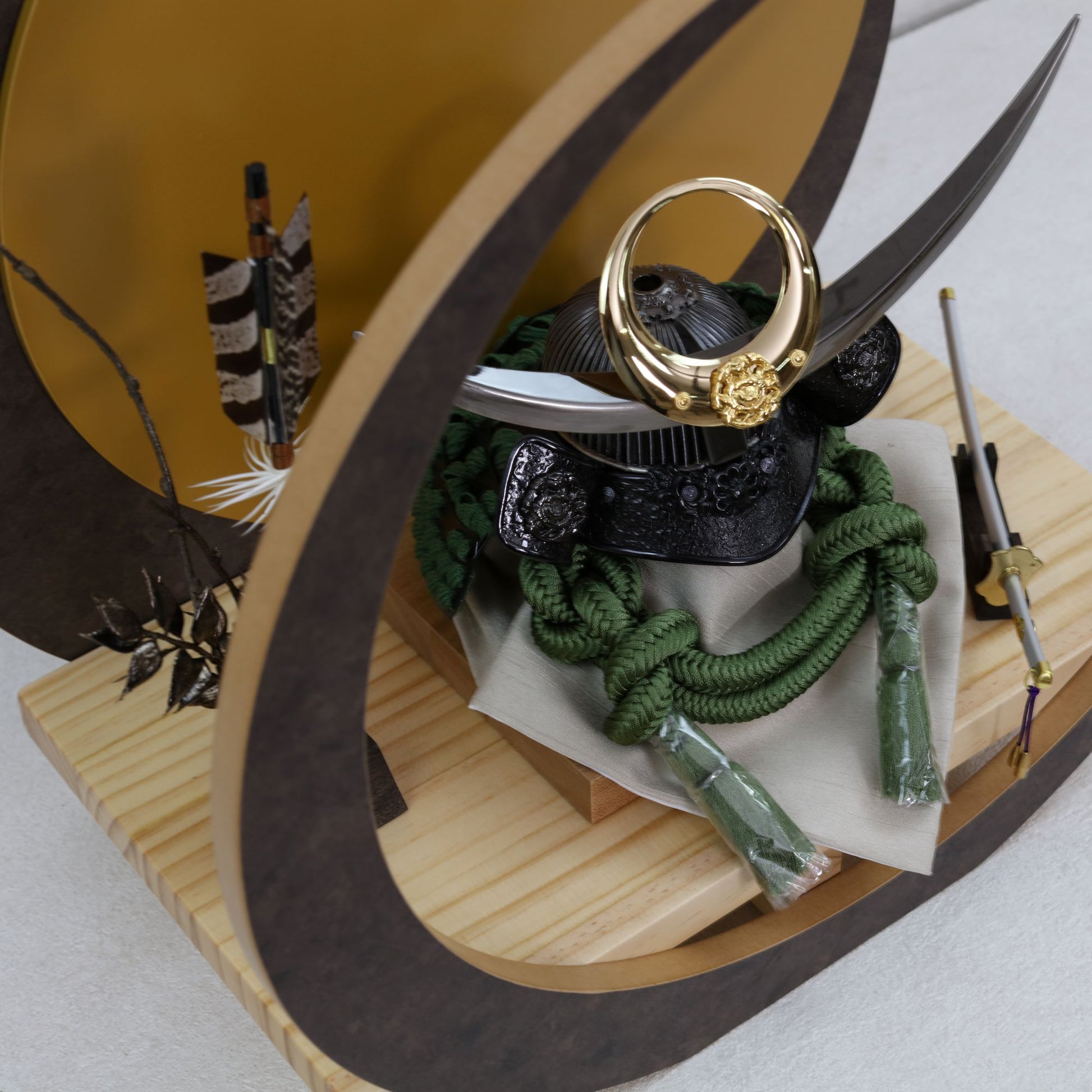 光を受けてやわらかく輝くゴールドが、兜全体に上品な華やぎと気高さを添えます。