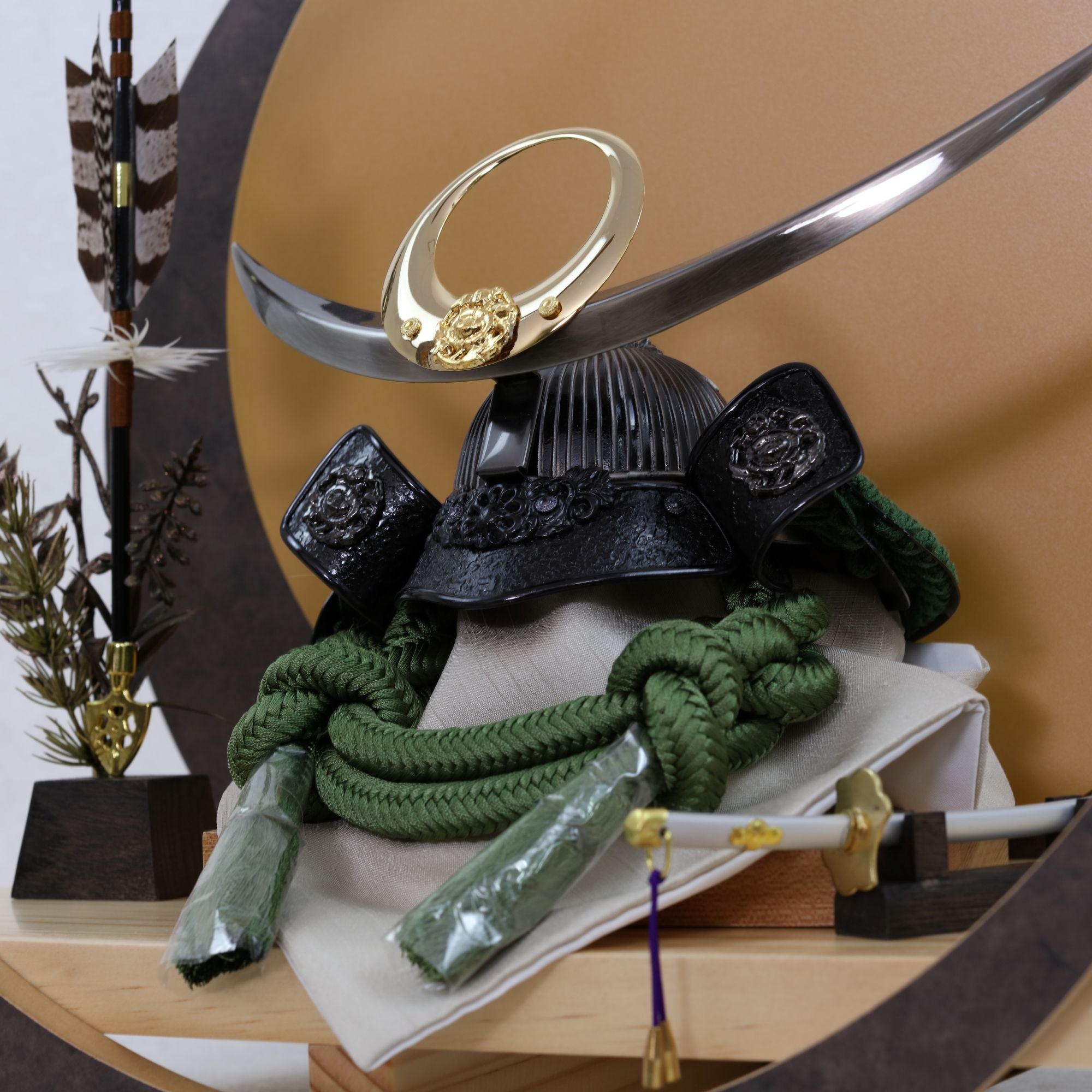 重くなりすぎない緑の差し色が、兜全体に上品な抜け感をプラス。