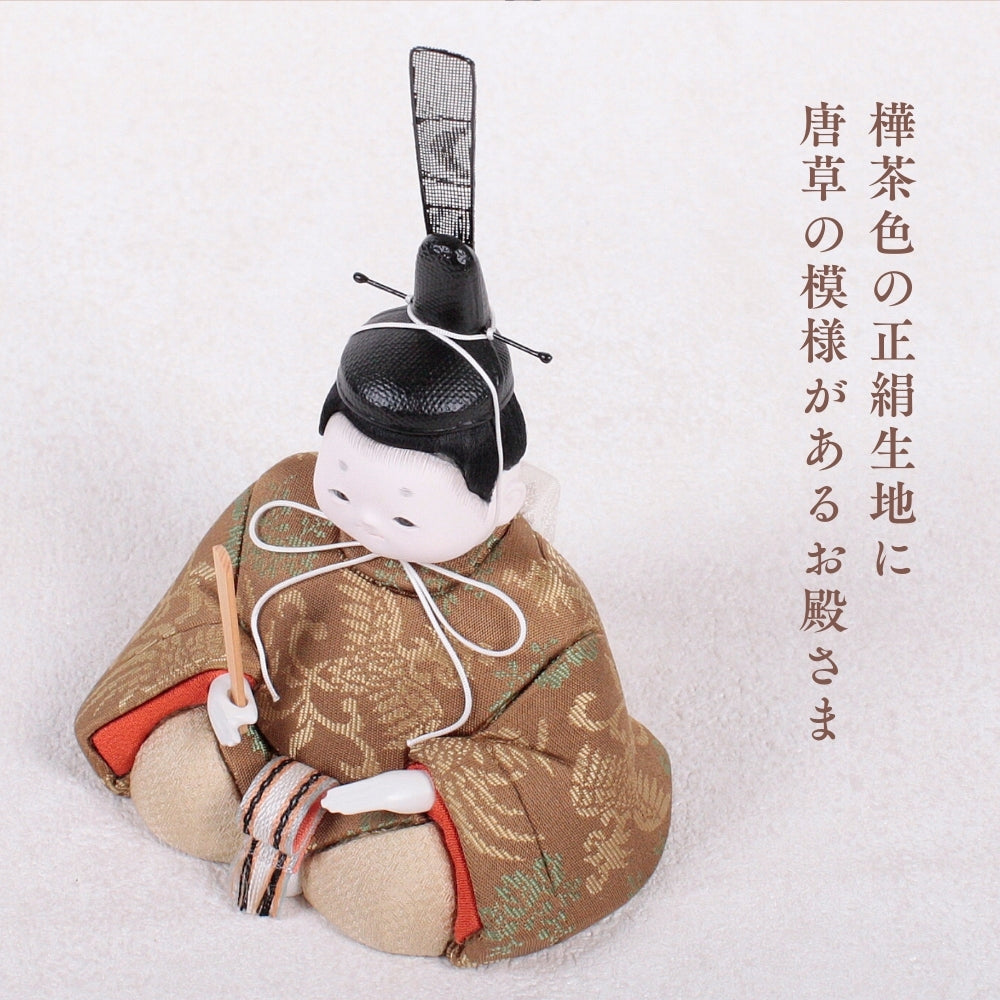 樺茶色の正絹生地に唐草模様が描かれたお殿さまです。温かみのある色合いが子どもたちの健やかな成長を願います