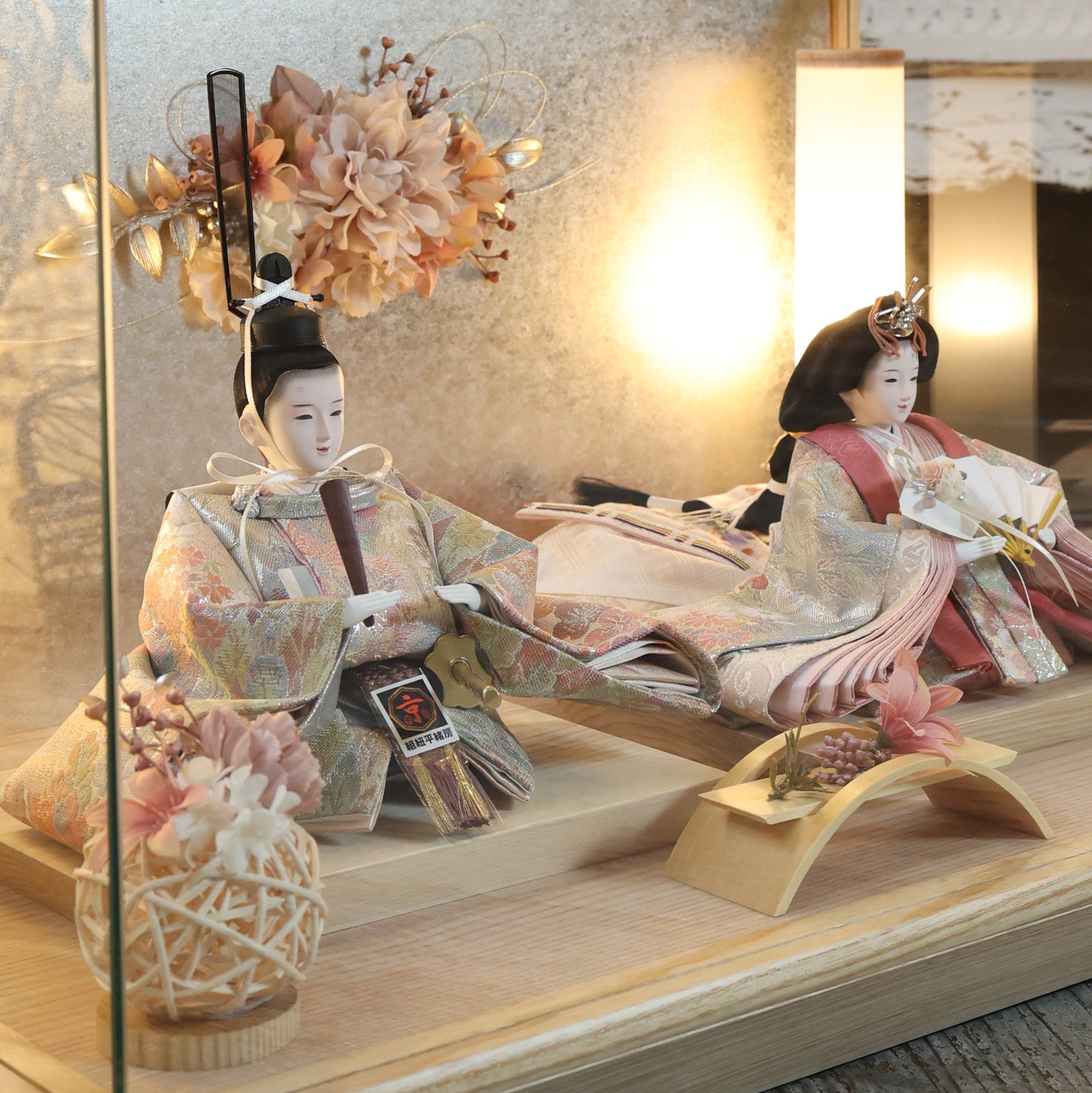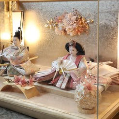 通常2mm厚が一般的な中、当店ではより高品質なAGC製3mmガラスを採用しています。厚みが増すことで強度と安全性が高まり、透明度の高いクリアな美しさを保ちます。大切な雛人形を守りながら、高級感のある見栄えを実現しています。