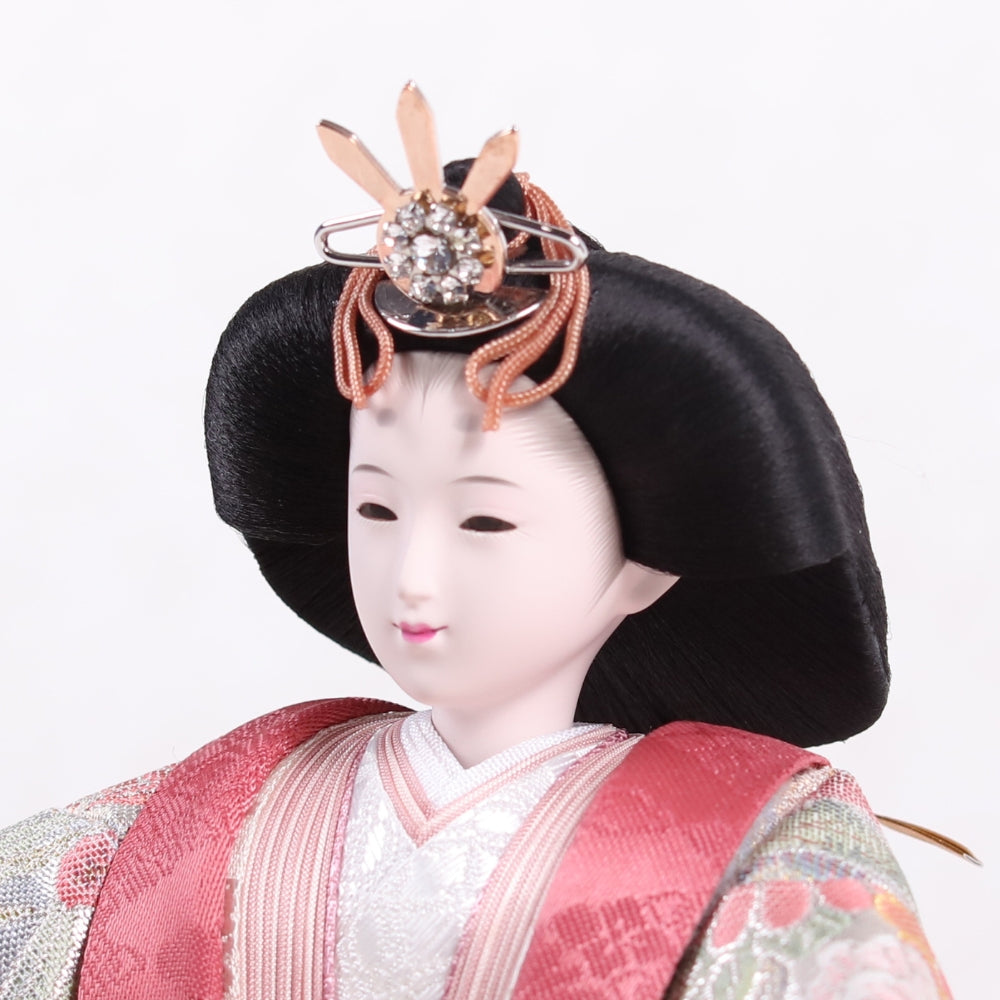 熊倉基安の作品「sakura」は、優しいピンクの化粧が愛らしさを引き立て、純粋な美しさで心を和ませてくれます。「お人形は顔がいのち」という言葉にふさわしく、匠の技術と感性が余すことなく注がれた一品です。伝統の尊さを大切にしつつも、新しい美の追求を怠らないその姿勢が、作品のさらなる魅力を引き立てています。