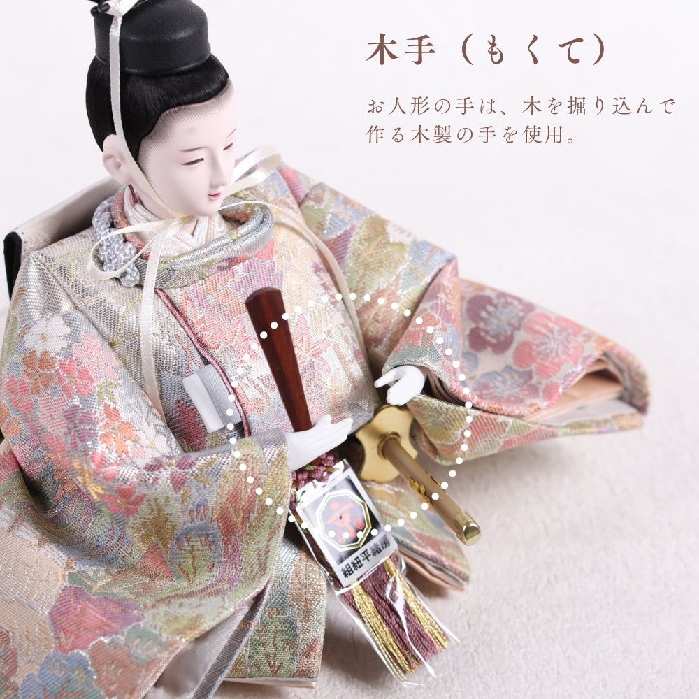 国産の栓(せん)は、美しい木目と温もりある質感が魅力の天然木です。耐久性に優れ、経年とともに味わいを深めます。台座や屏風などに使用することで、自然素材ならではの落ち着いた風合いと上質感を演出し、雛人形全体をより品格ある印象に仕上げます。
