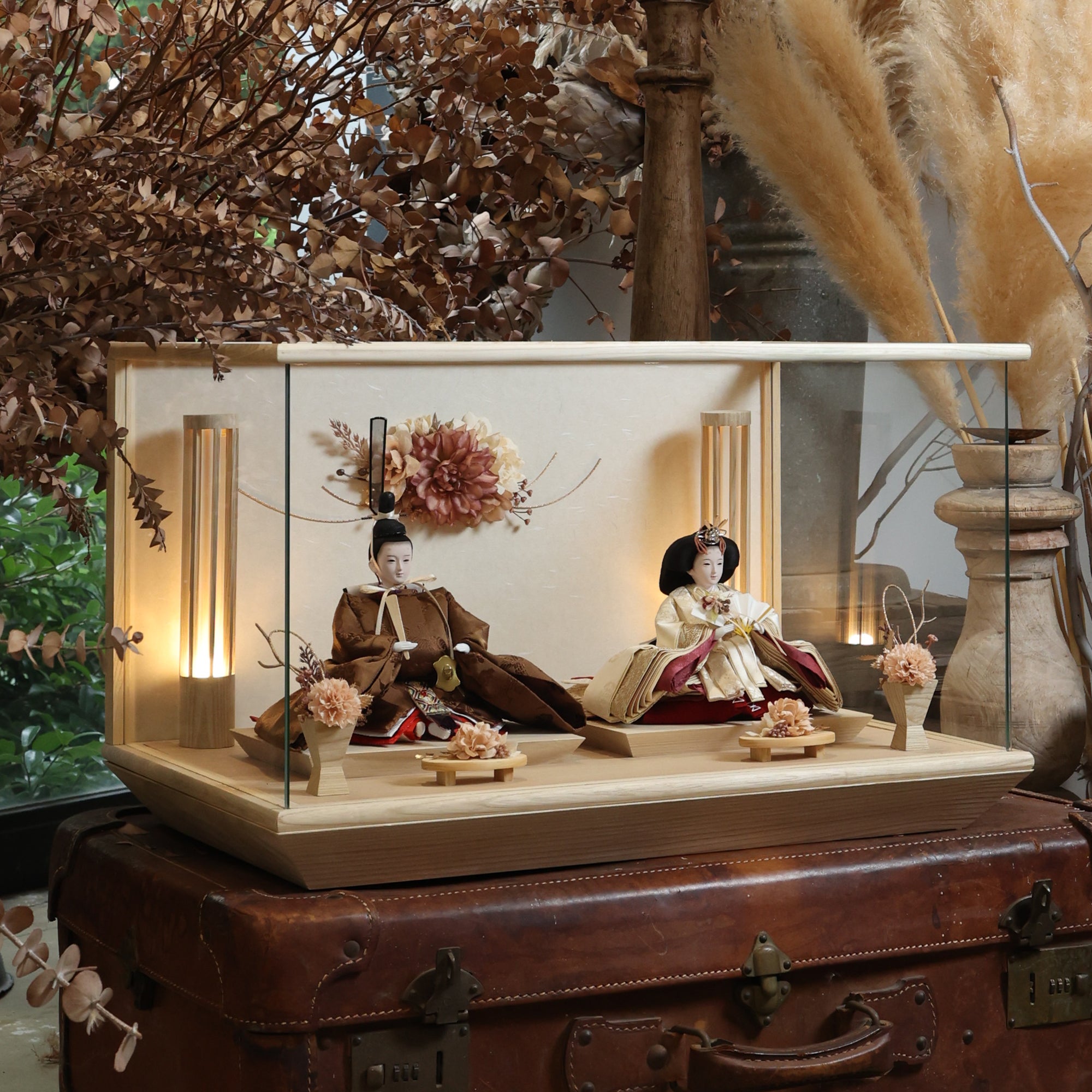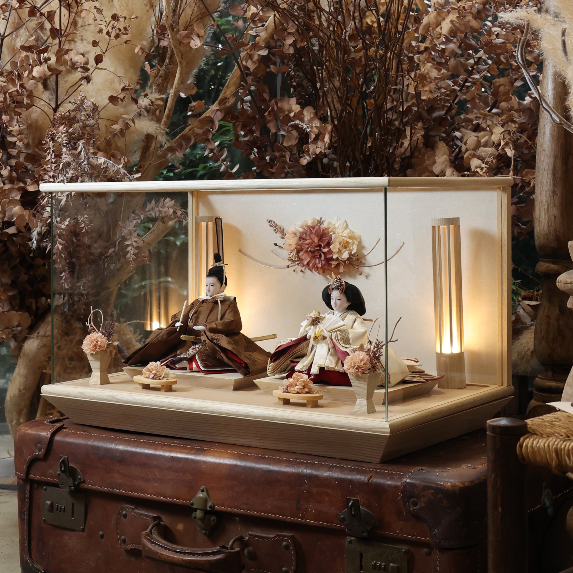 通常2mm厚が一般的な中、当店ではより高品質なAGC製3mmガラスを採用しています。厚みが増すことで強度と安全性が高まり、透明度の高いクリアな美しさを保ちます。大切な雛人形を守りながら、高級感のある見栄えを実現しています。