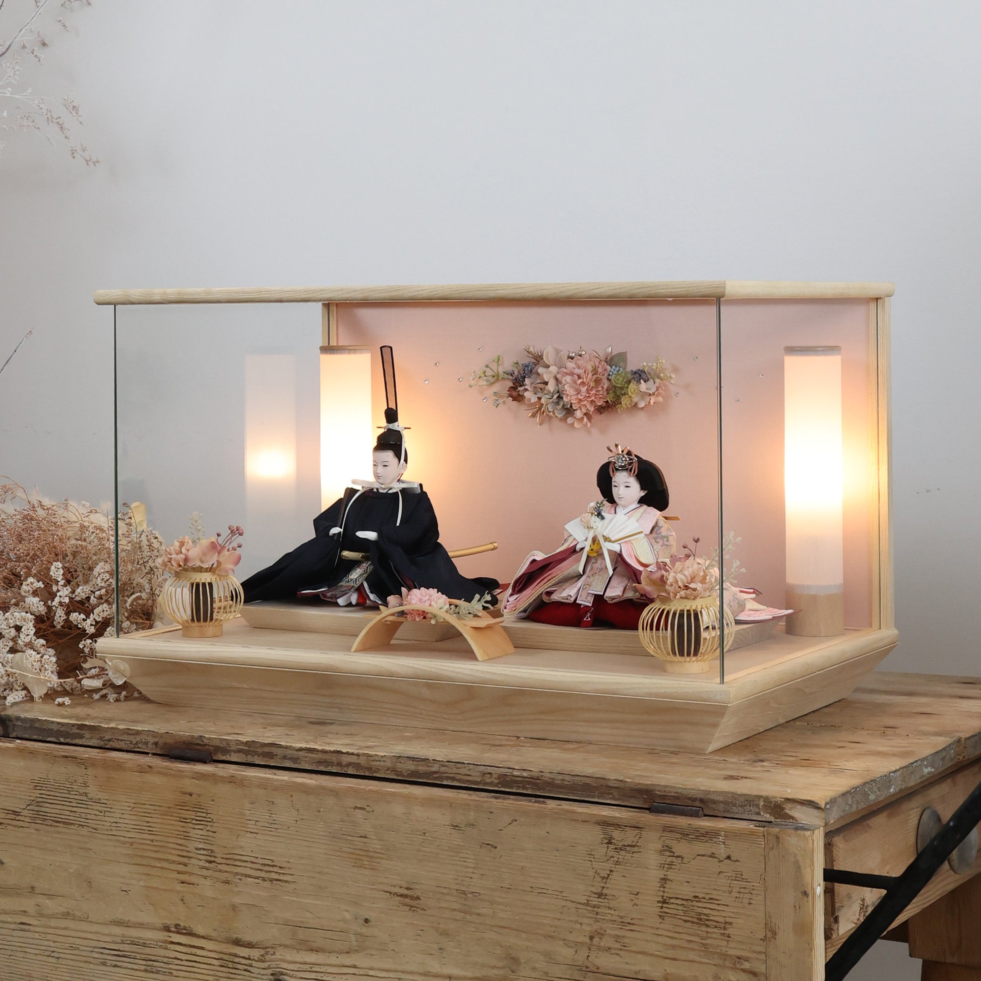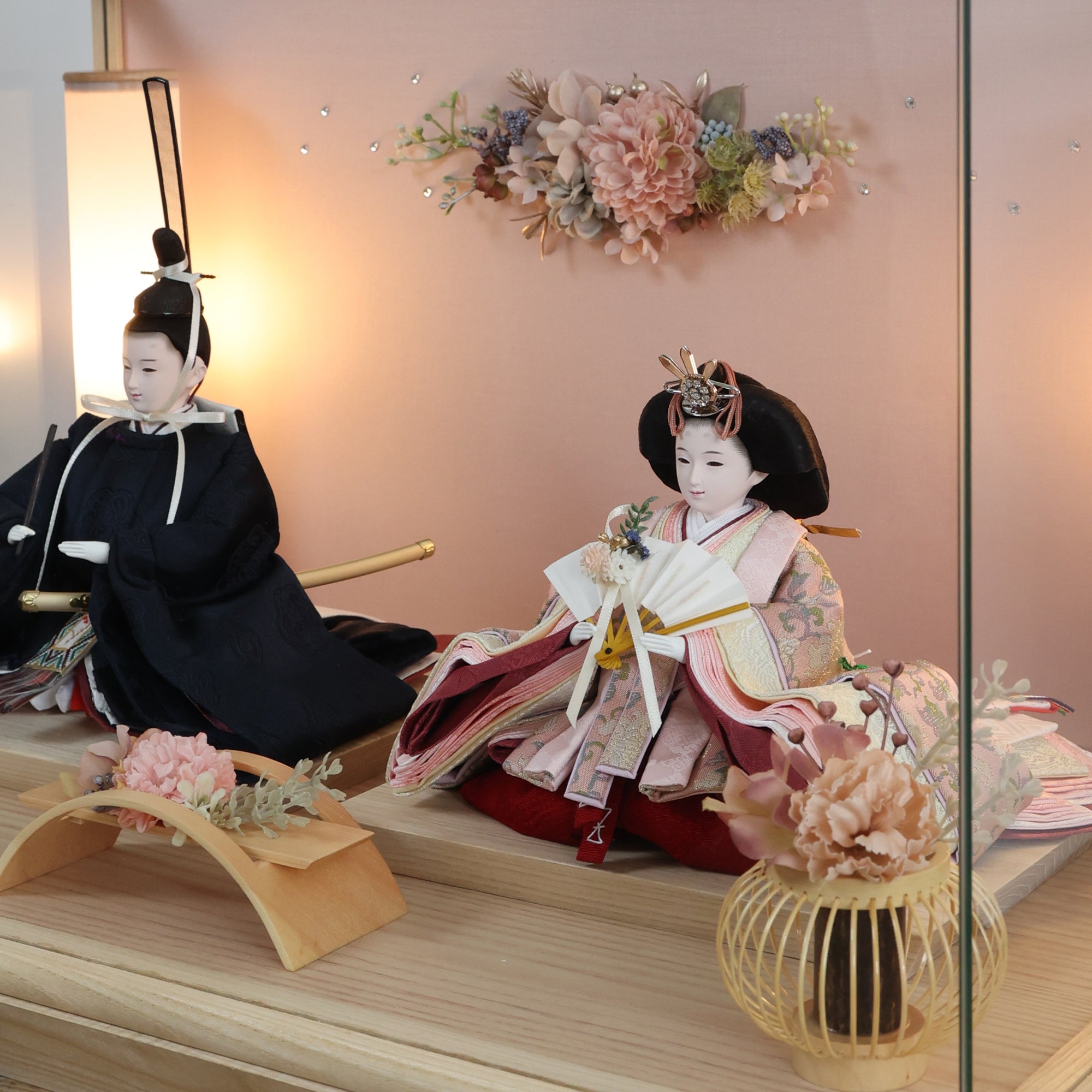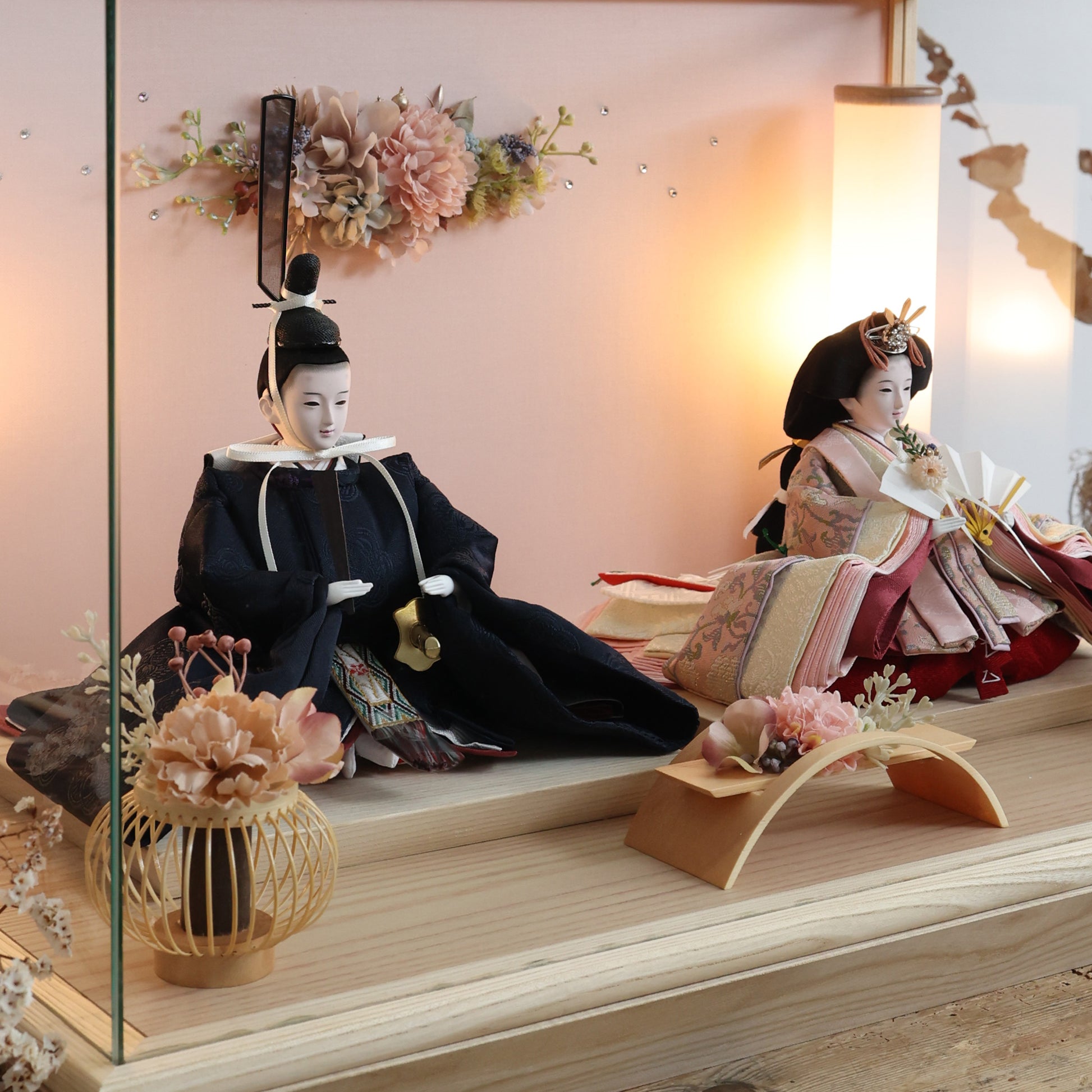 通常2mm厚が一般的な中、当店ではより高品質なAGC製3mmガラスを採用しています。厚みが増すことで強度と安全性が高まり、透明度の高いクリアな美しさを保ちます。大切な雛人形を守りながら、高級感のある見栄えを実現しています。