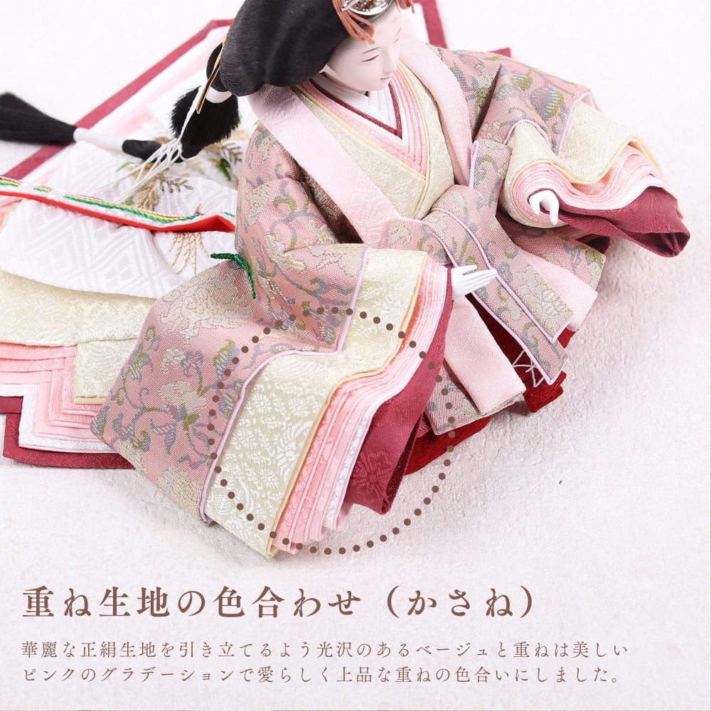 正絹は、100%絹から作られた生地で、「本絹」とも呼ばれます。蚕の繭を原料にし、複雑な工程を経て製造されます。絹糸を織って生地に仕上げることで、独特の光沢と滑らかな質感が生まれ、高級感のあるお人形が完成します。正絹は伝統的な工芸品に広く用いられ、その美しさが際立っています。