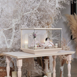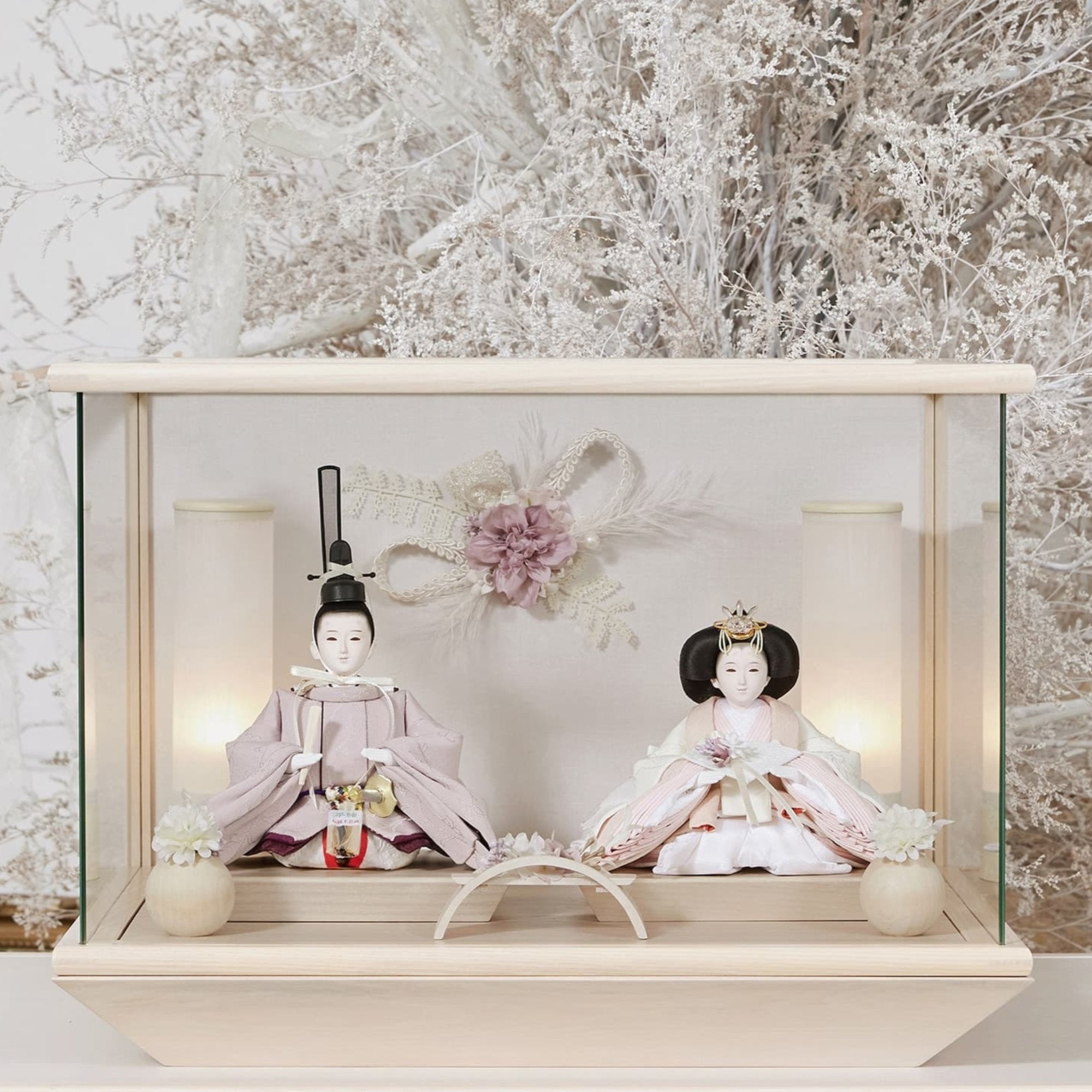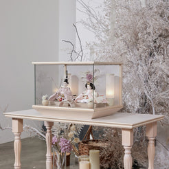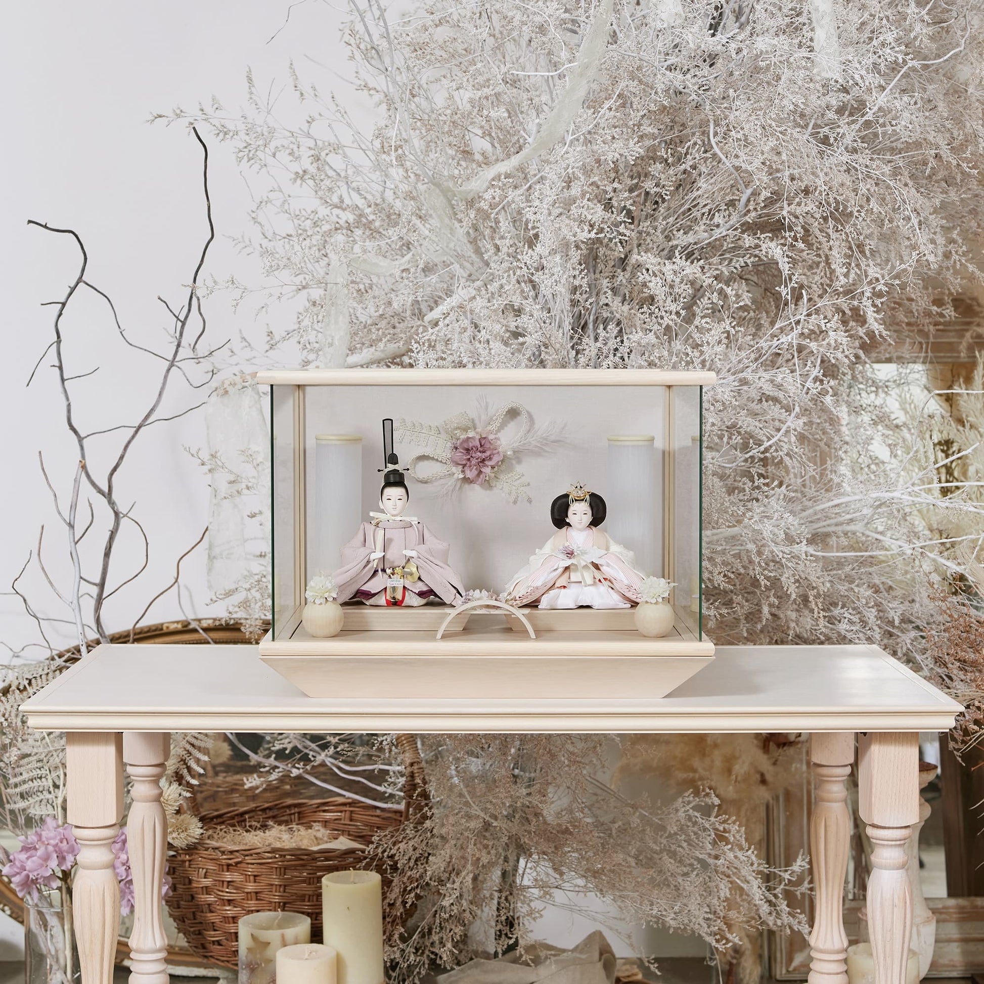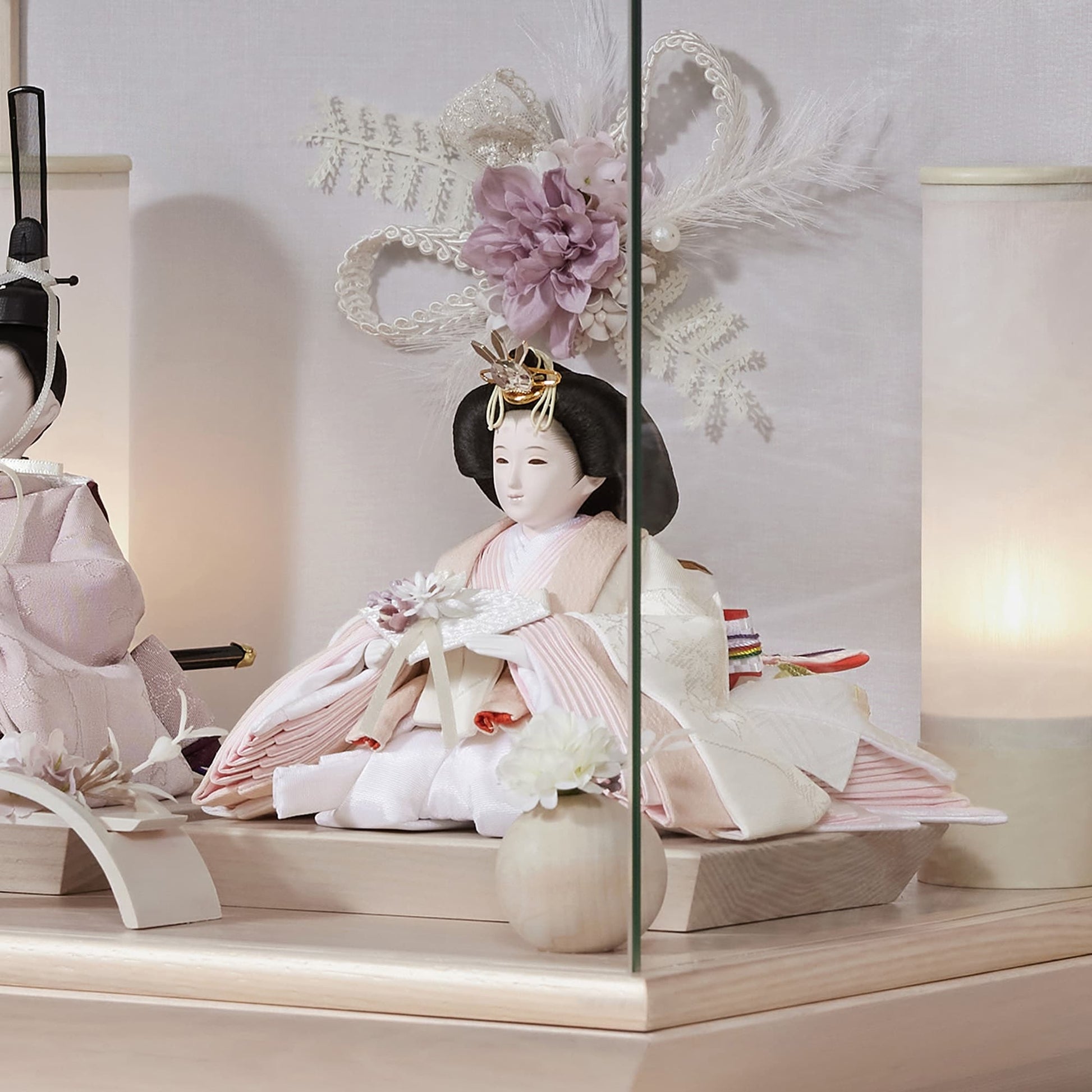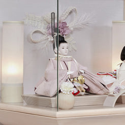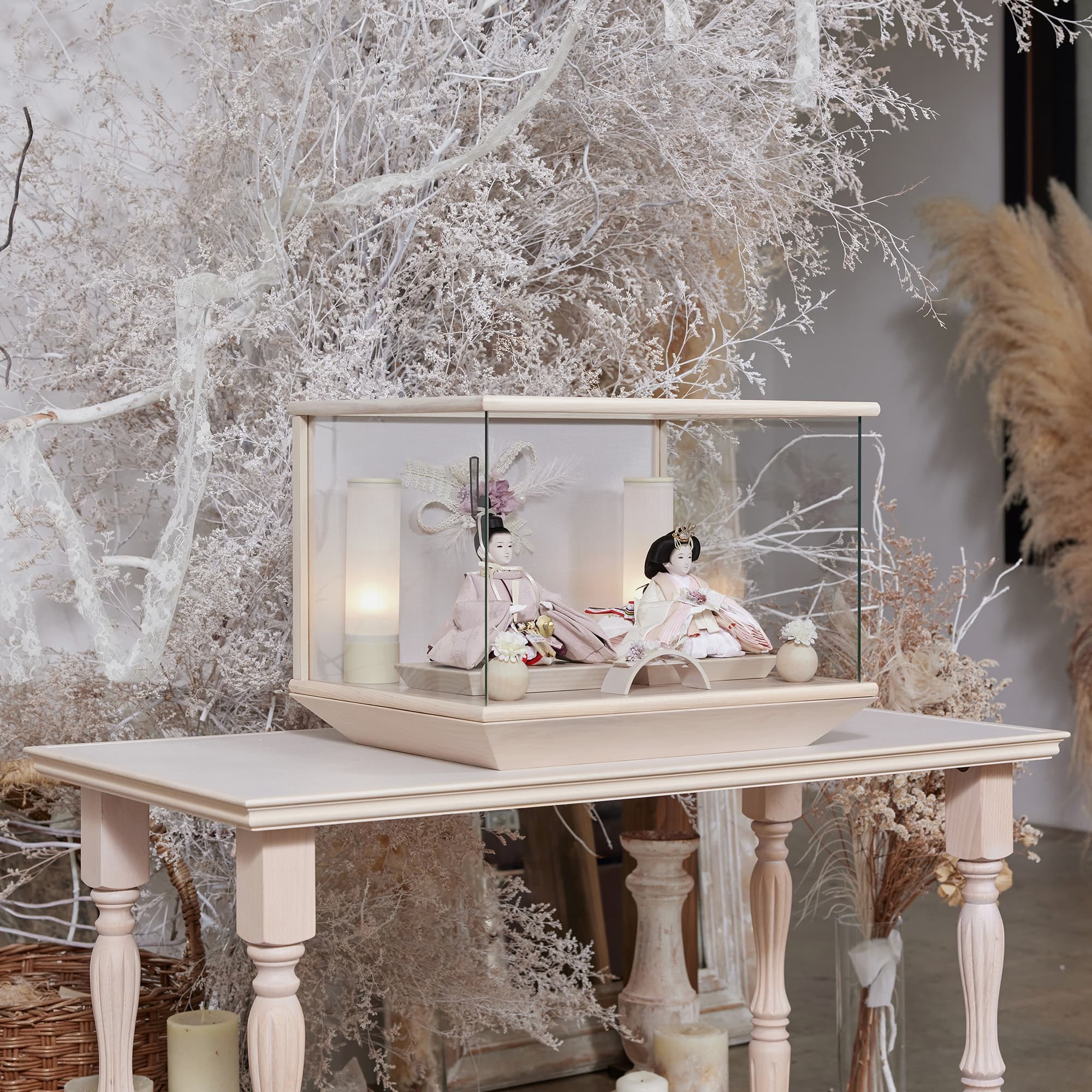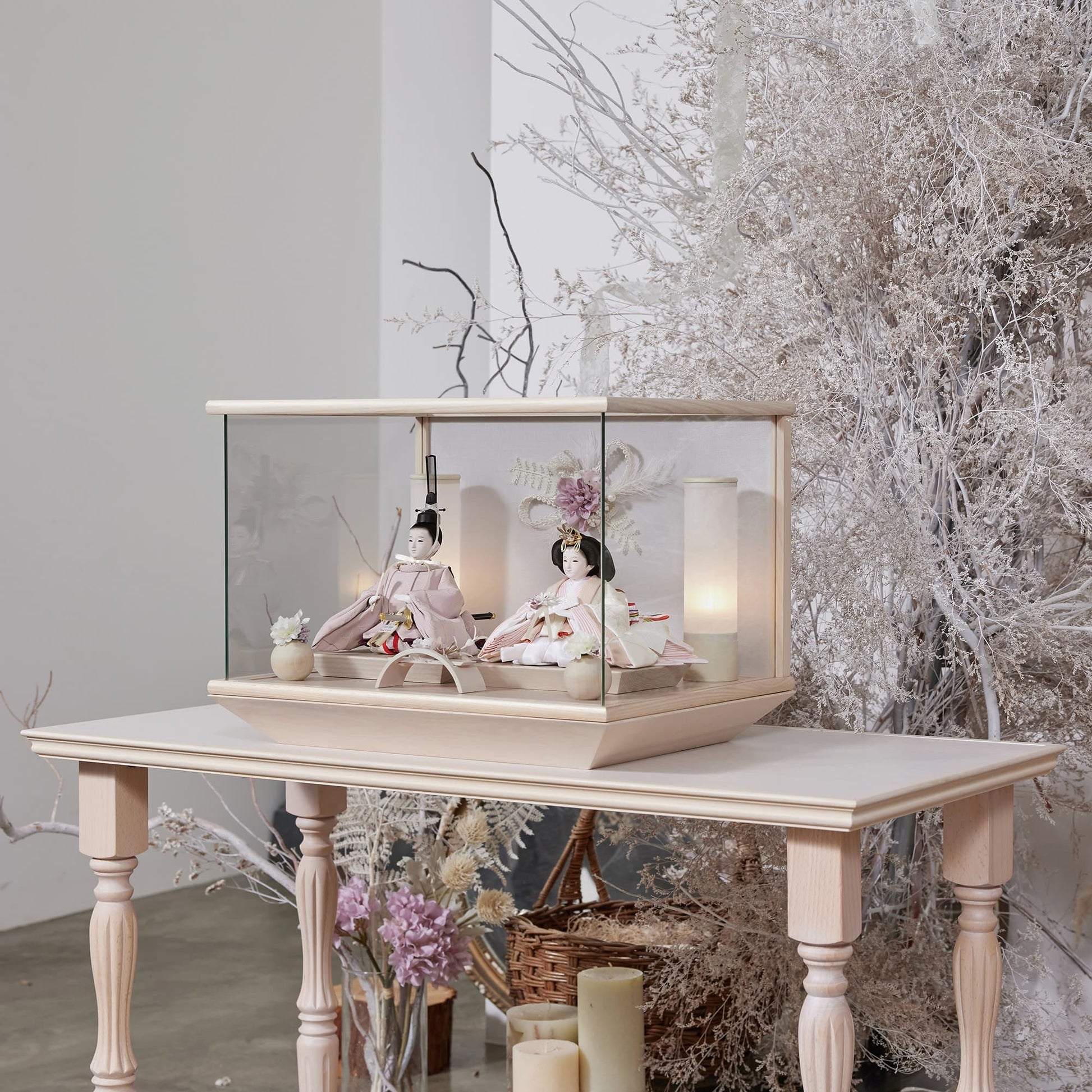 通常2mm厚が一般的な中、当店ではより高品質なAGC製3mmガラスを採用しています。厚みが増すことで強度と安全性が高まり、透明度の高いクリアな美しさを保ちます。大切な雛人形を守りながら、高級感のある見栄えを実現しています。