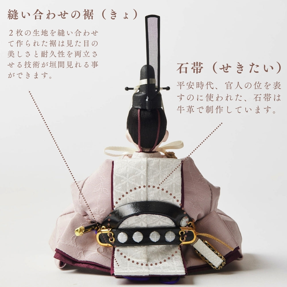国産の栓(せん)は、美しい木目と温もりある質感が魅力の天然木です。耐久性に優れ、経年とともに味わいを深めます。台座や屏風などに使用することで、自然素材ならではの落ち着いた風合いと上質感を演出し、雛人形全体をより品格ある印象に仕上げます。