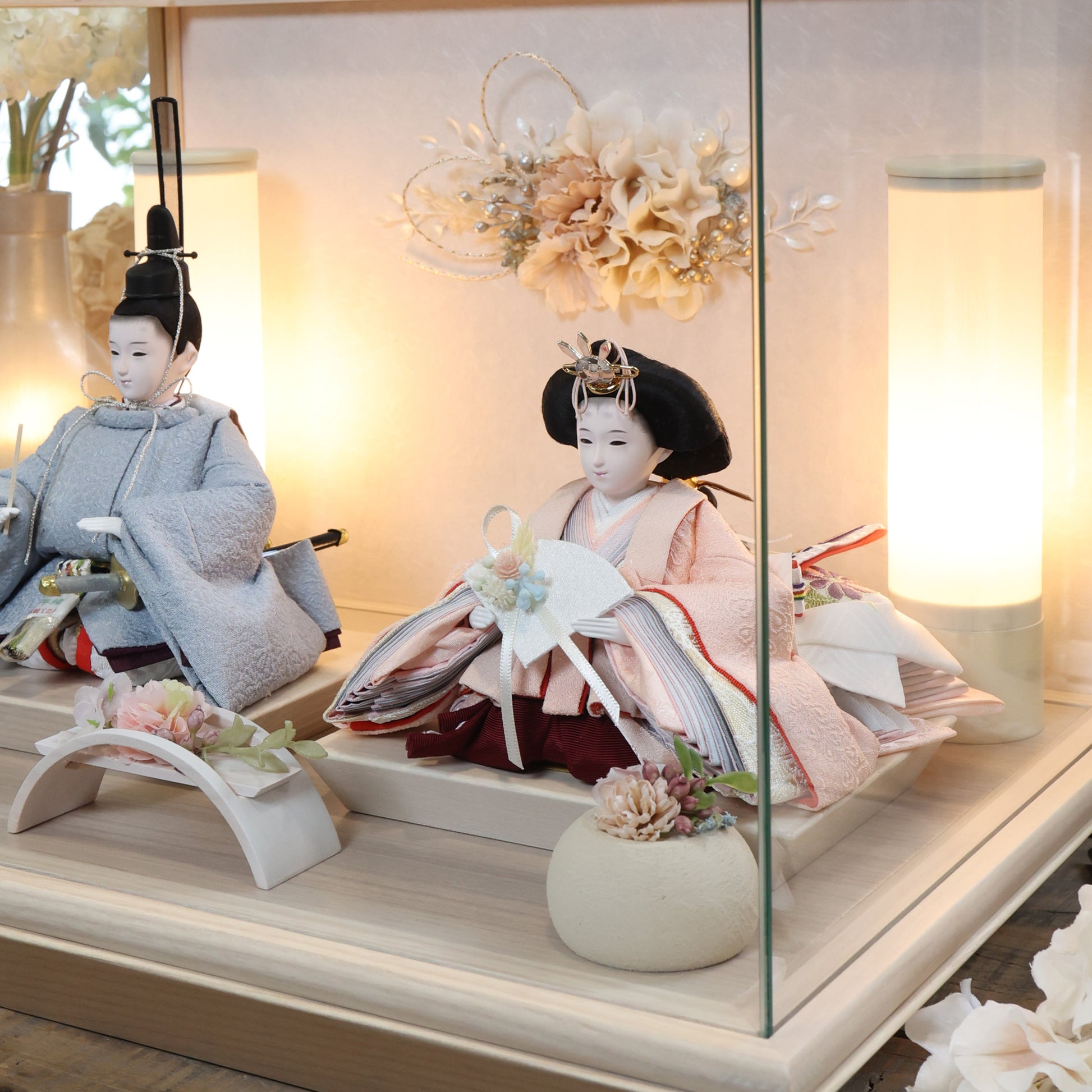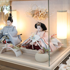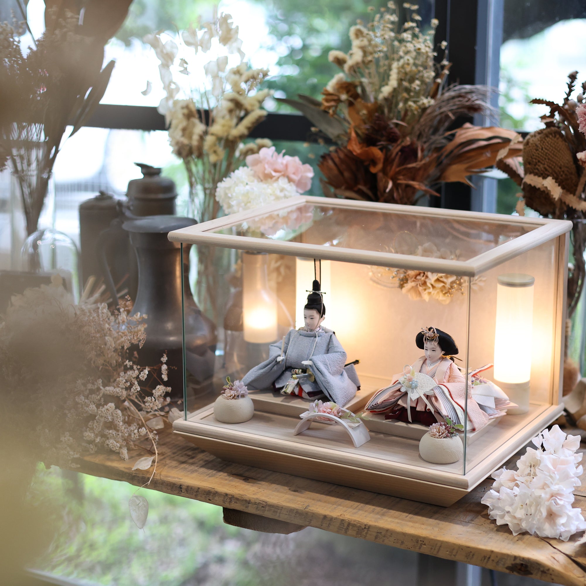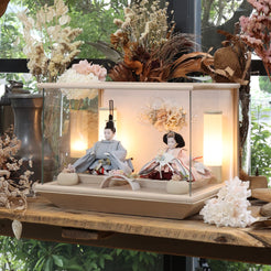 通常2mm厚が一般的な中、当店ではより高品質なAGC製3mmガラスを採用しています。厚みが増すことで強度と安全性が高まり、透明度の高いクリアな美しさを保ちます。大切な雛人形を守りながら、高級感のある見栄えを実現しています。