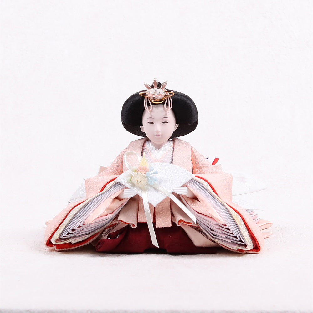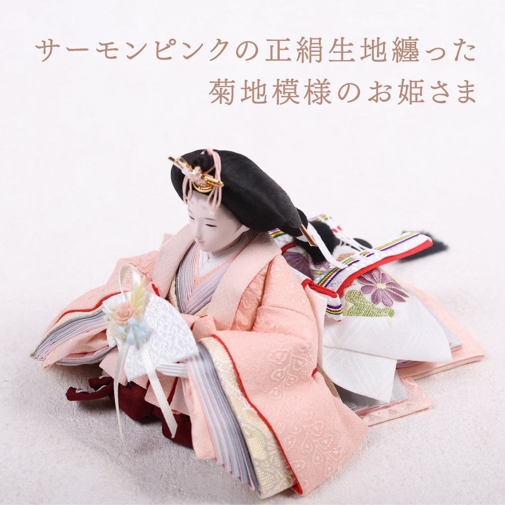 サーモンピンクの正絹生地纏った菊地模様のお姫さま