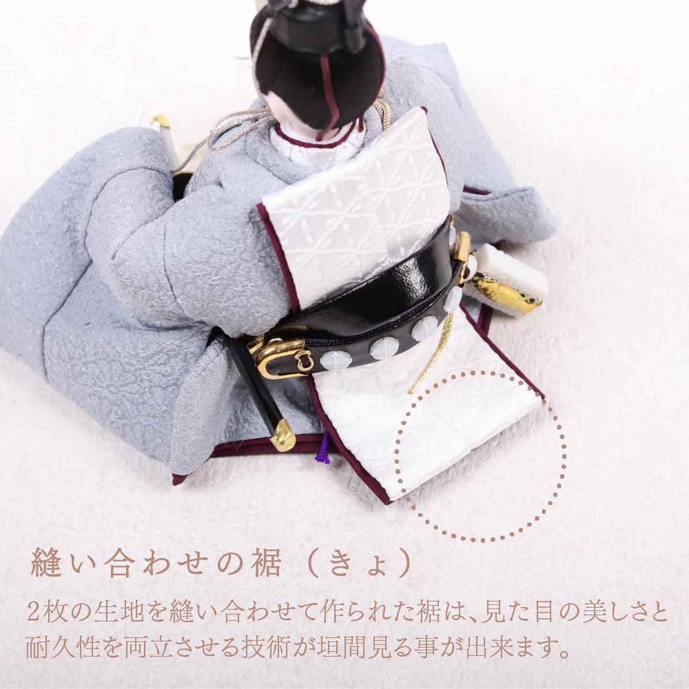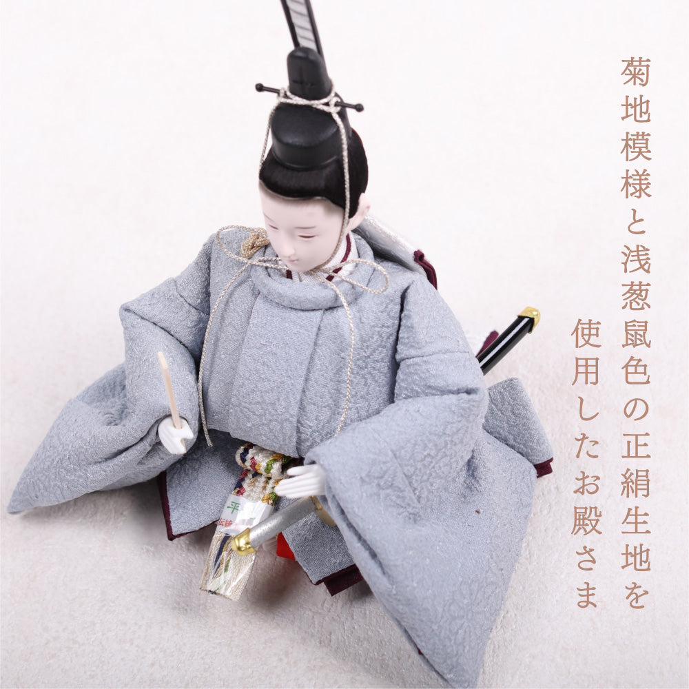 上質な正絹生地に菊地模様が施されたお殿様は、不老長寿を象徴する菊の力強さで、赤ちゃんの健やかな成長を祝福しています。