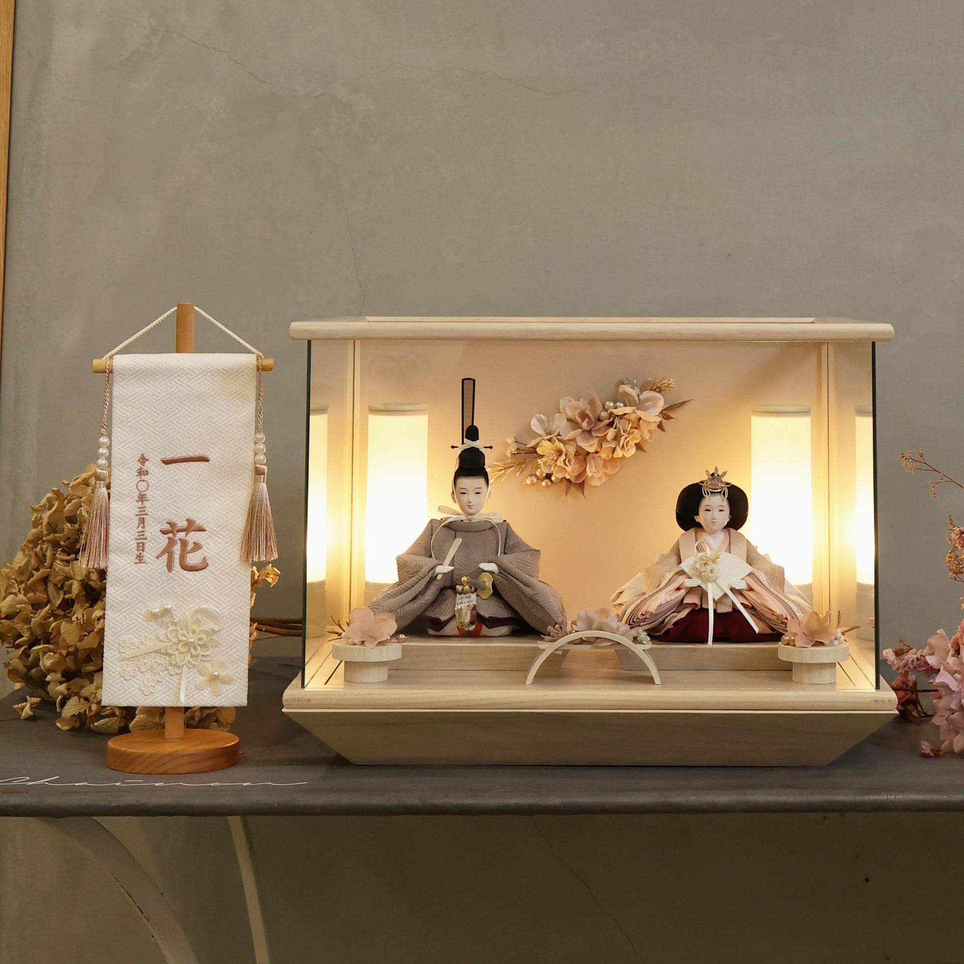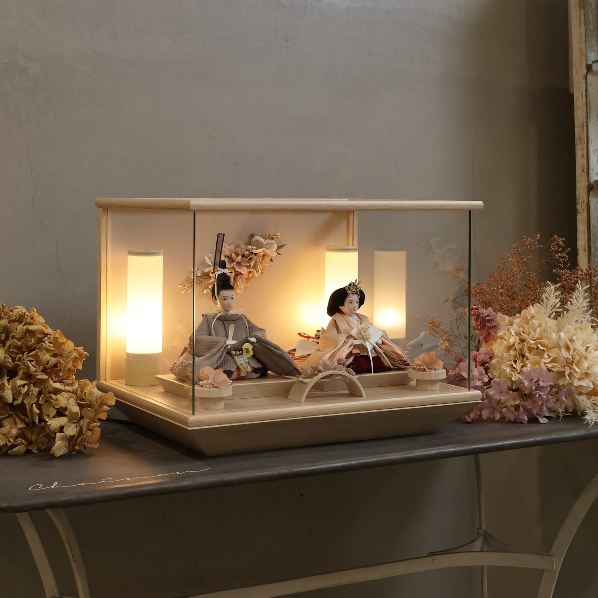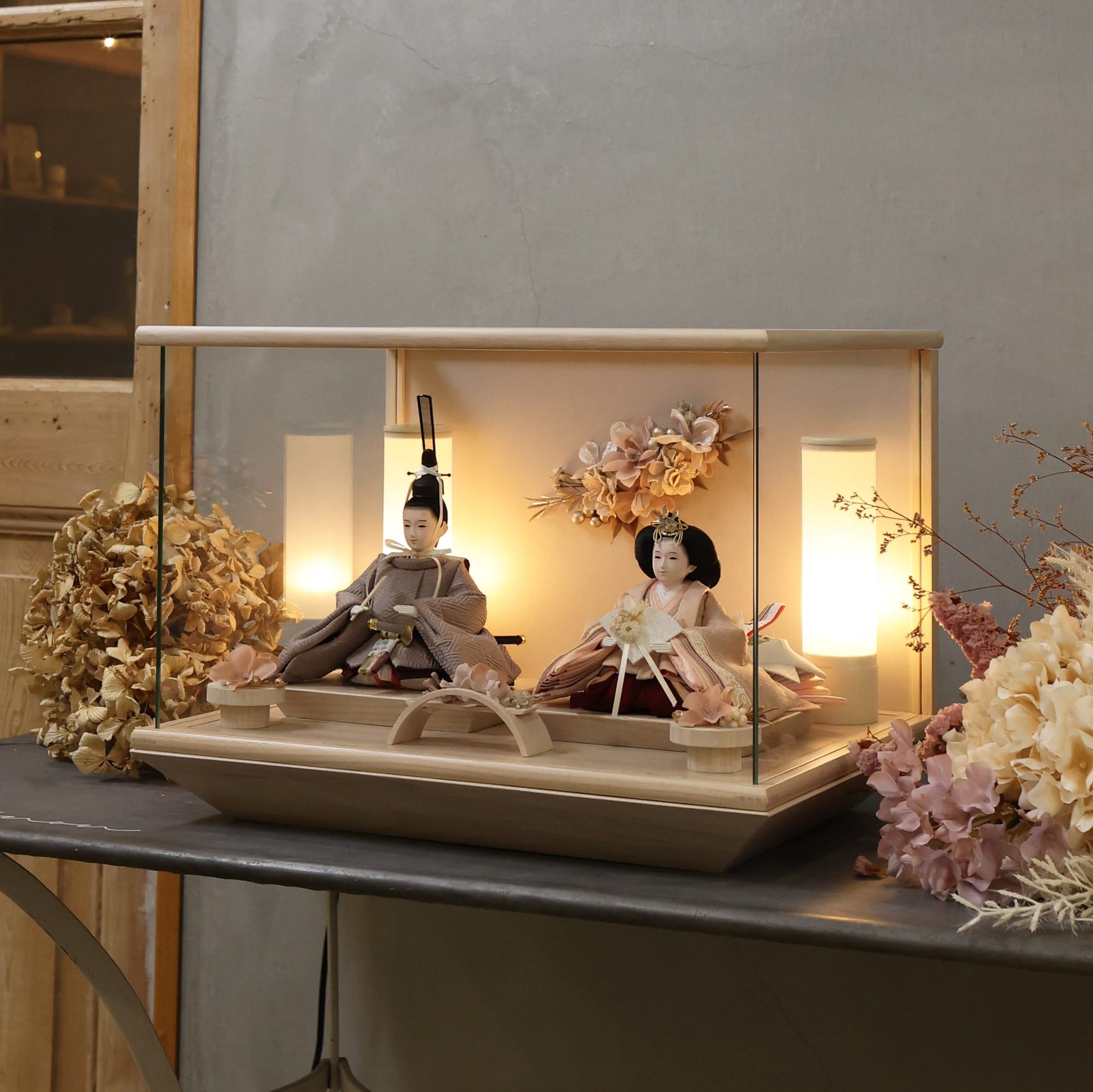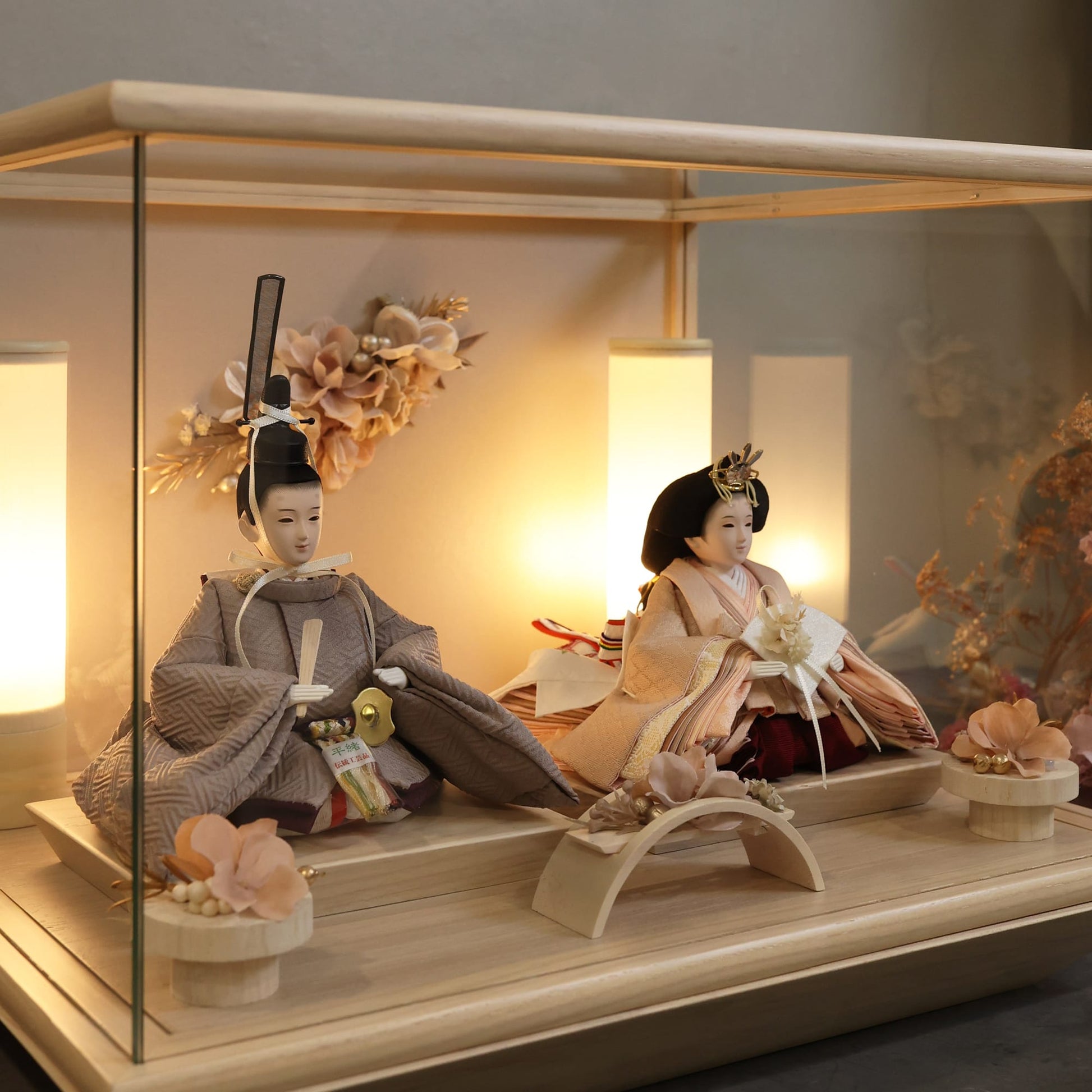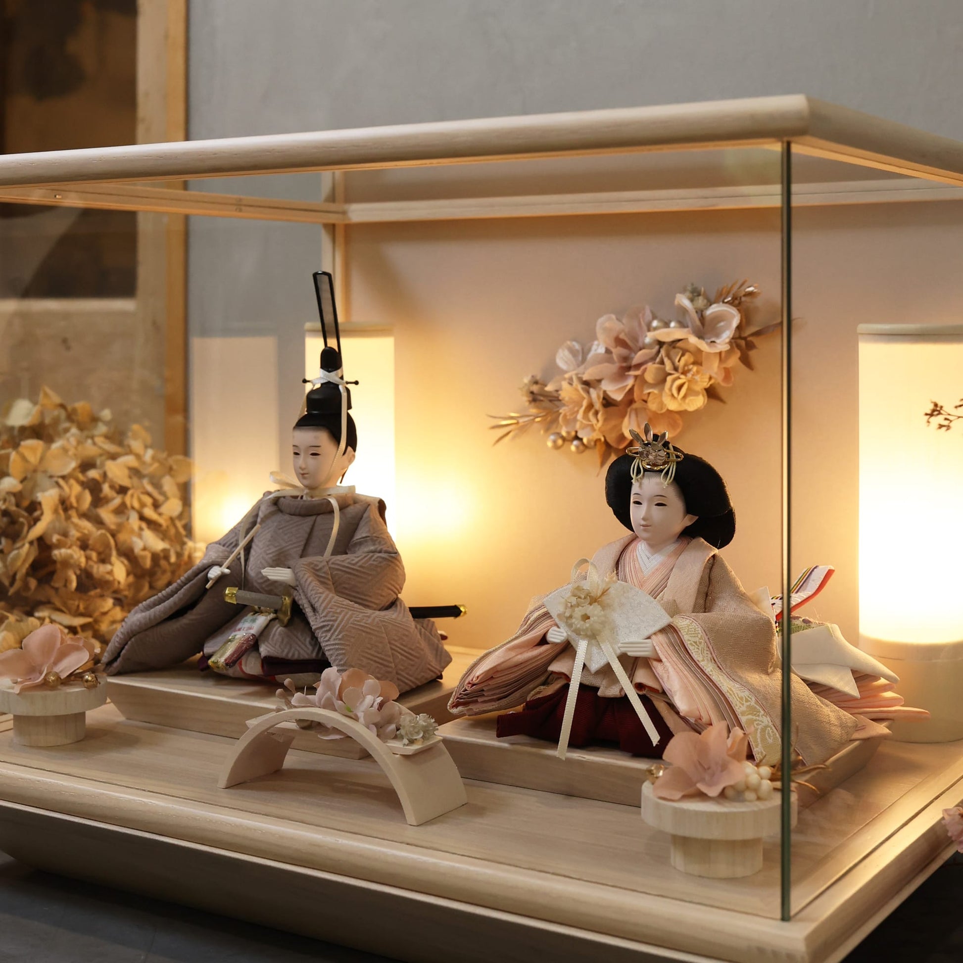通常2mm厚が一般的な中、当店ではより高品質なAGC製3mmガラスを採用しています。厚みが増すことで強度と安全性が高まり、透明度の高いクリアな美しさを保ちます。大切な雛人形を守りながら、高級感のある見栄えを実現しています。