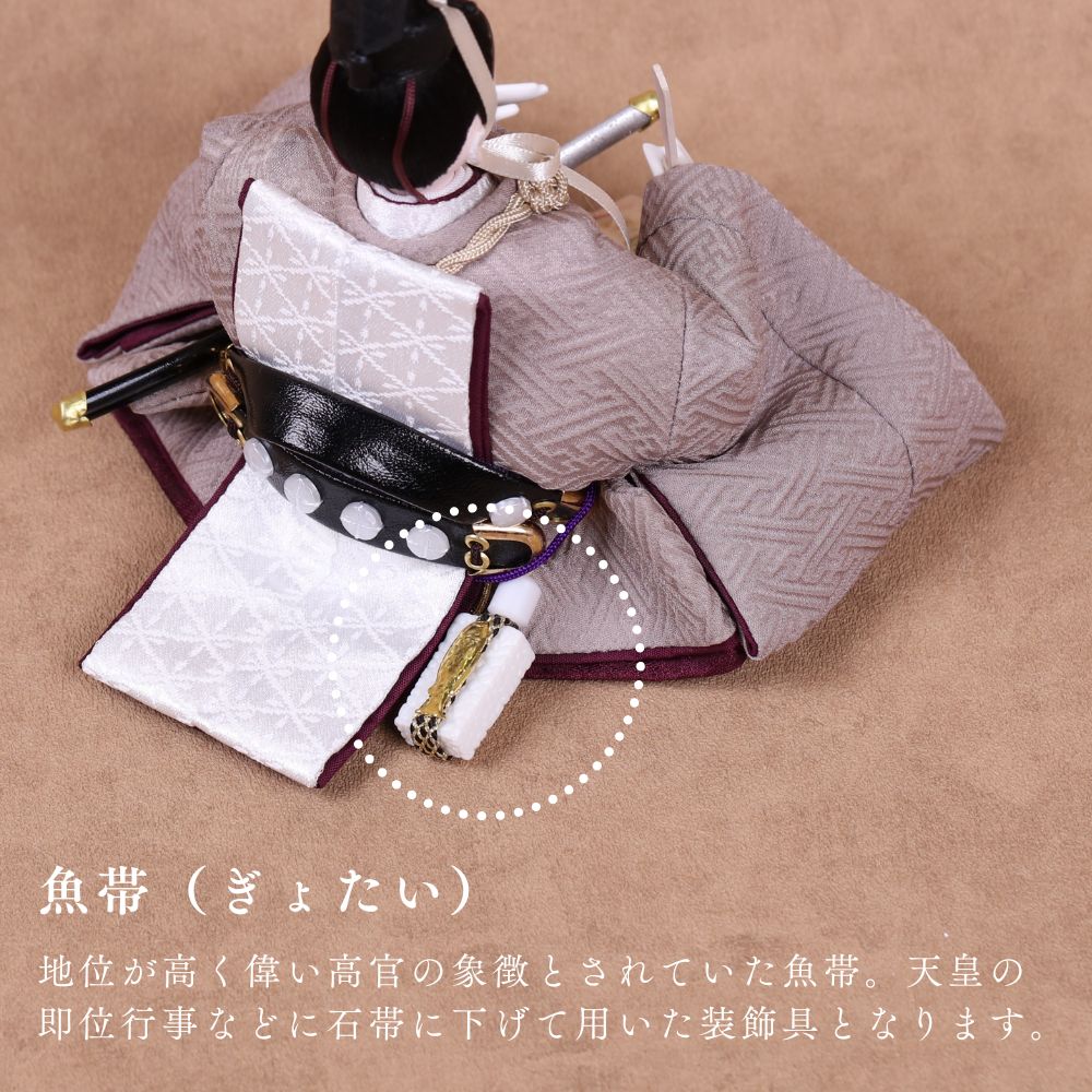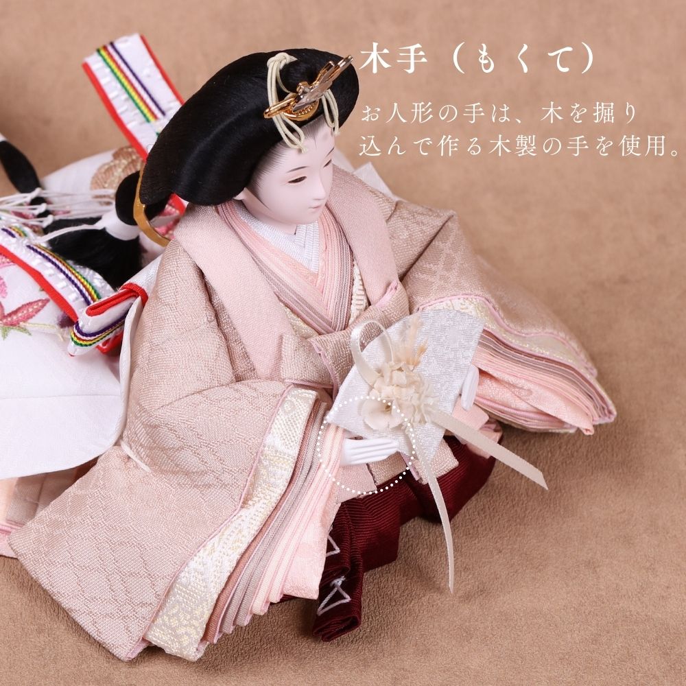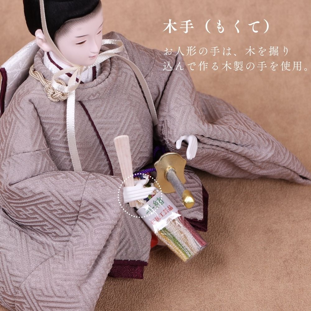 国産の栓(せん)は、美しい木目と温もりある質感が魅力の天然木です。耐久性に優れ、経年とともに味わいを深めます。台座や屏風などに使用することで、自然素材ならではの落ち着いた風合いと上質感を演出し、雛人形全体をより品格ある印象に仕上げます。