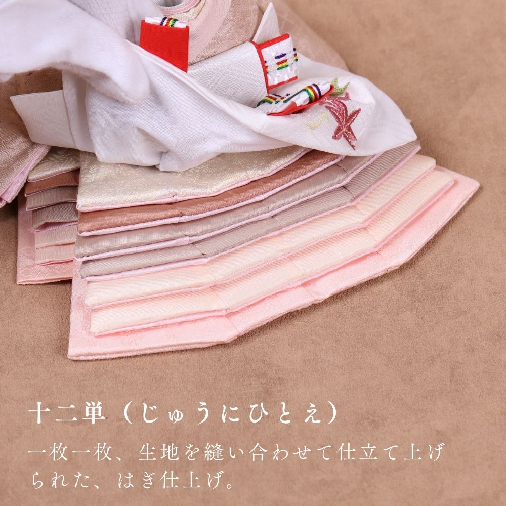 正絹は、100%絹から作られた生地で、「本絹」とも呼ばれます。蚕の繭を原料にし、複雑な工程を経て製造されます。絹糸を織って生地に仕上げることで、独特の光沢と滑らかな質感が生まれ、高級感のあるお人形が完成します。正絹は伝統的な工芸品に広く用いられ、その美しさが際立っています。